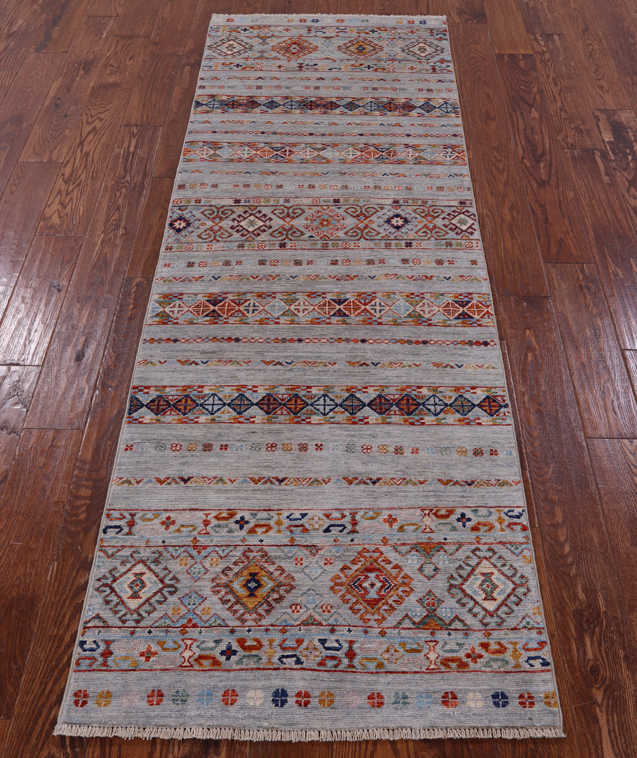 2' 7" X 7' 9" Runner Super Kazak Khorjin Hand-Knotted Rug - Q11107 is backordered and will ship as soon as it is back in stock.