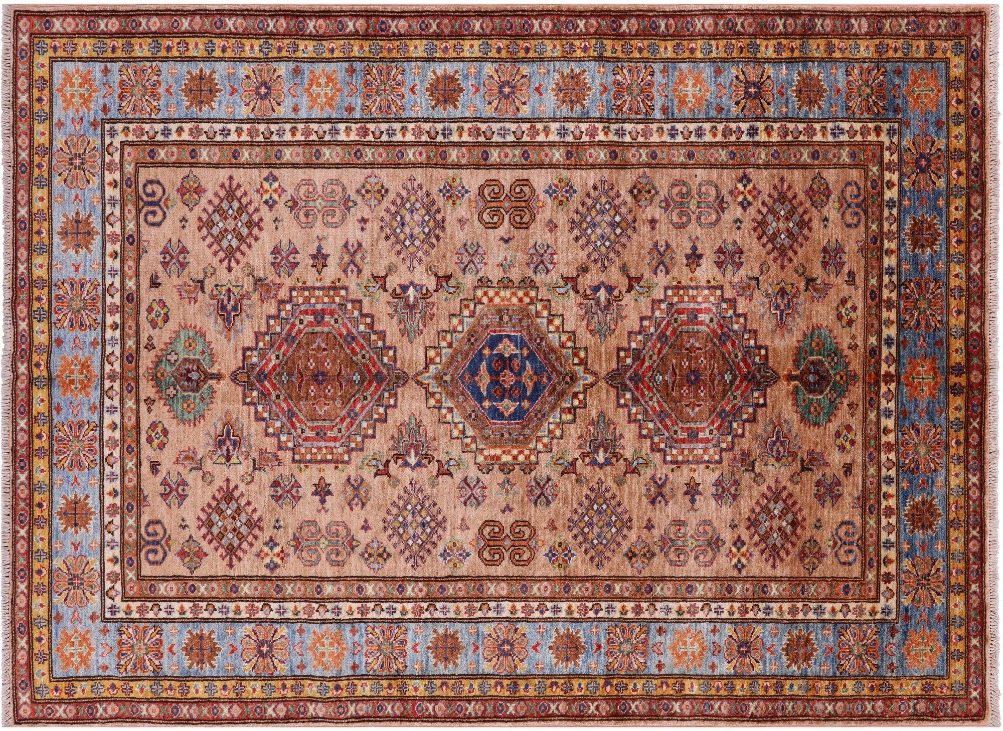 Super Kazak Geometric Hand-Knotted Wool Rug 4' 11" X 6' 8" - Q10619