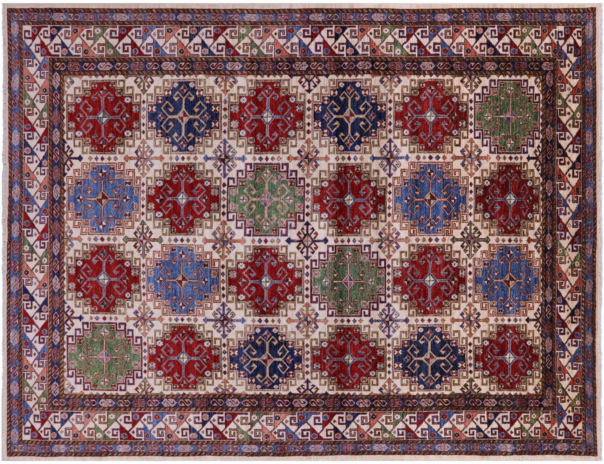 Super Kazak Geometric Handmade Wool Rug 8' 1" X 10' 3" - Q10537