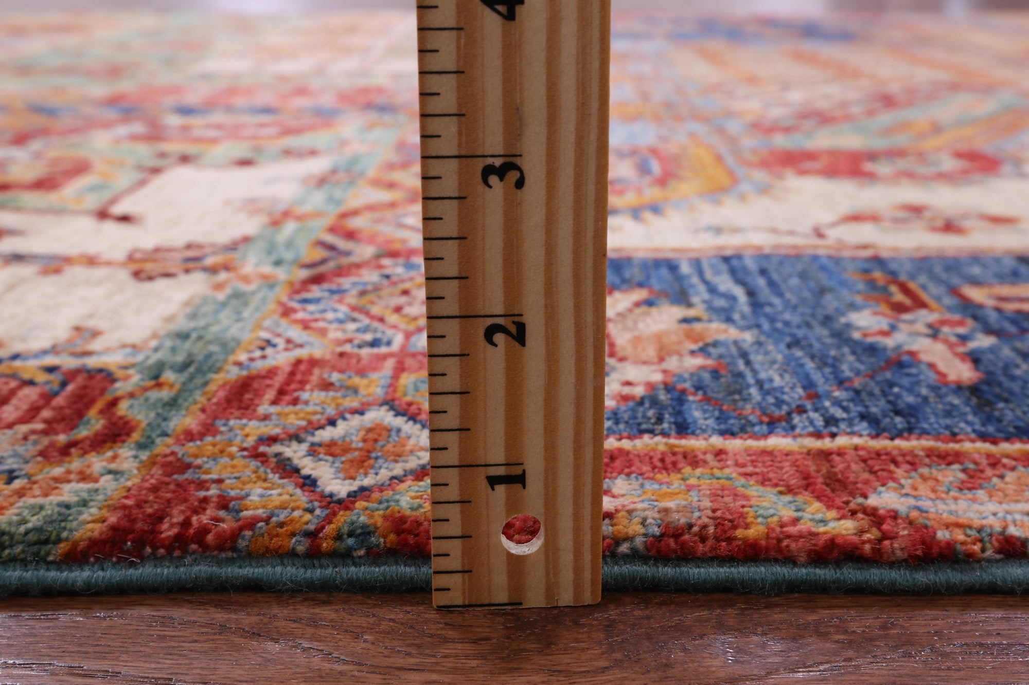 Super Kazak rugs were woven in the south of Caucasus and are very regional in their designs. Super Kazak rugs are very traditional in look and the patterns can vary from geometric shapes, tribal designs like people and animals, and symbolic medallions. They are beautifully intricate and heavy in design. These rugs come in varieties of rich, warm, jewel tones that can liven up any space.
