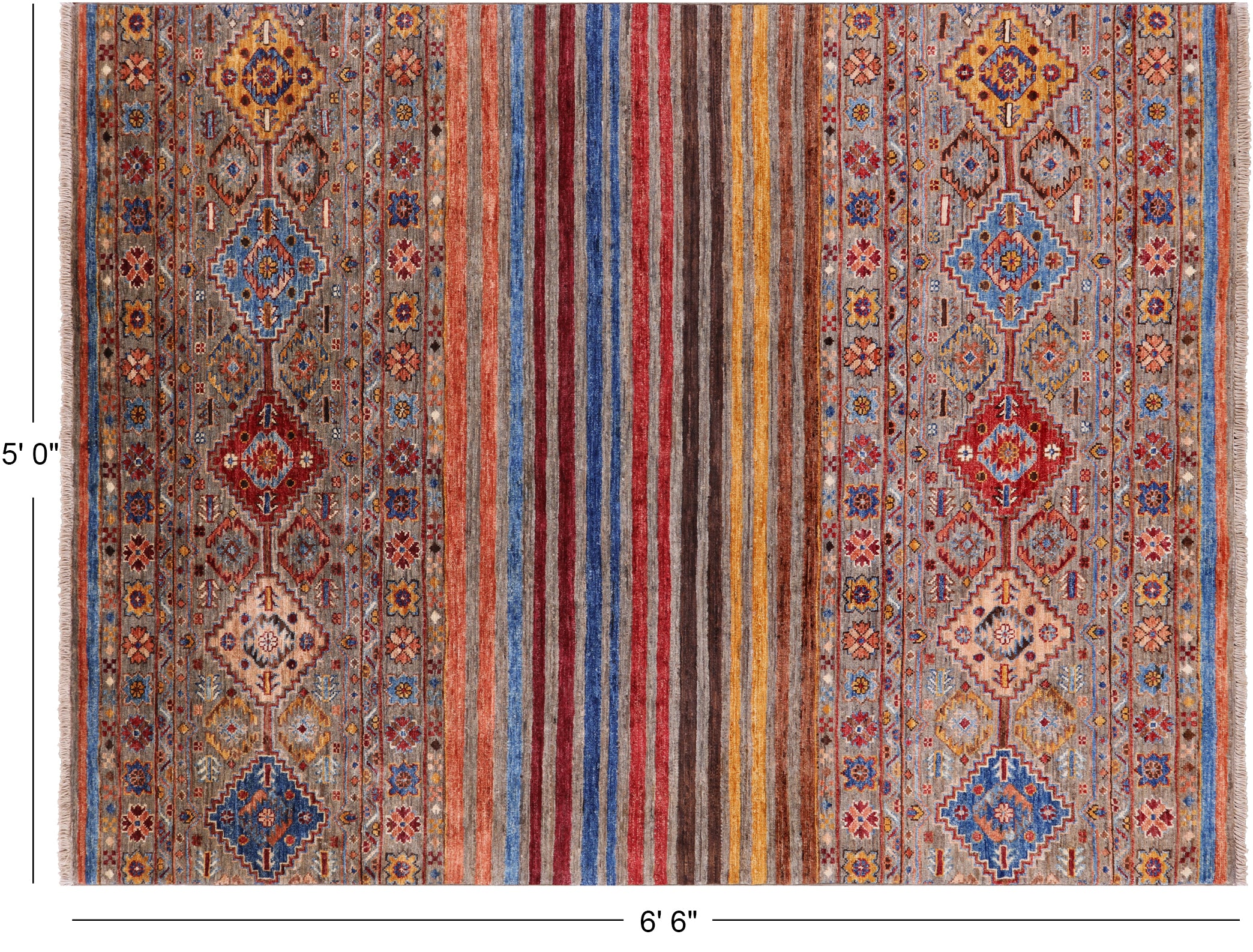 5' 0" X 6' 6" Super Kazak Khorjin Hand-Knotted Rug - Q7404 is backordered and will ship as soon as it is back in stock.