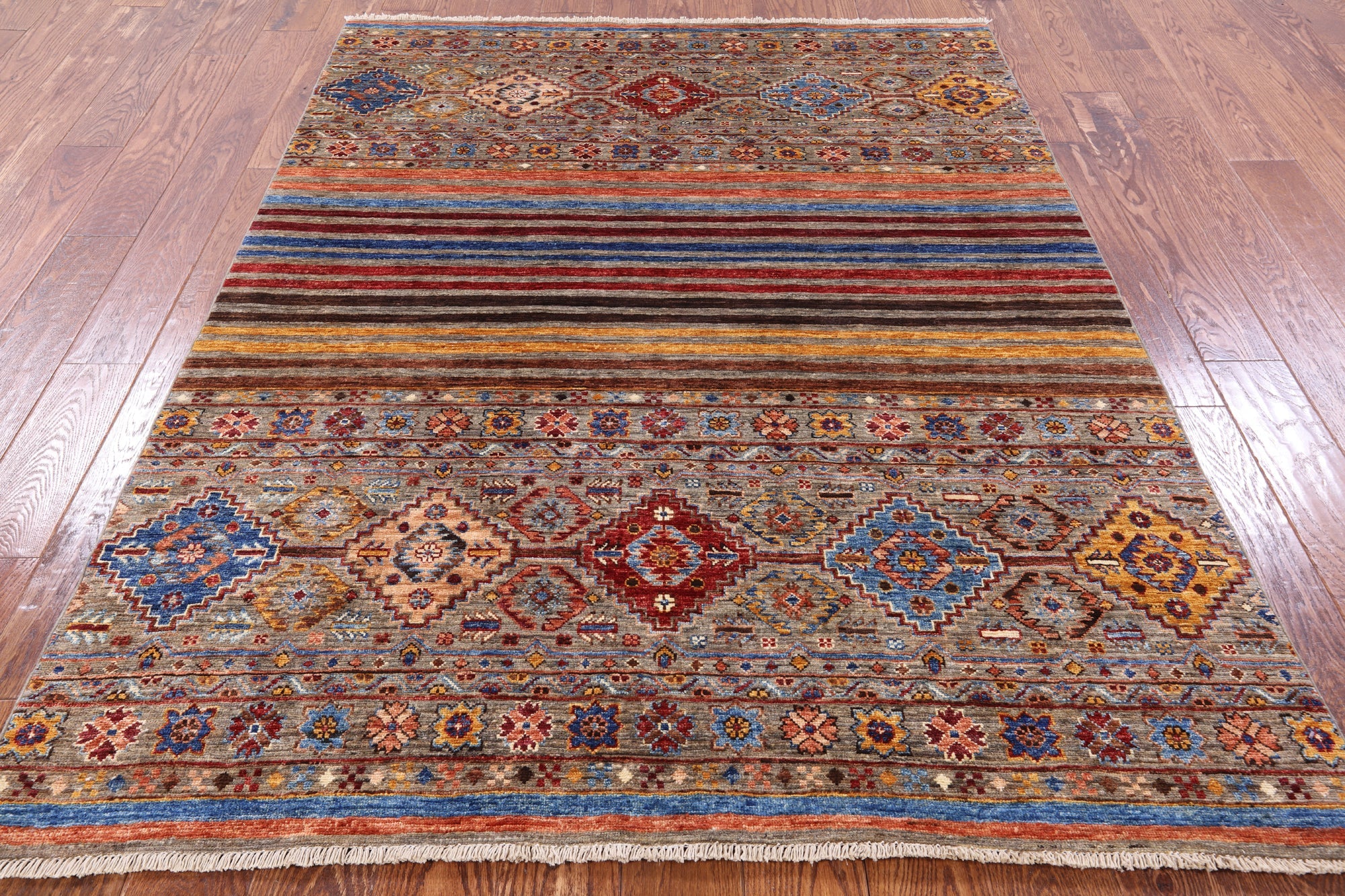 5' 0" X 6' 6" Super Kazak Khorjin Hand-Knotted Rug - Q7404