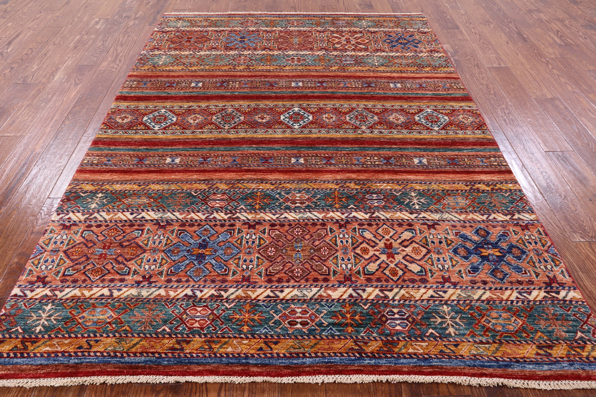 Super Kazak Khorjin Hand Knotted Rug 5' 10" X 7' 11" - Q7647