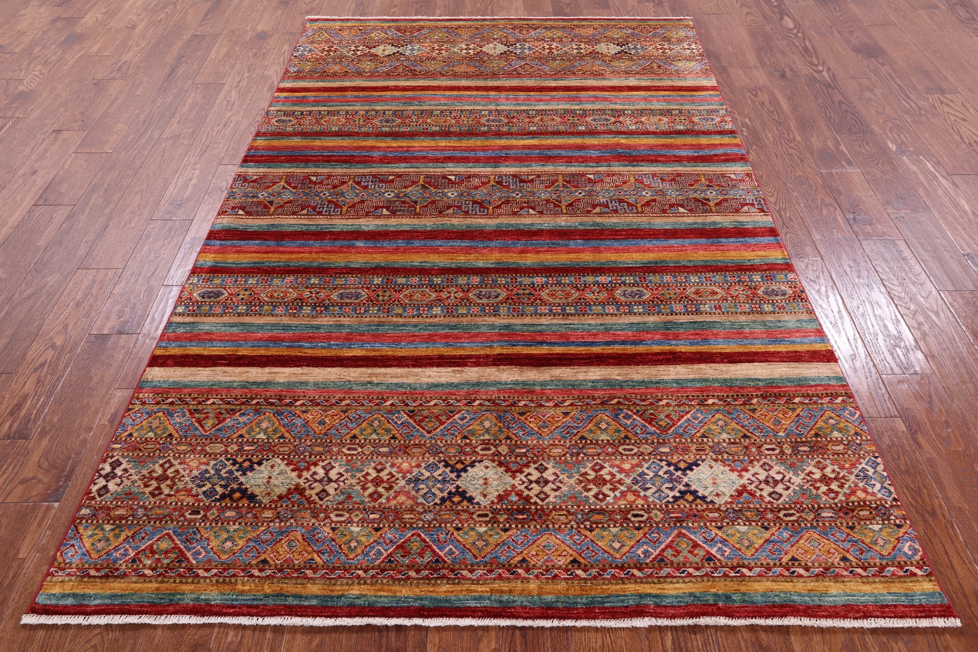 Super Kazak Khorjin Hand-Knotted Wool Rug 5' 4" X 8' 3" - Q12670 is backordered and will ship as soon as it is back in stock.