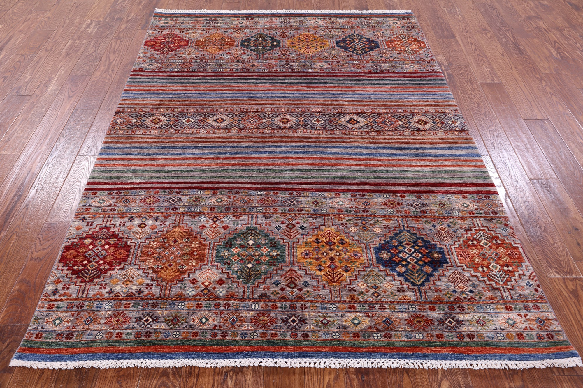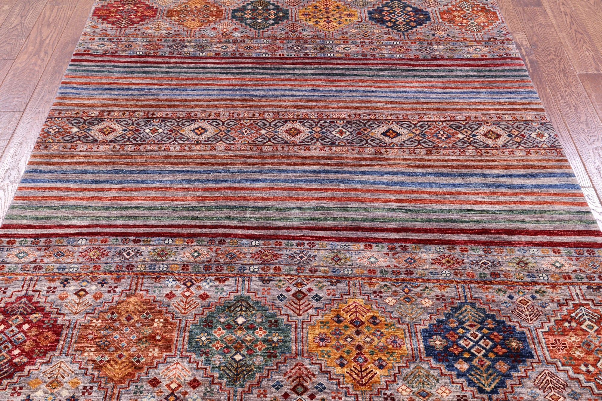 Super Kazak Khorjin Hand Knotted Wool Rug 5' 10" X 7' 8" - Q14219 is backordered and will ship as soon as it is back in stock.