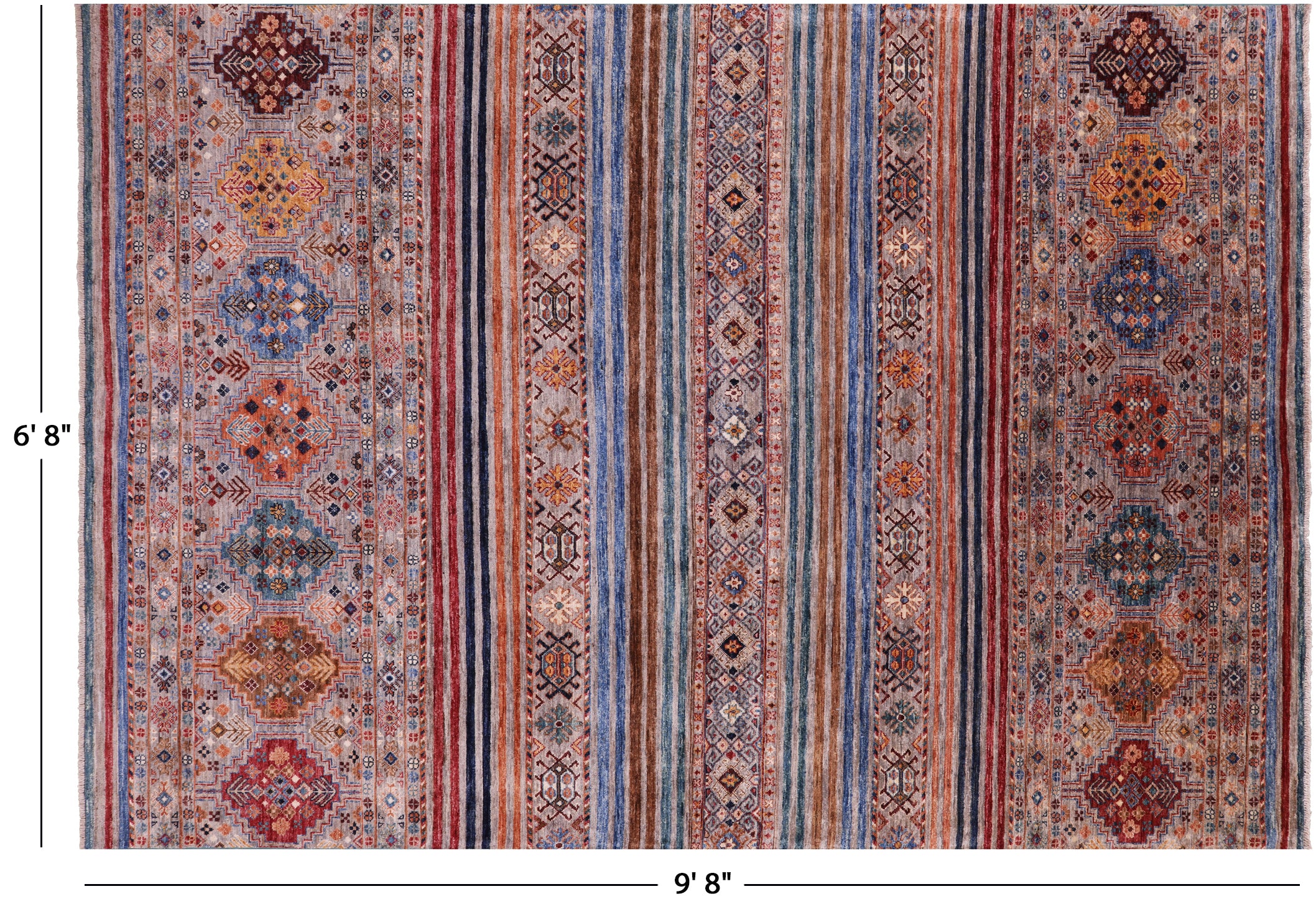 Super Kazak Khorjin Hand Knotted Wool Rug 6' 8" X 9' 8" - Q17065