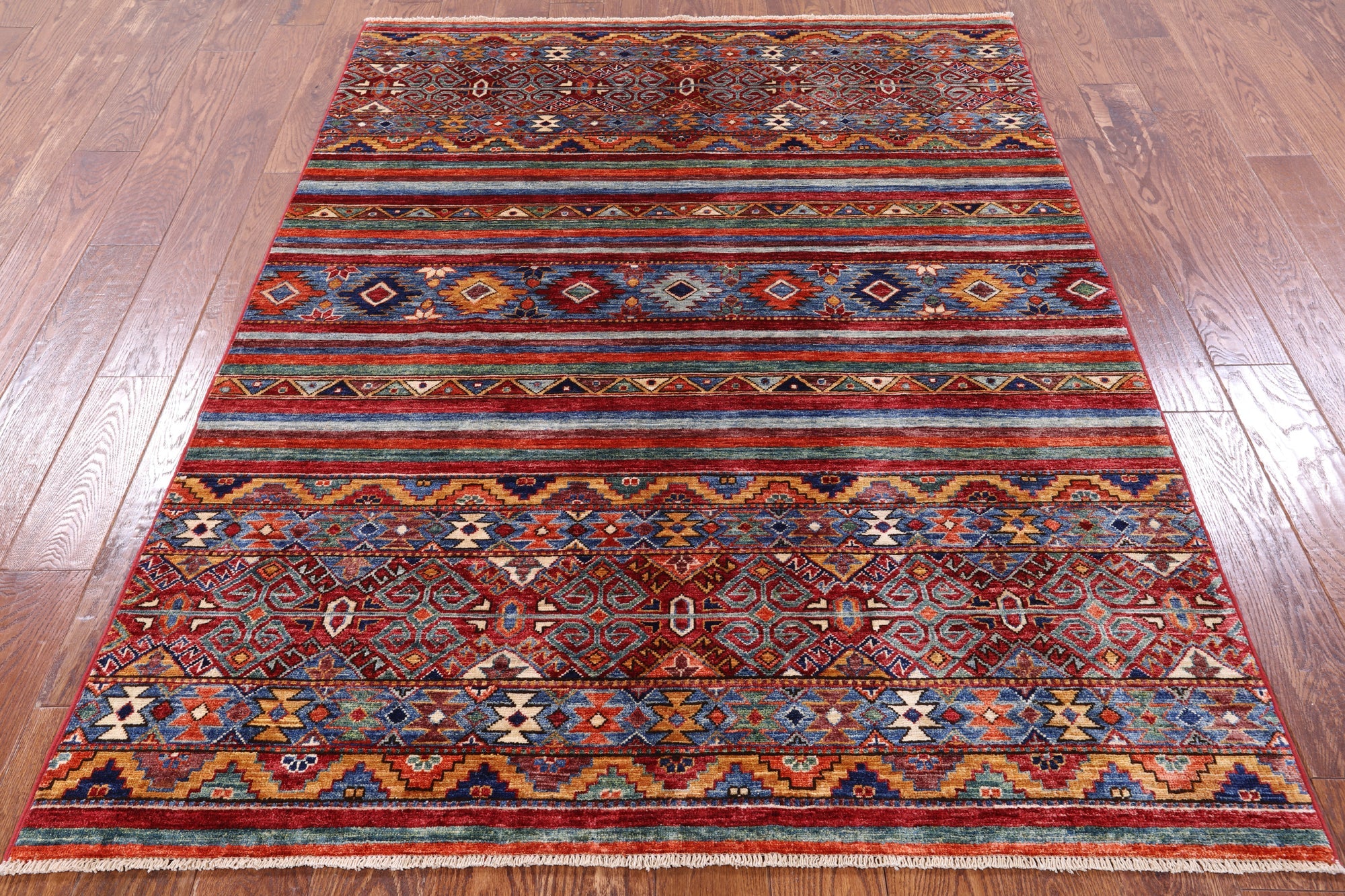 4' 10" X 6' 6" Super Kazak Khorjin Handmade Rug - Q8197 is backordered and will ship as soon as it is back in stock.