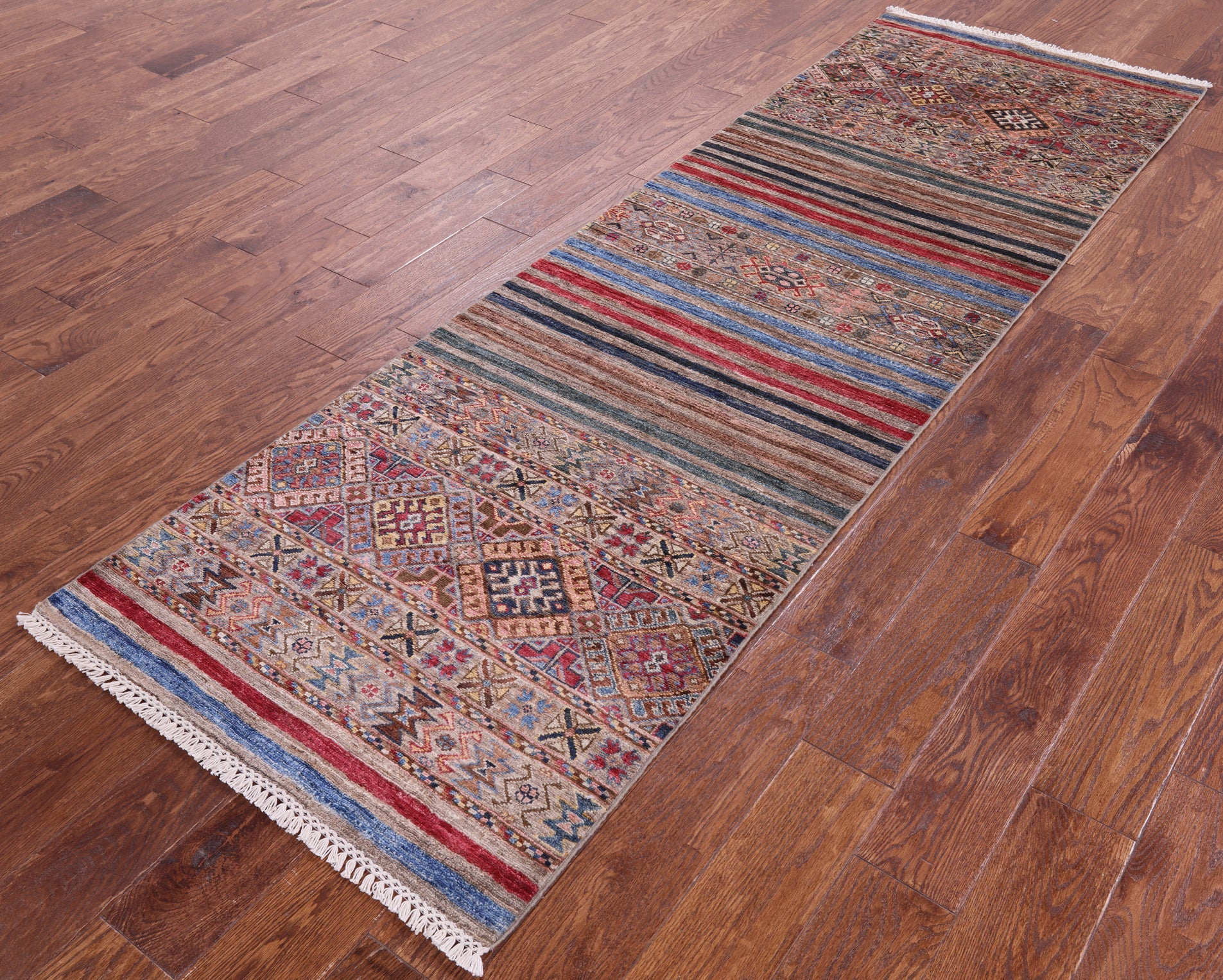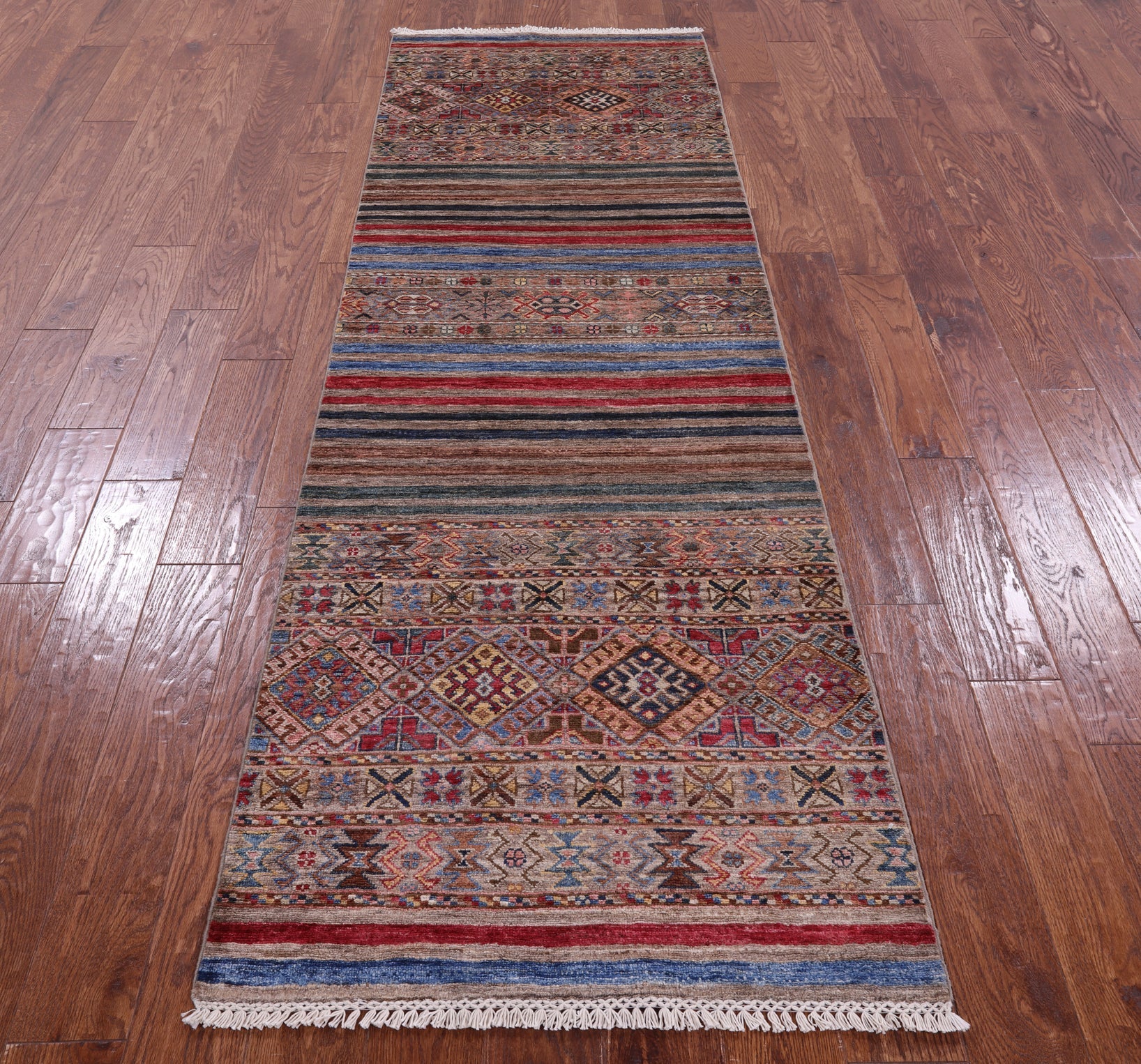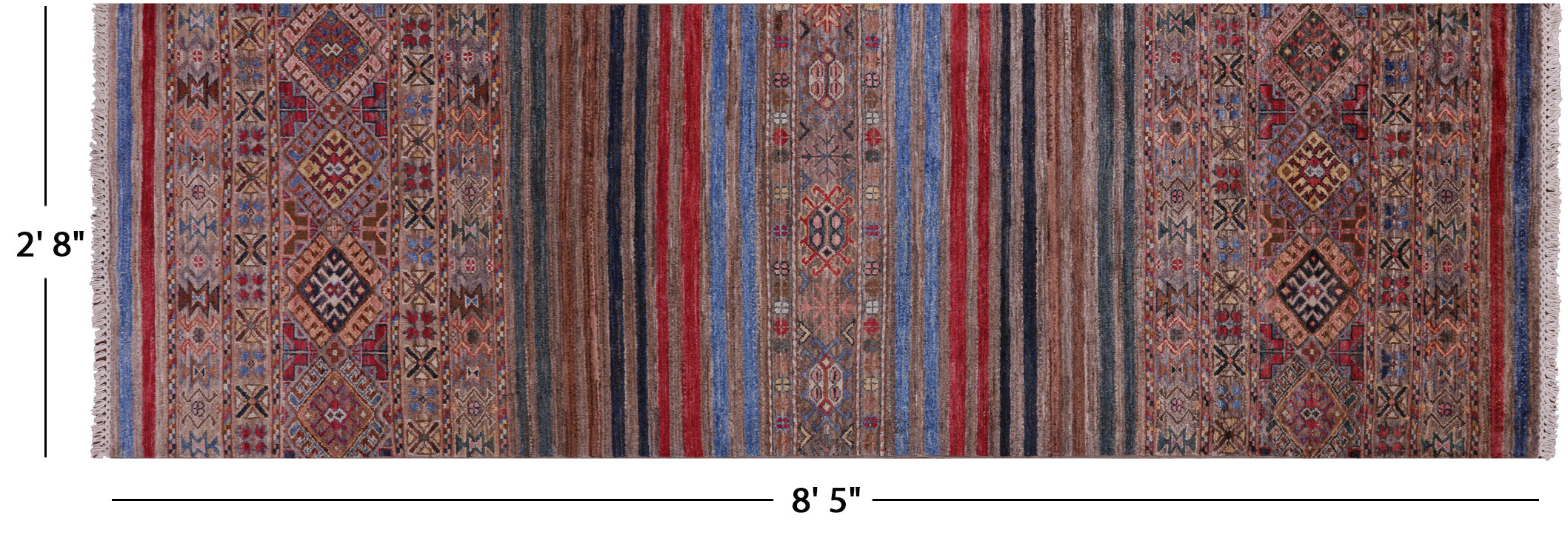2' 8" X 8' 5" Super Kazak Khorjin Handmade Wool Runner Rug - Q10065 is backordered and will ship as soon as it is back in stock.