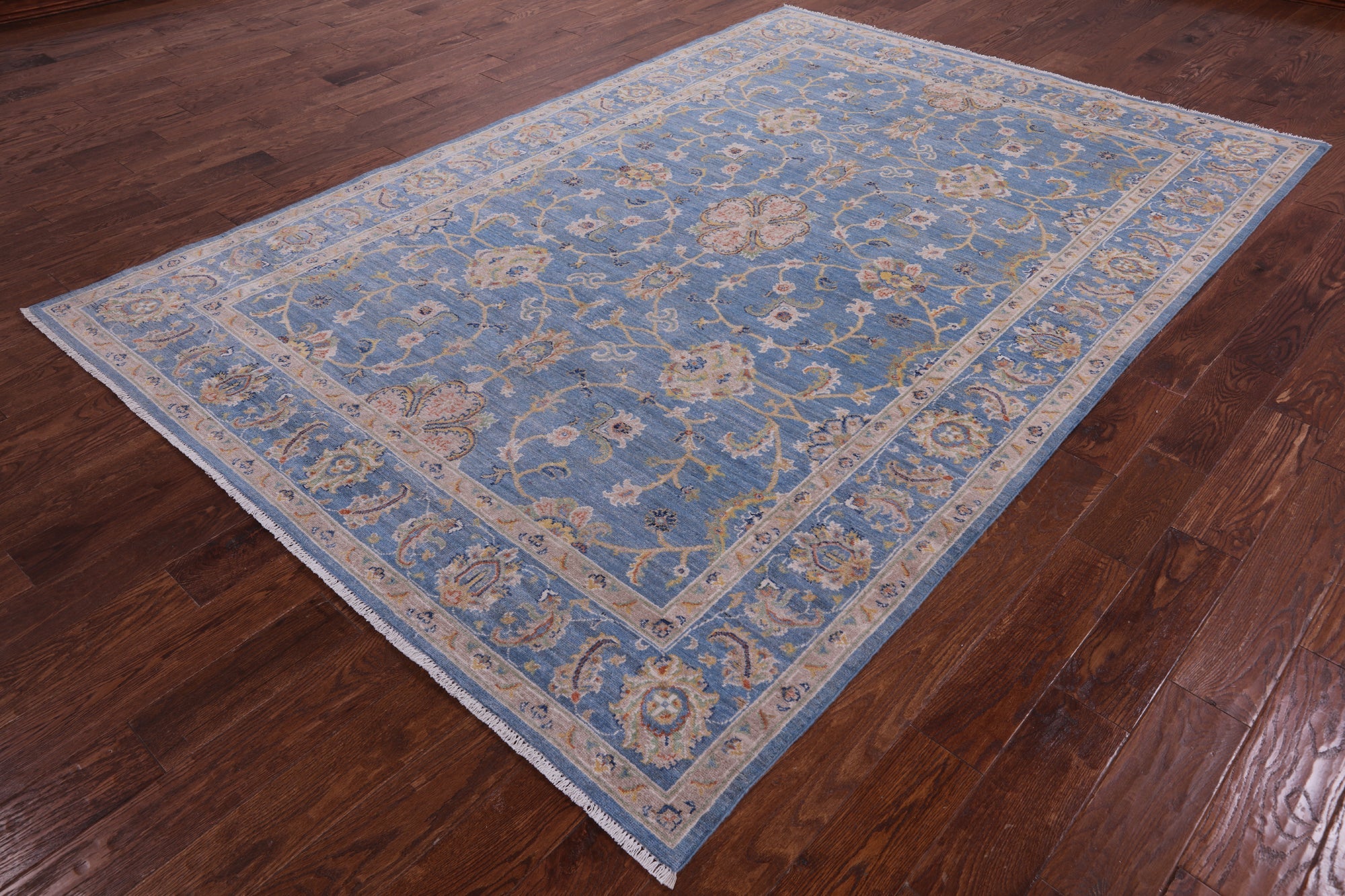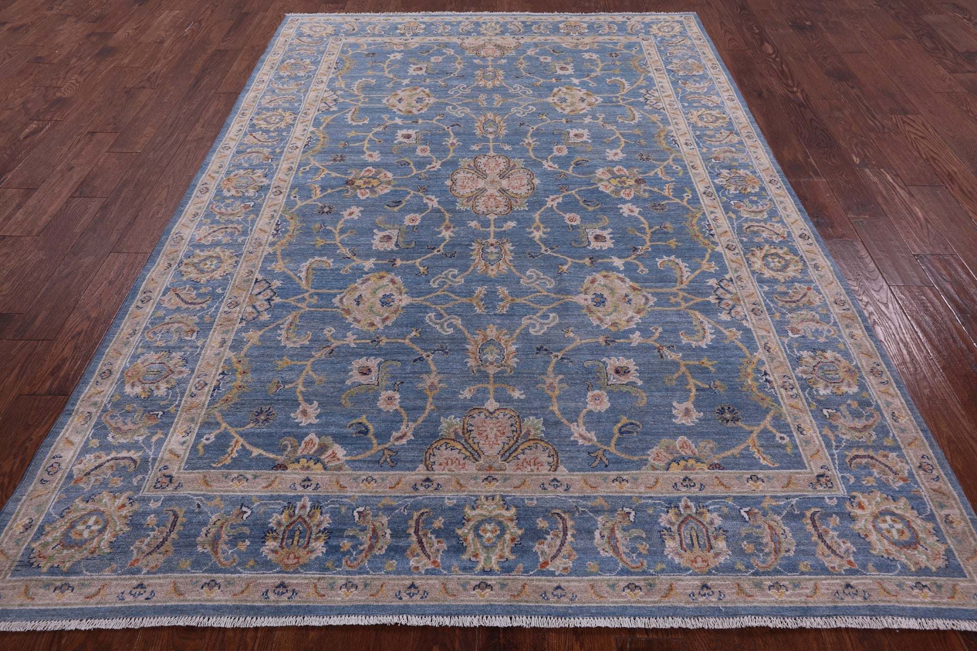 Blue Hand-Knotted Persian Tabriz Wool Rug 6' 8" X 9' 8" - Q10409 is backordered and will ship as soon as it is back in stock.