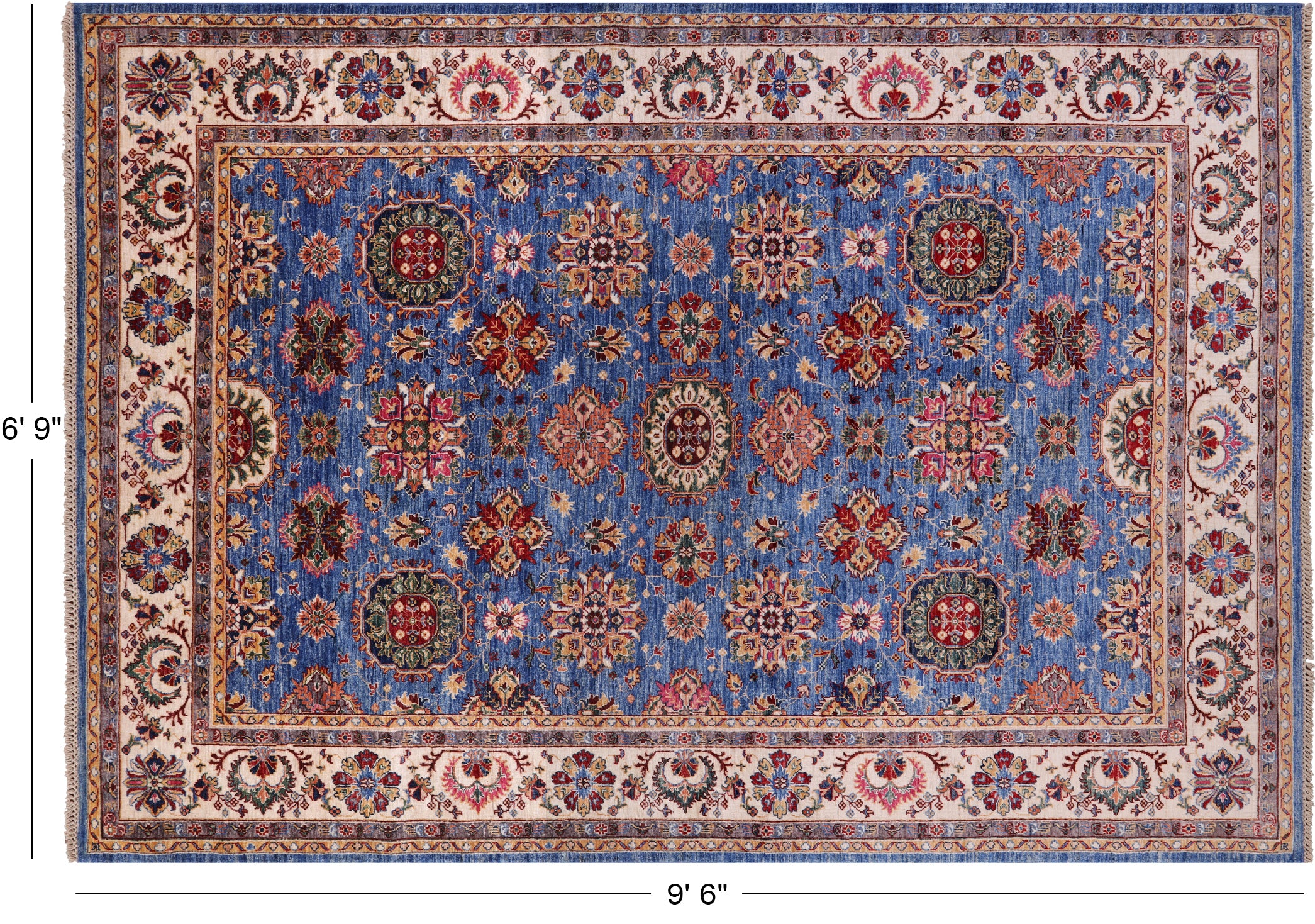 Blue 6' 9" X 9' 6" Hand-Knotted Persian Tabriz Wool Rug - Q7616