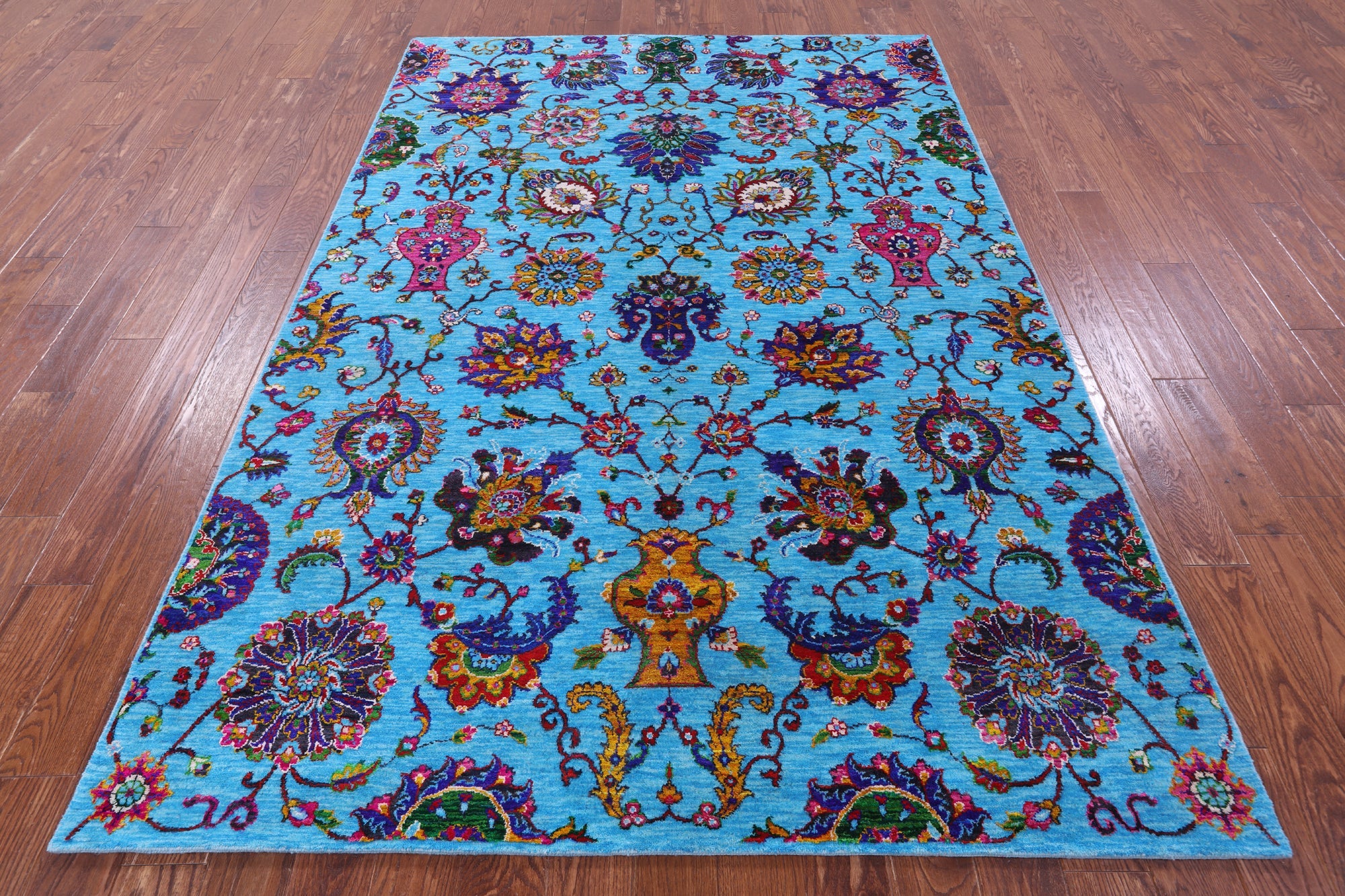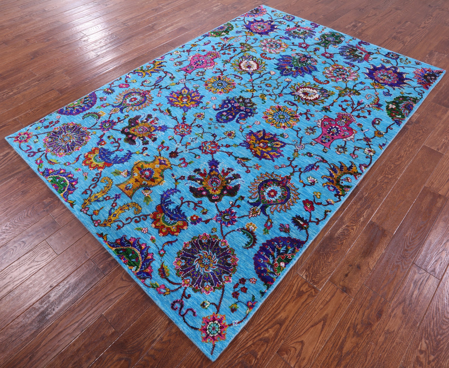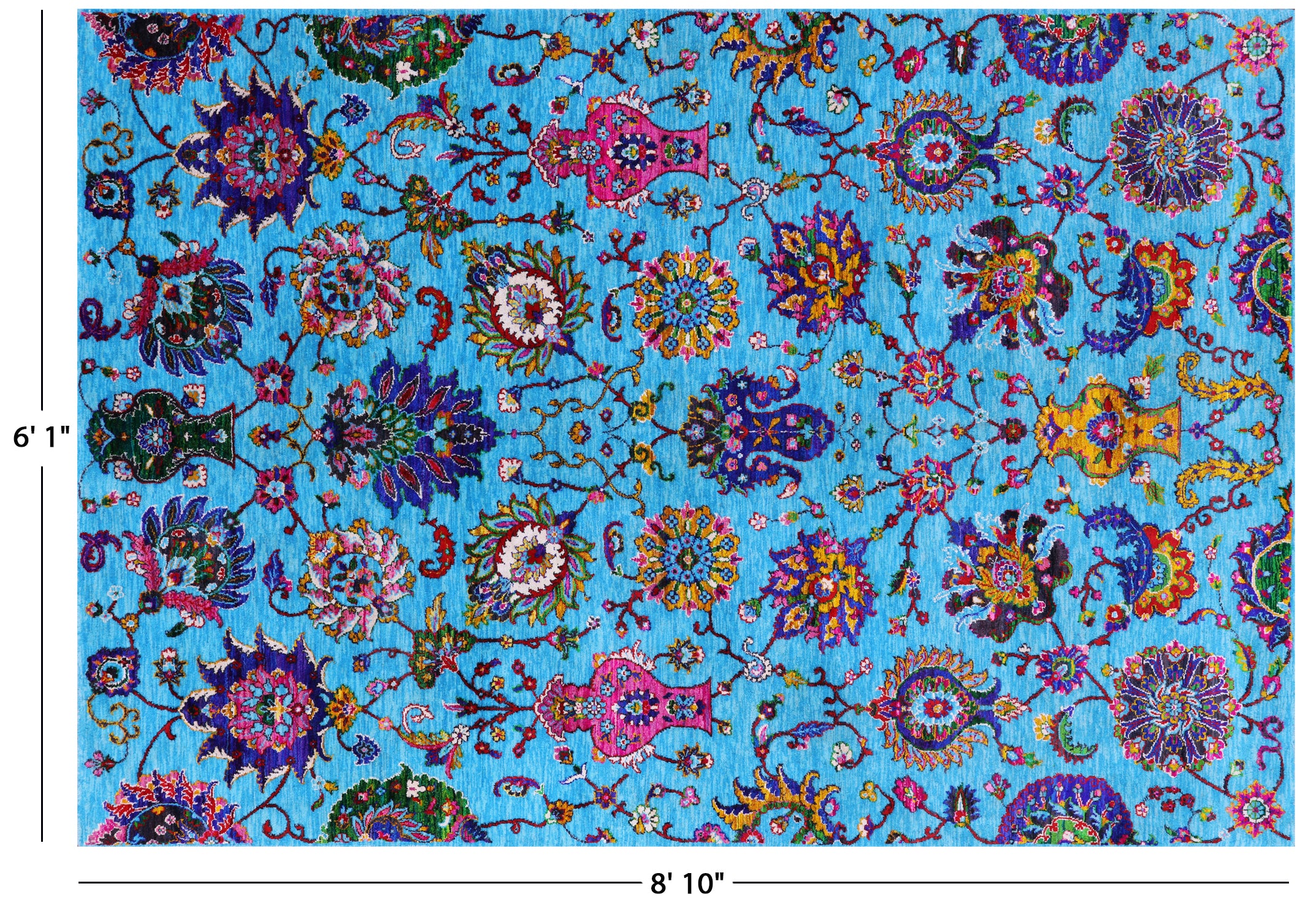 Blue 6' 1" X 8' 10" Hand-Knotted Wool & Silk Persian Tabriz Rug - Q19109