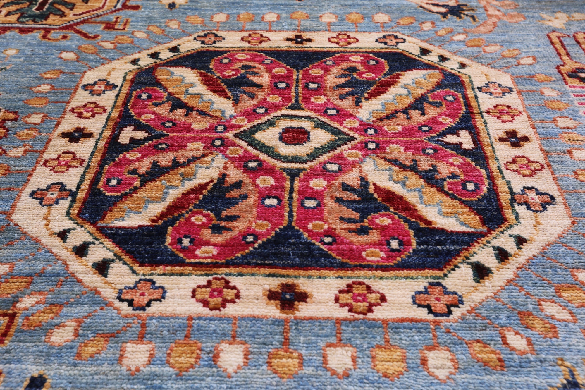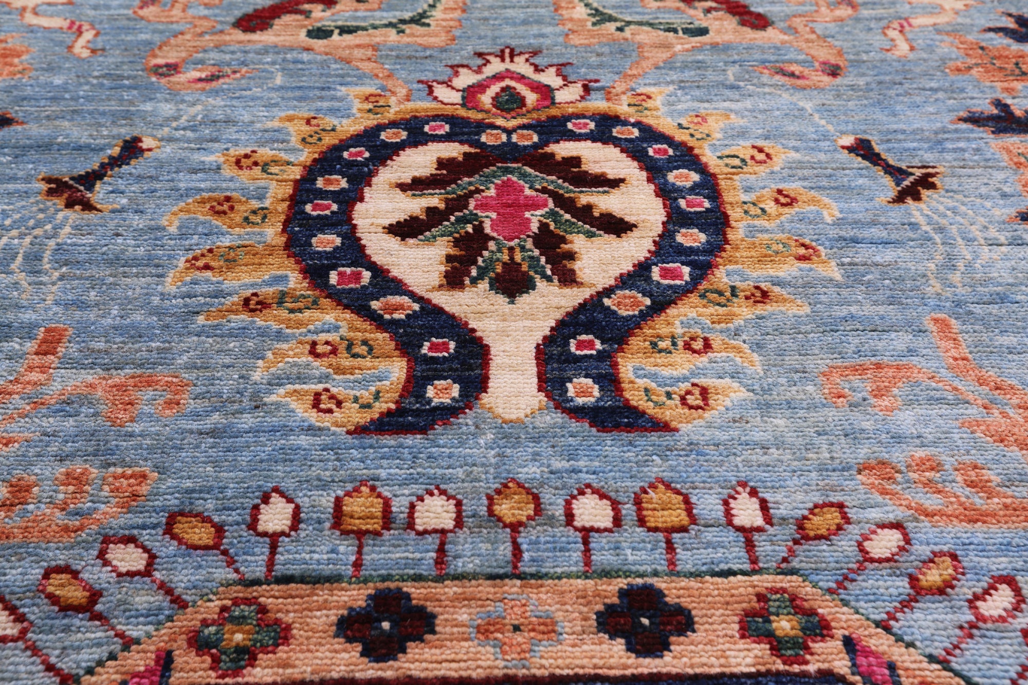 This is a genuine hand knotted cut pile rug, not tufted, hooked, or machine made. All we do is hand knotted.
