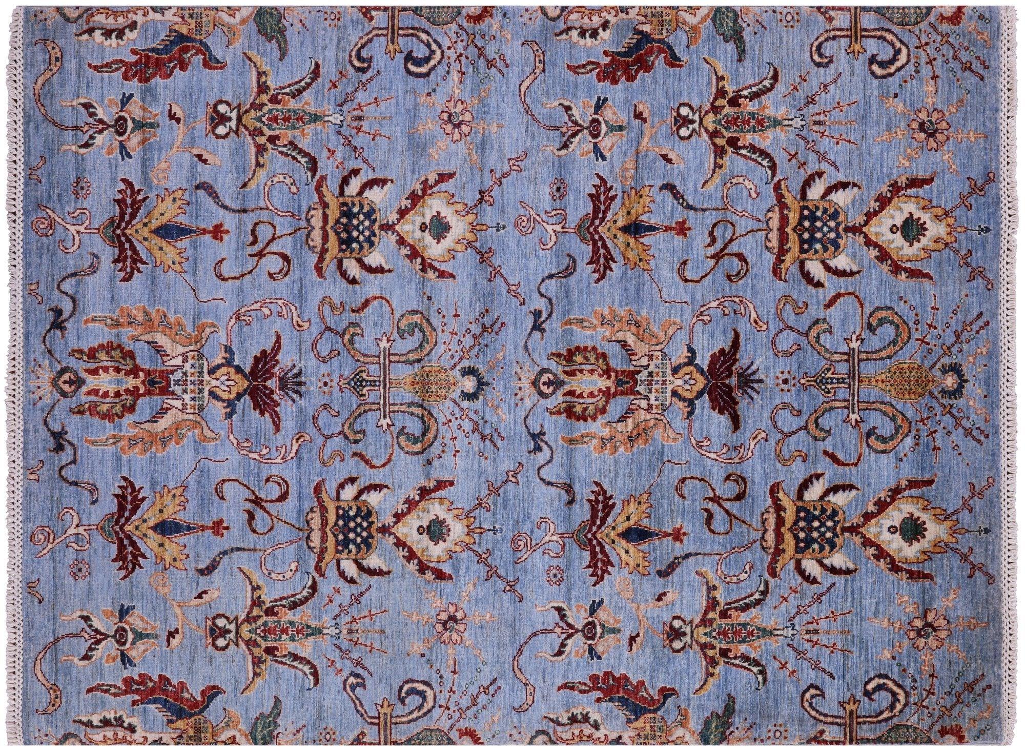 Blue 5' 0" X 6' 6" Persian Tabriz Hand-Knotted Wool Rug - Q10017