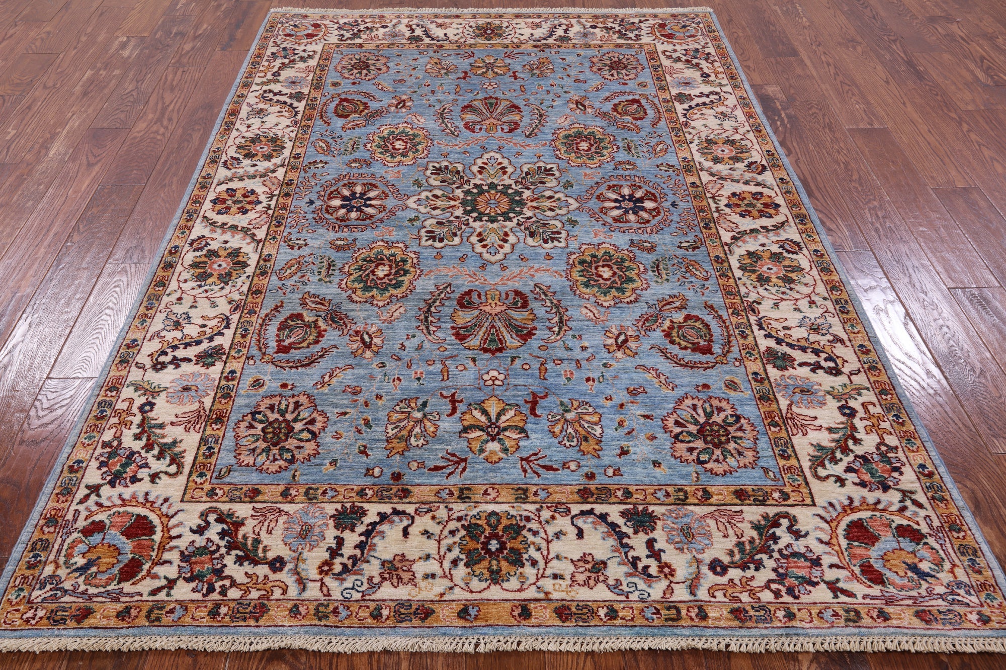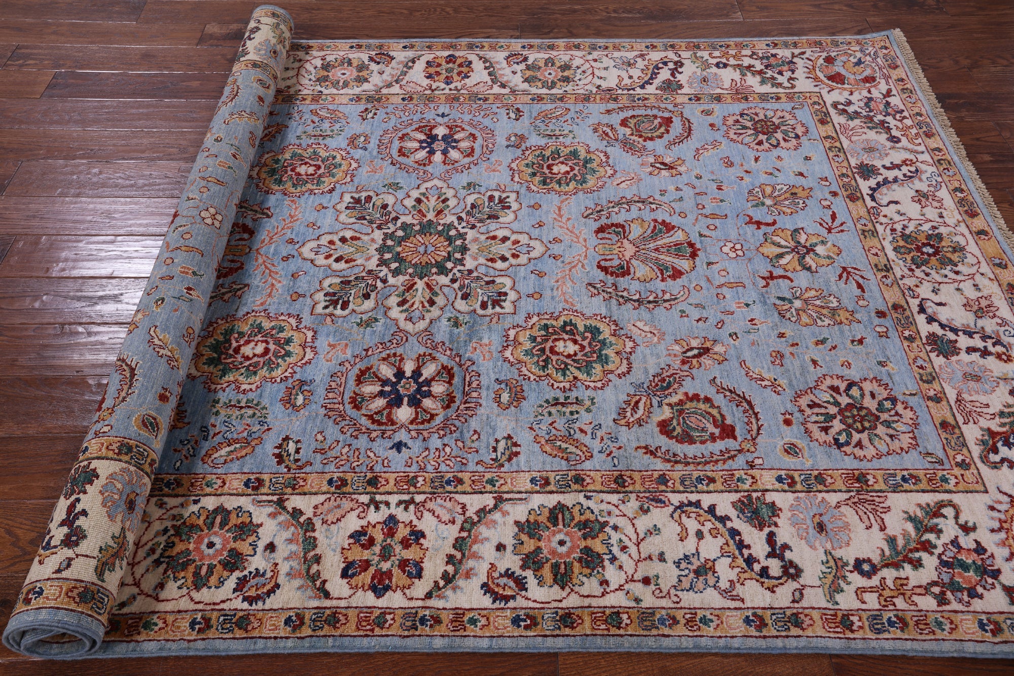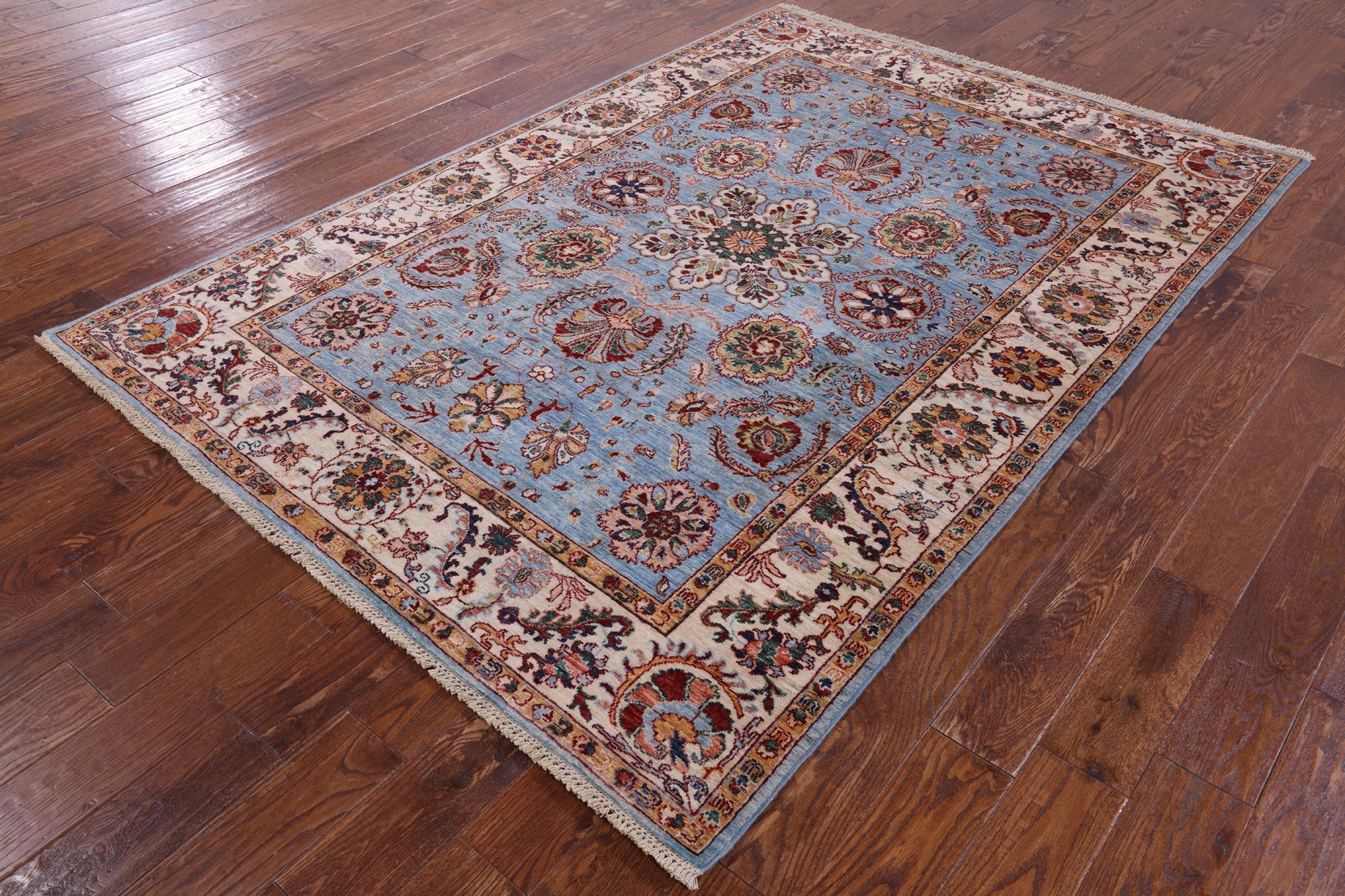 Blue 5' 6" X 8' 0" Persian Tabriz Hand Knotted Wool Rug - Q7554 is backordered and will ship as soon as it is back in stock.