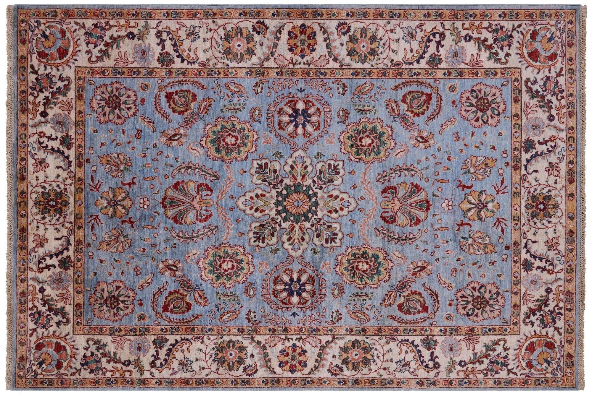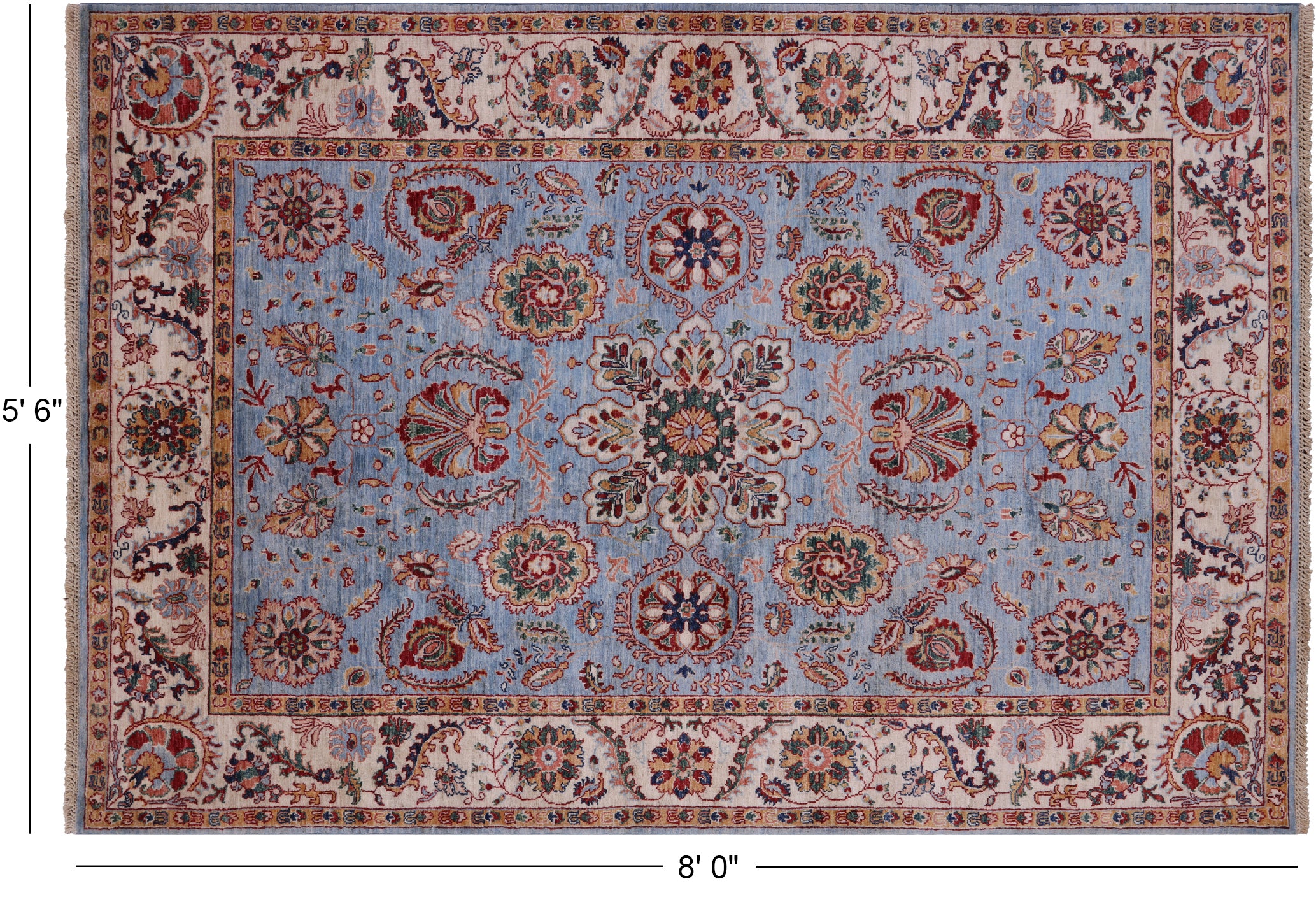 Blue 5' 6" X 8' 0" Persian Tabriz Hand Knotted Wool Rug - Q7554