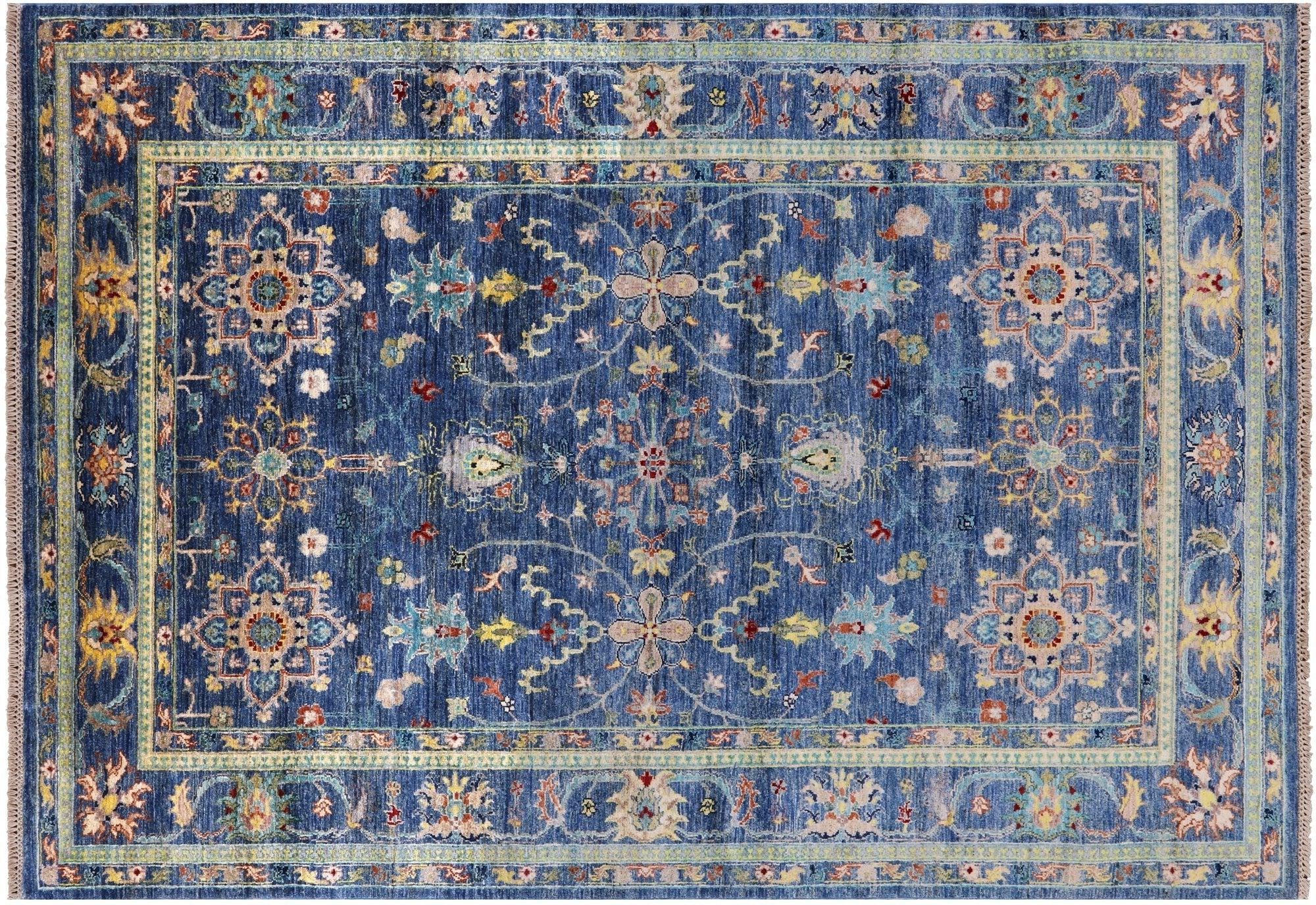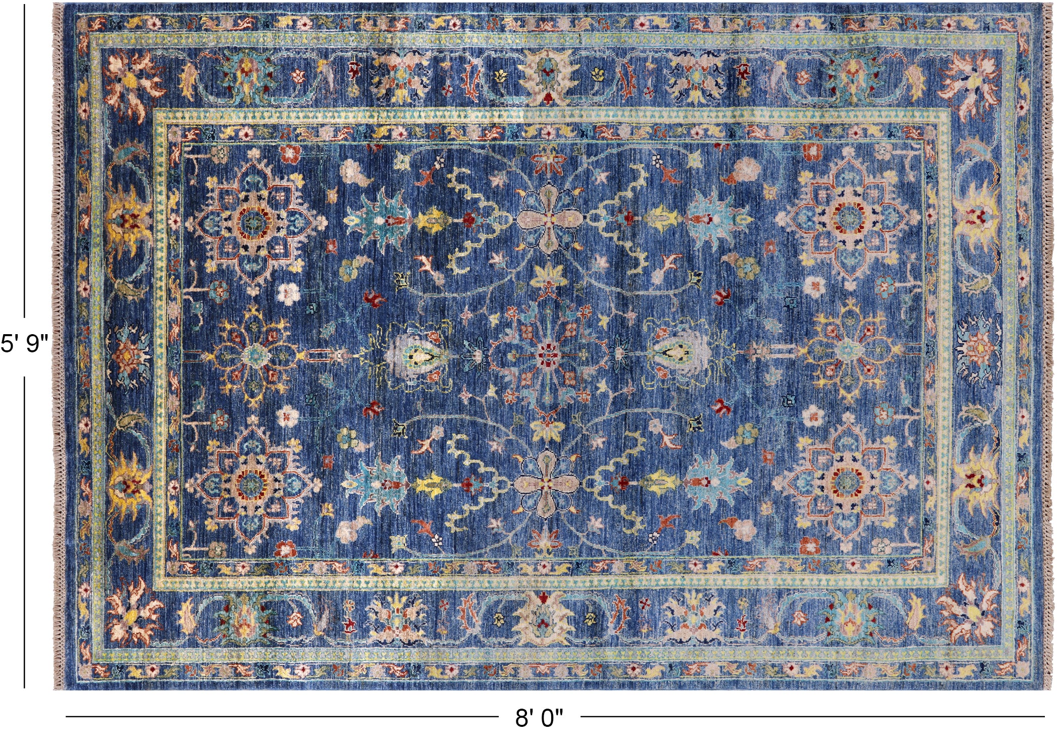 Blue 5' 9" X 8' 0" Persian Tabriz Handmade Wool Rug - Q7766