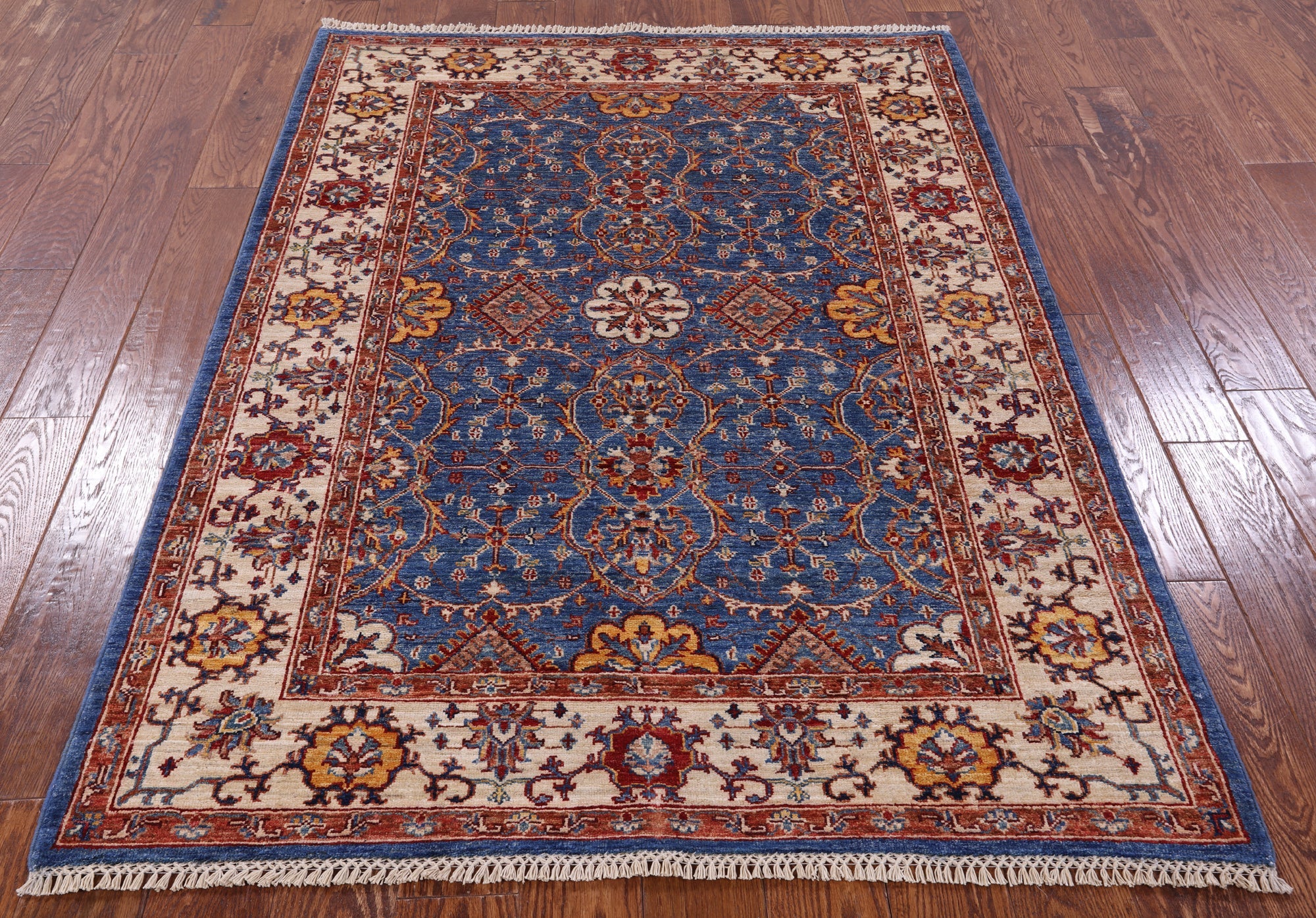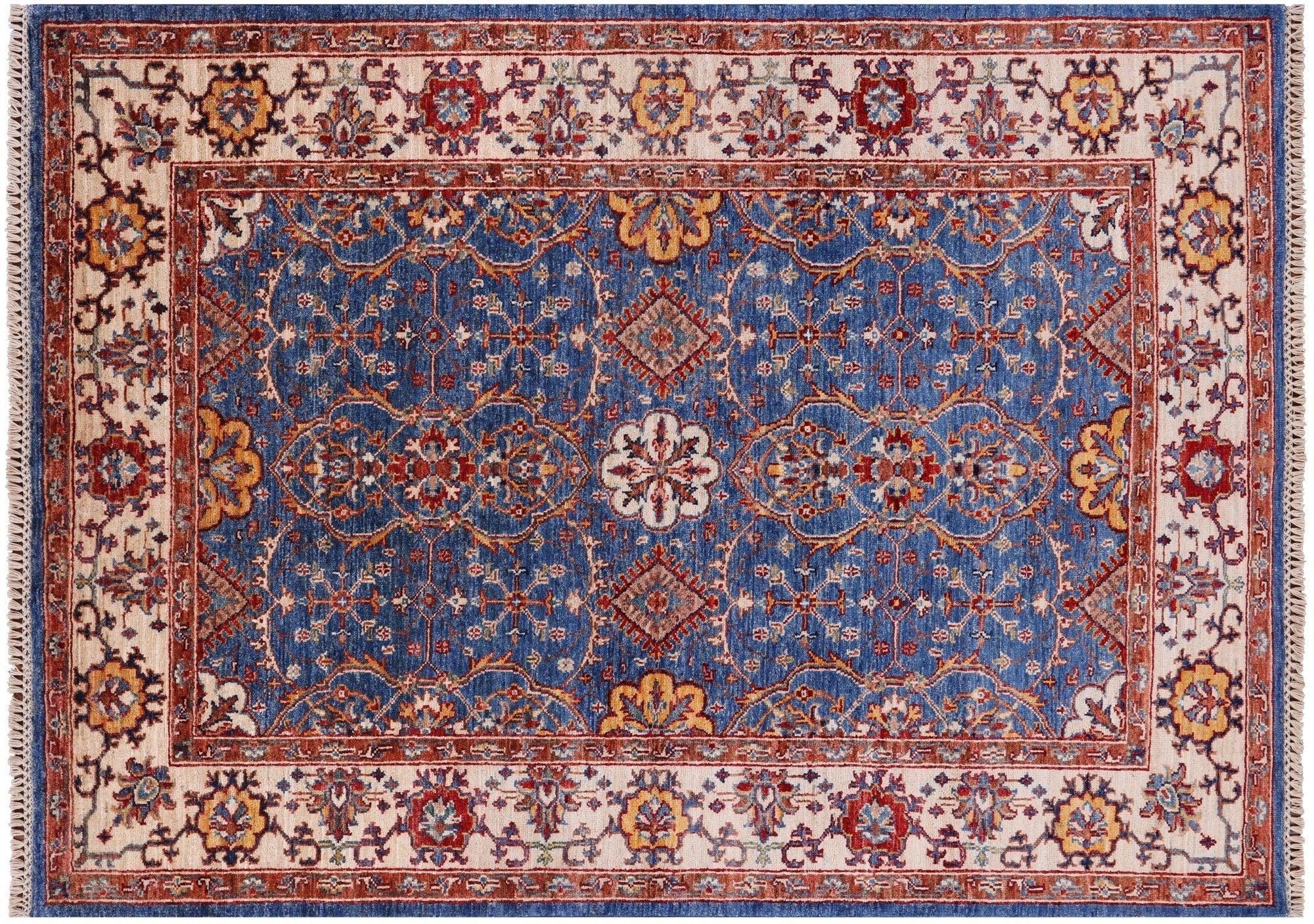 Blue Persian Tabriz Handmade Wool Rug 4' 4" X 5' 11" - Q8344
