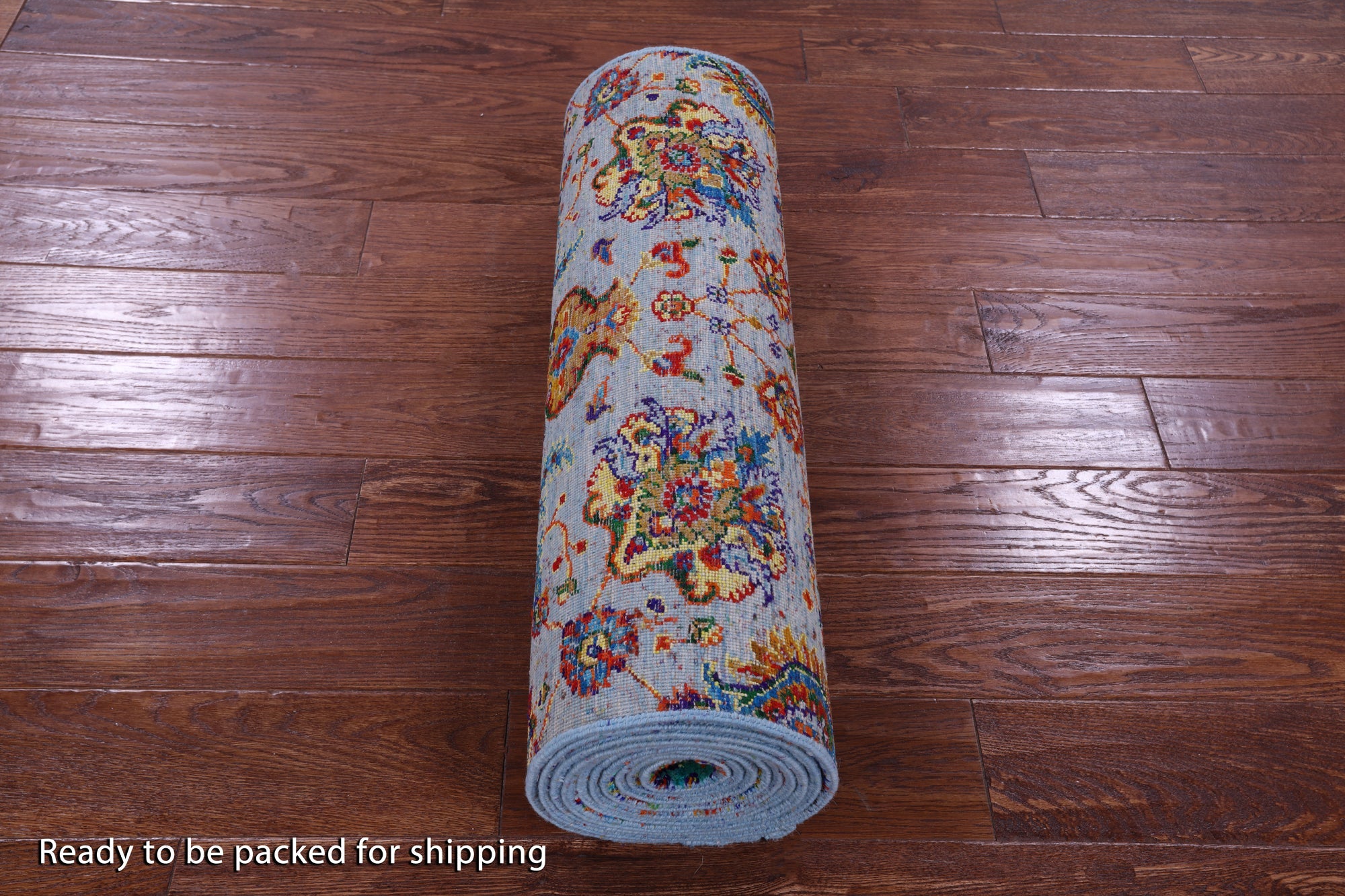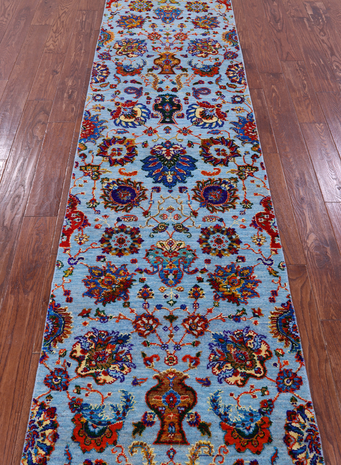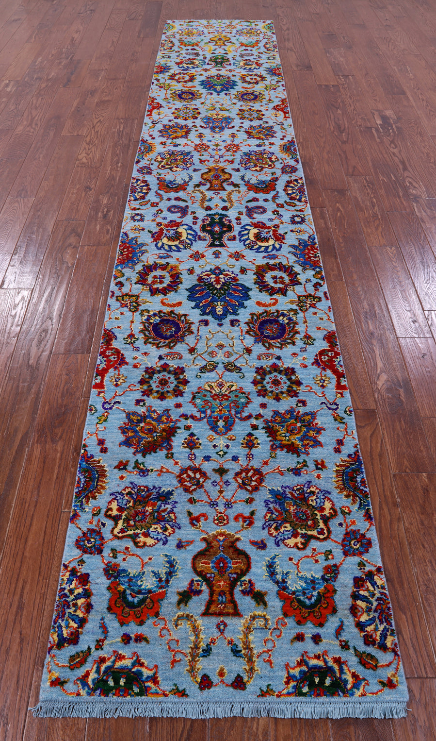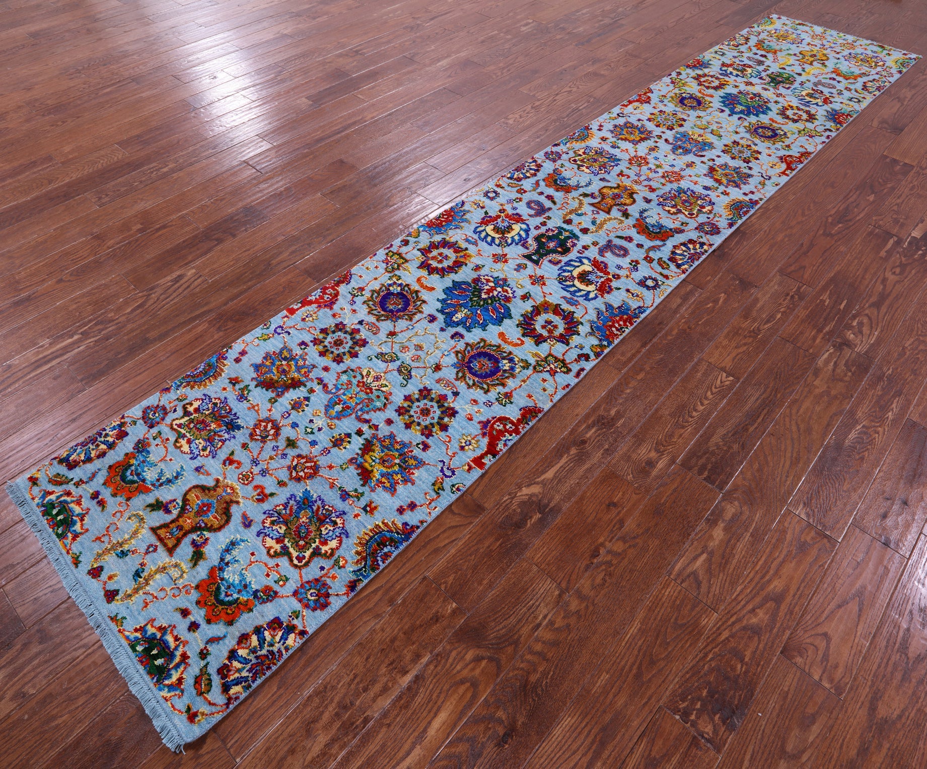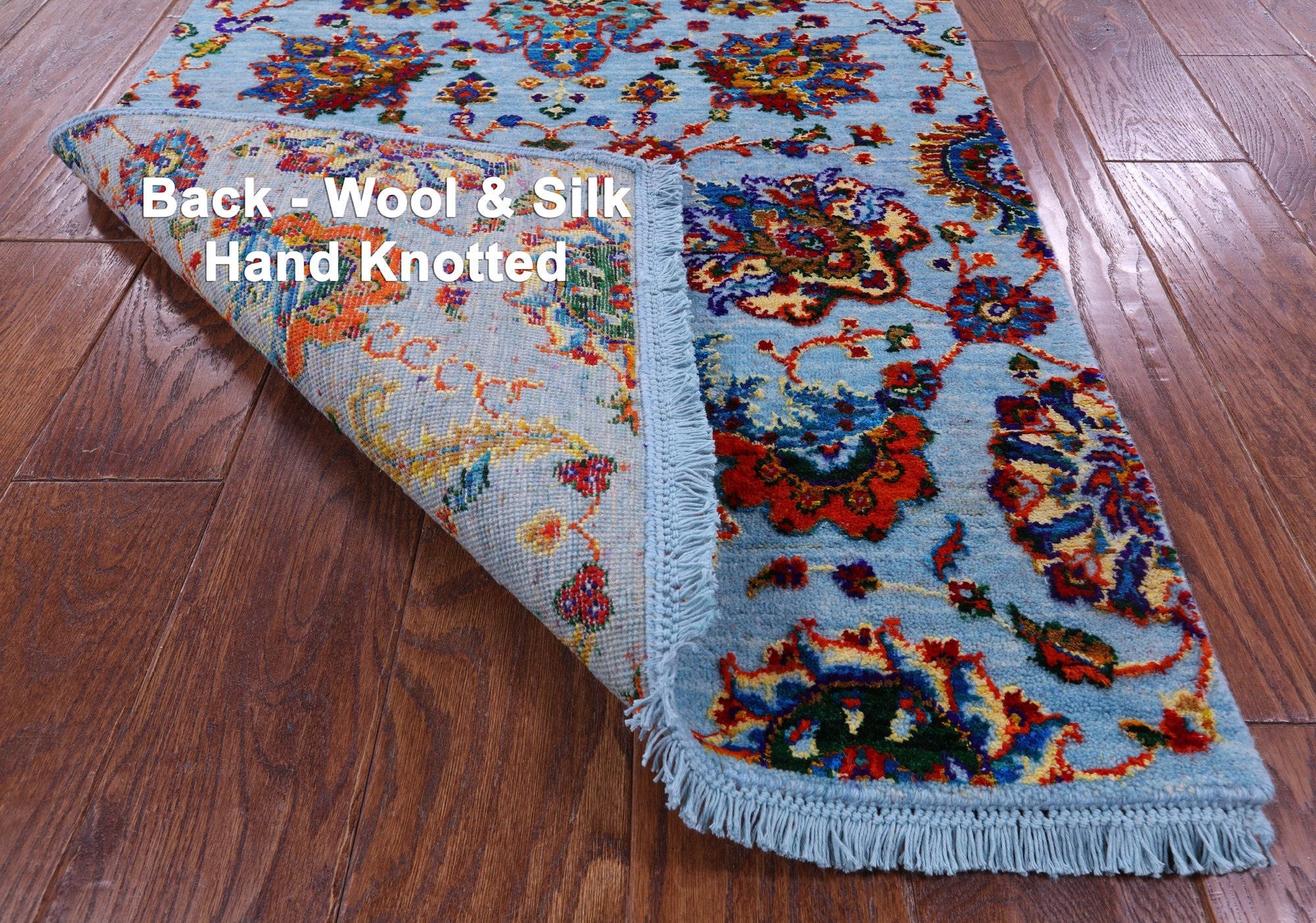 Blue 2' 7" X 13' 11" Persian Tabriz Handmade Wool & Silk Runner Rug - Q22558 is backordered and will ship as soon as it is back in stock.