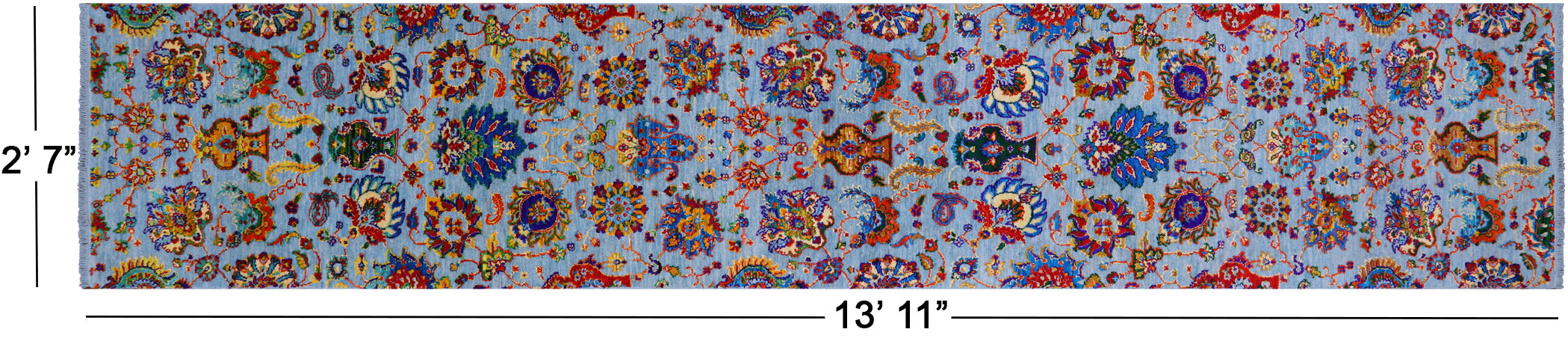 Blue 2' 7" X 13' 11" Persian Tabriz Handmade Wool & Silk Runner Rug - Q22558