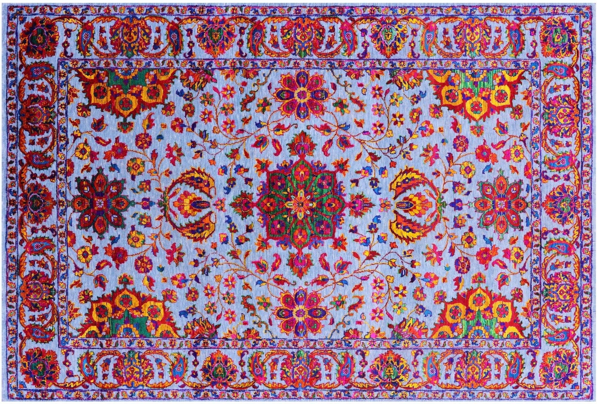 Blue 6' 1" X 9' 2" Persian Tabriz Wool & Silk Hand-Knotted Rug - Q20331