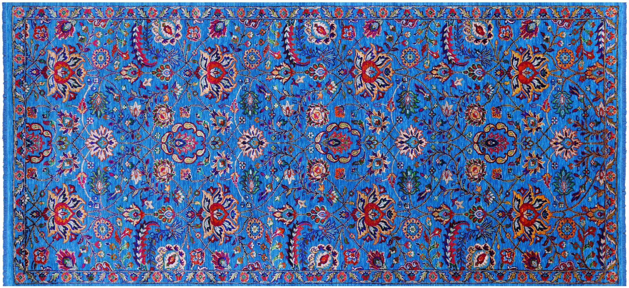 Blue 5' 1" X 11' 6" Persian Tabriz Wool & Silk Hand-Knotted Rug - Q22520
