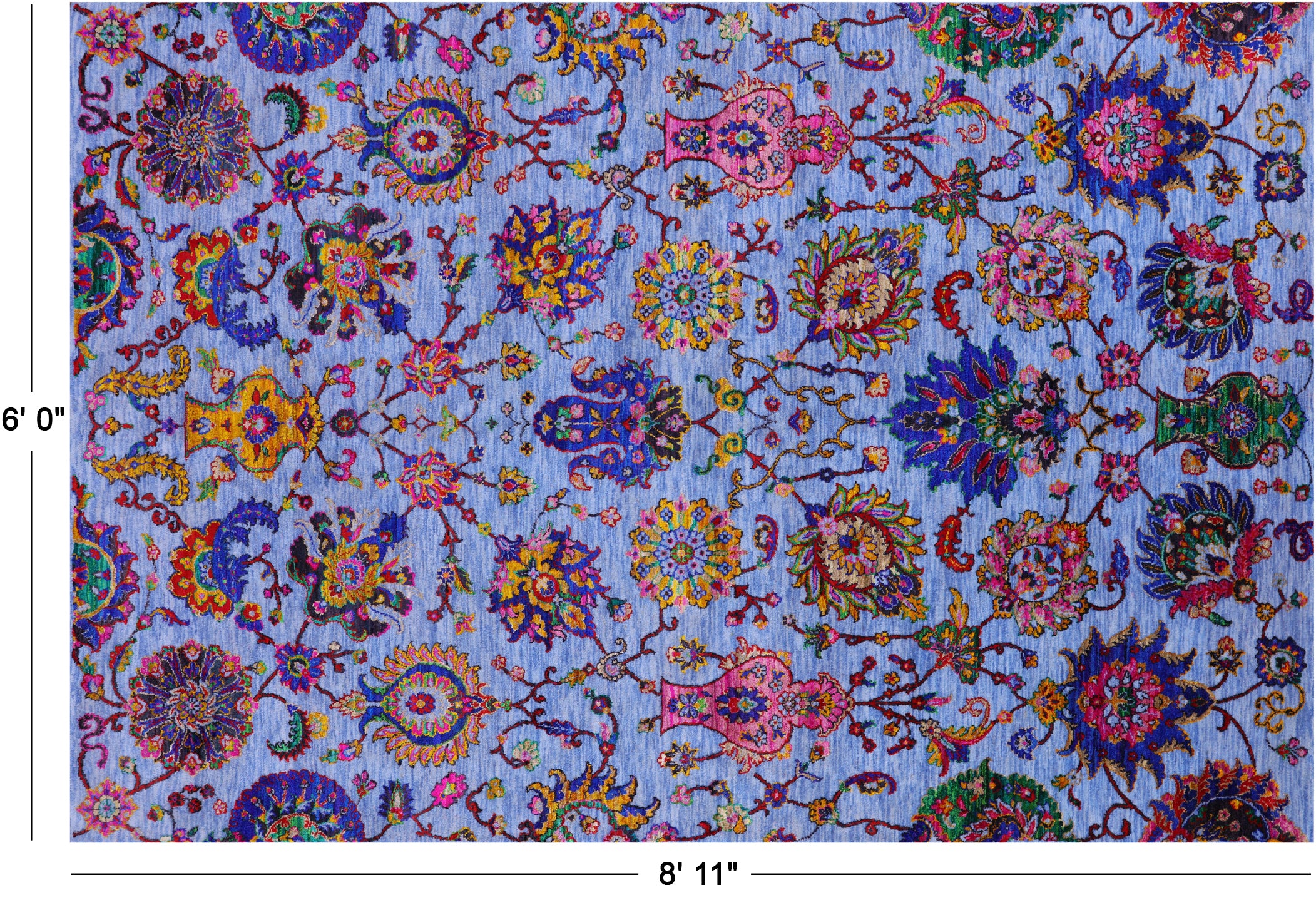 Blue 6' 0" X 8' 11" Persian Tabriz Wool & Silk Handmade Rug - Q14924