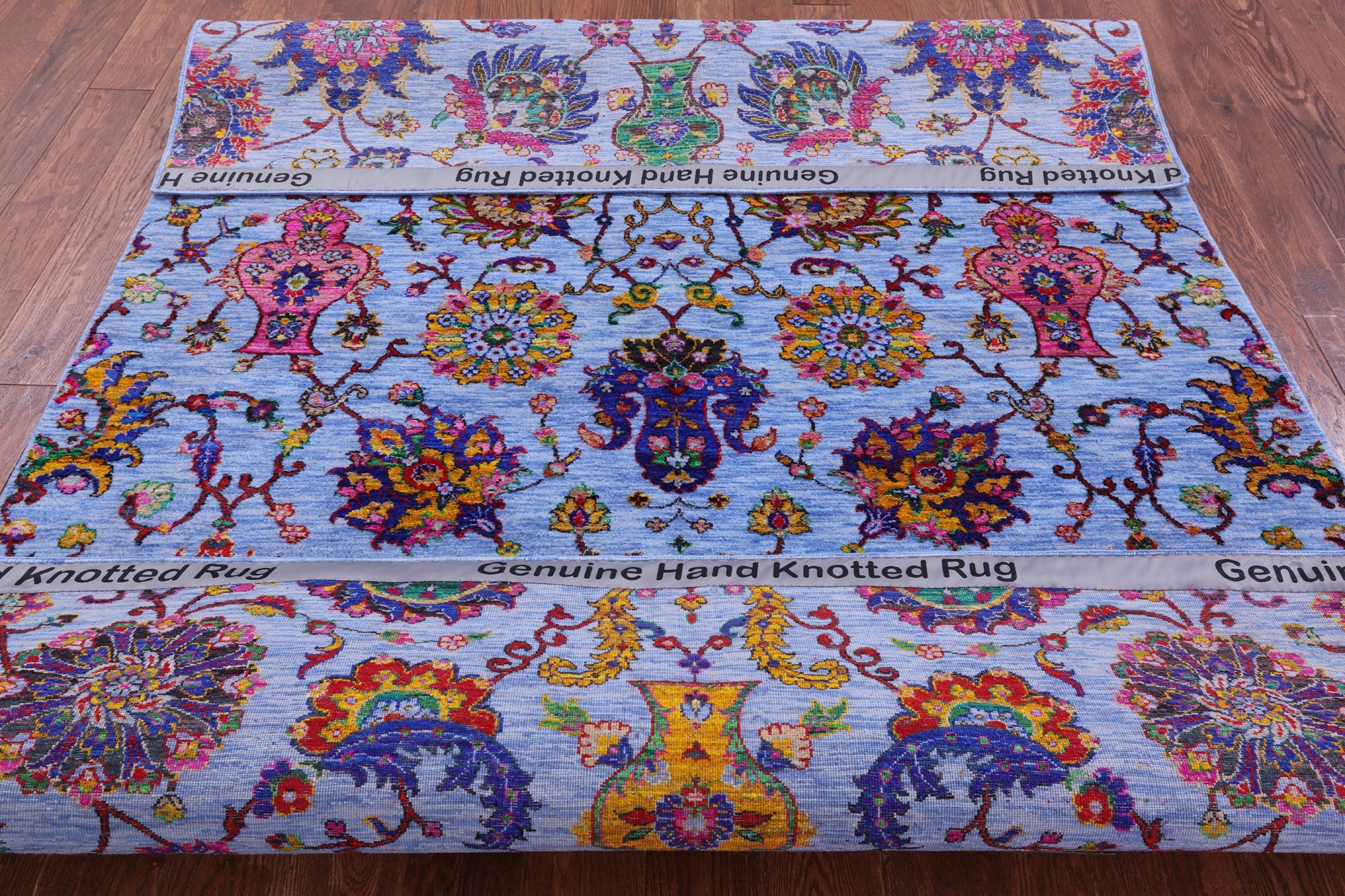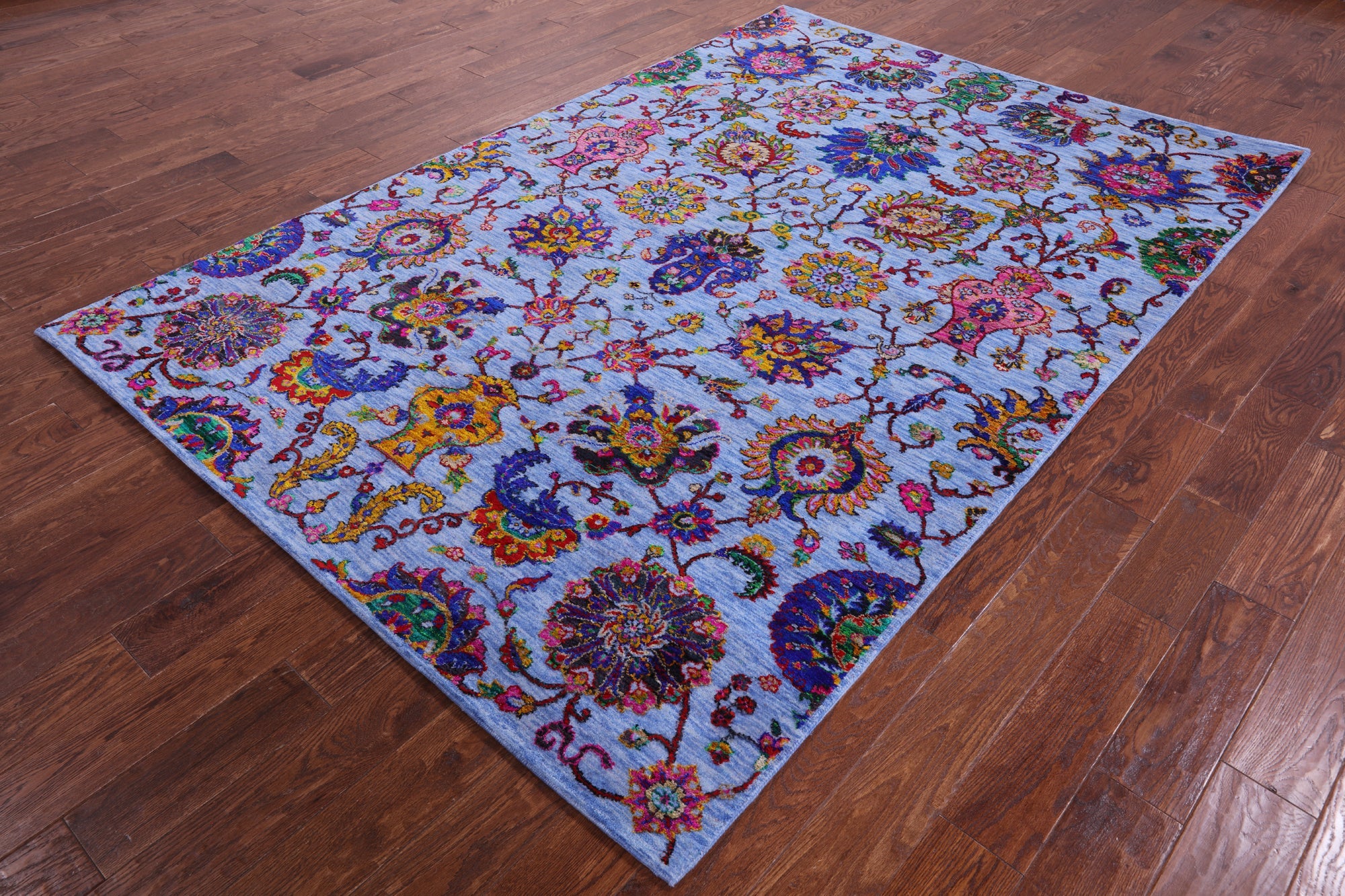 Blue 6' 0" X 8' 11" Persian Tabriz Wool & Silk Handmade Rug - Q14924 is backordered and will ship as soon as it is back in stock.