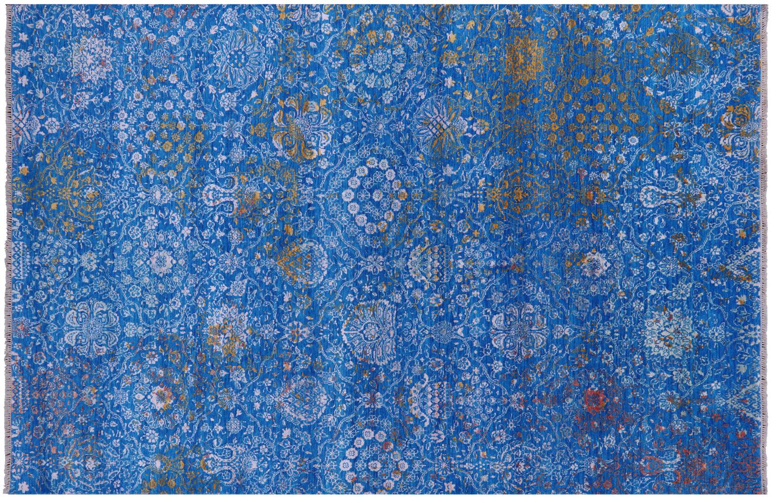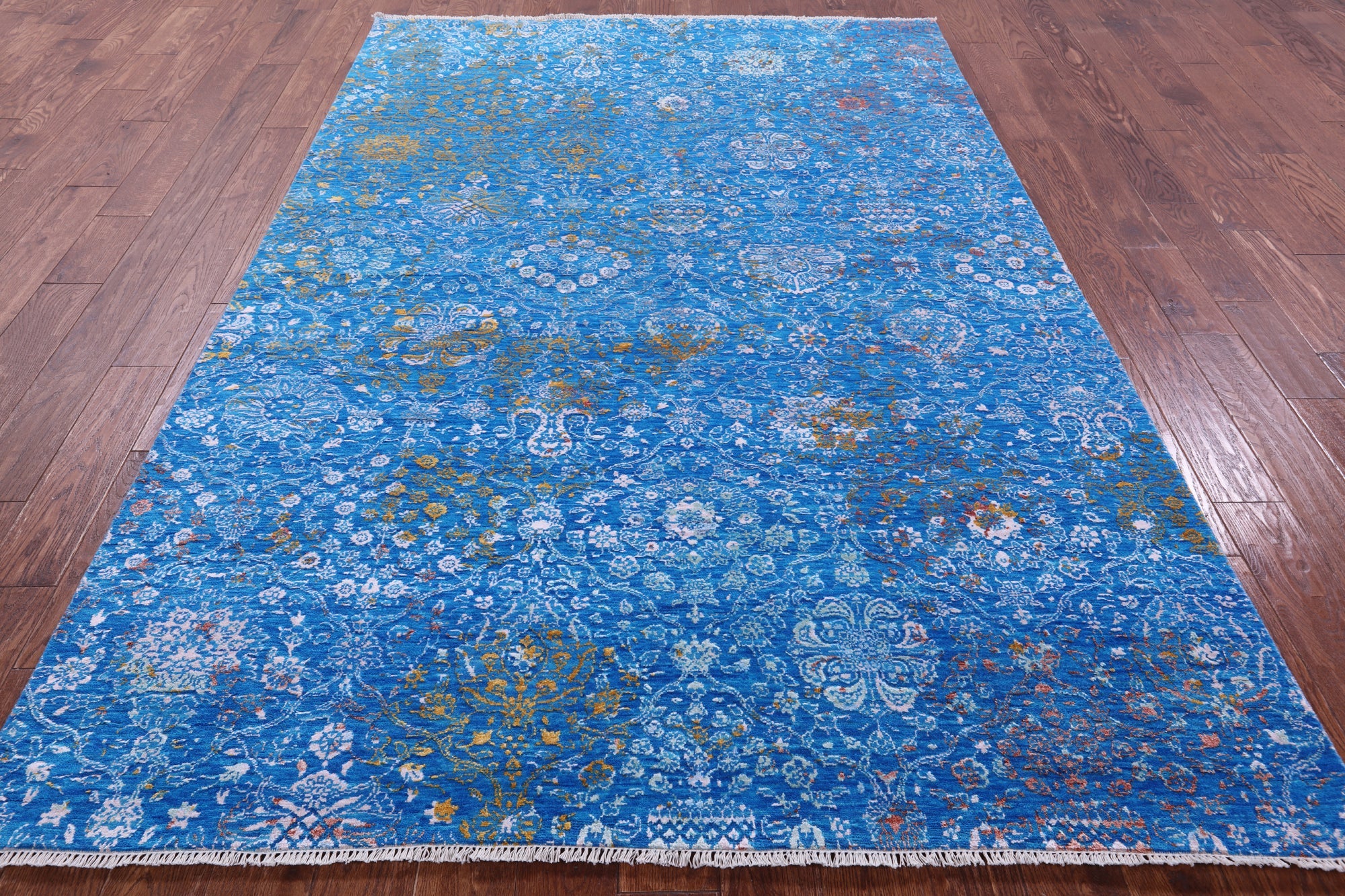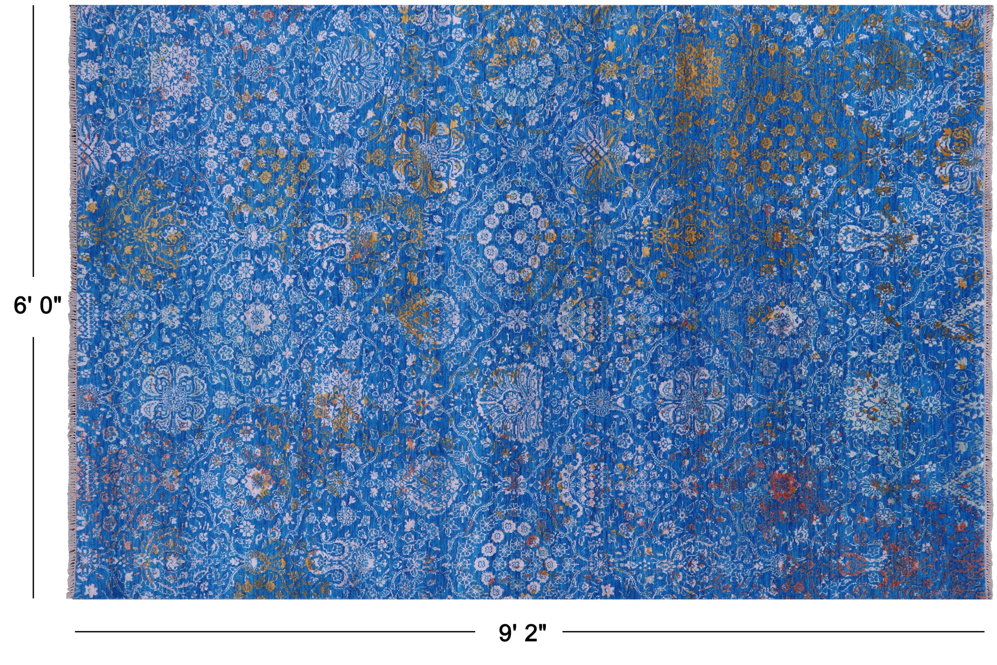 Blue Persian Tabriz Wool & Silk Handmade Rug 6' 0" X 9' 2" - Q23476