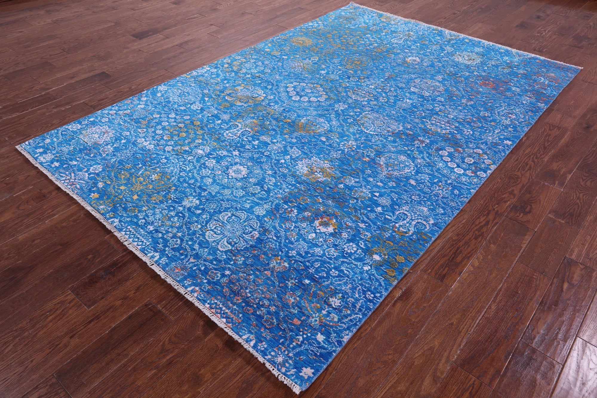 Blue Persian Tabriz Wool & Silk Handmade Rug 6' 0" X 9' 2" - Q23476 is backordered and will ship as soon as it is back in stock.