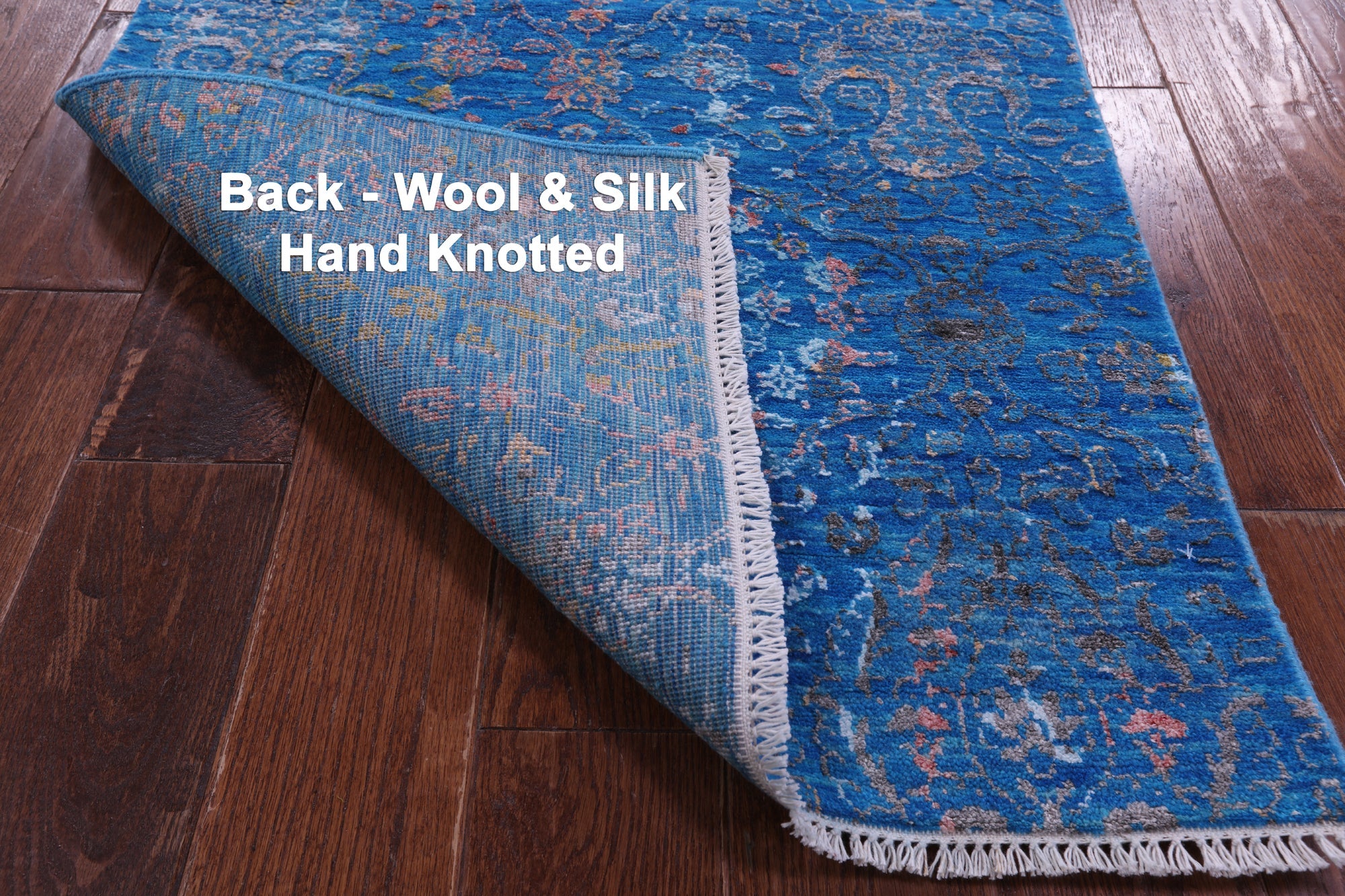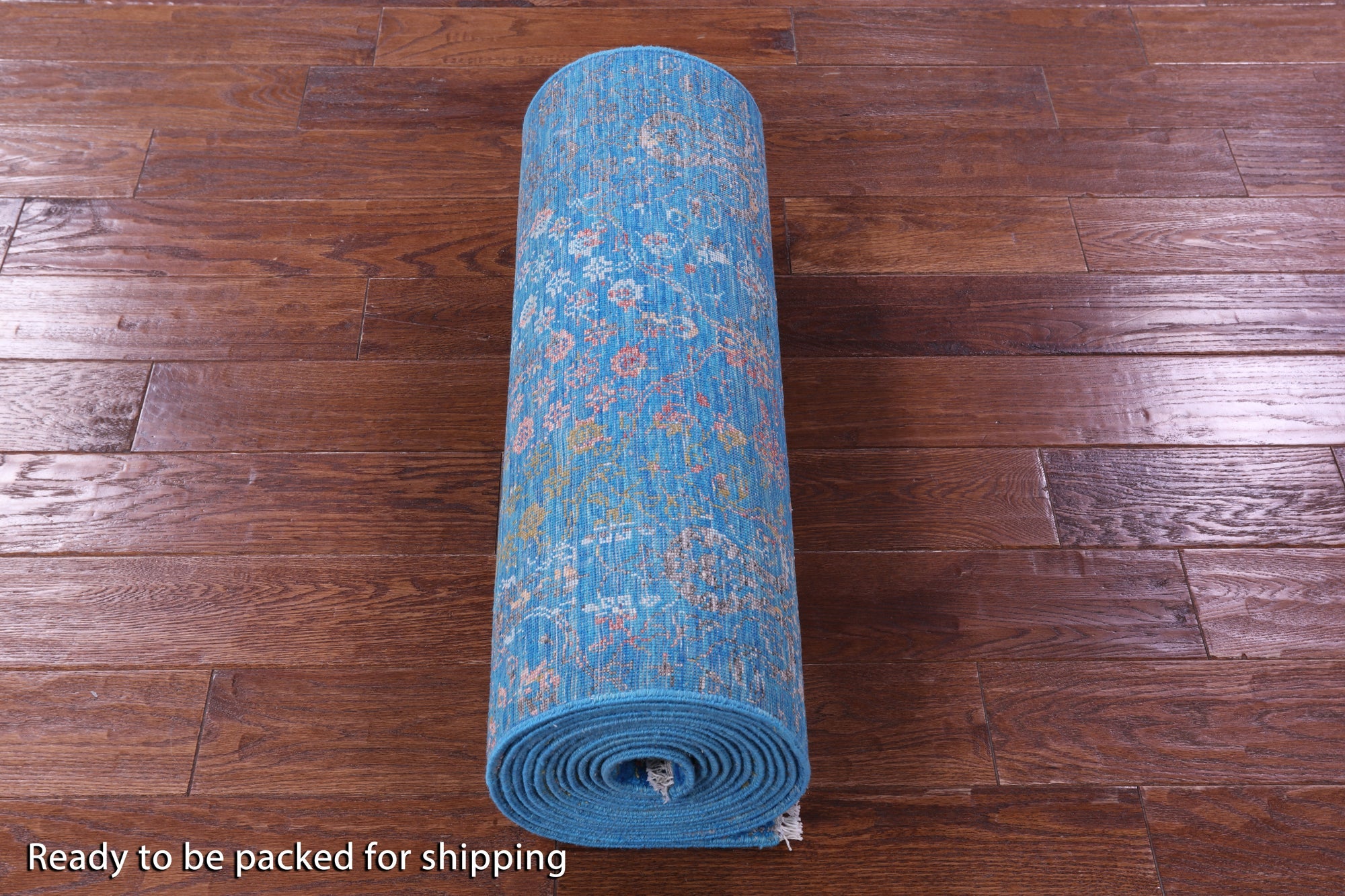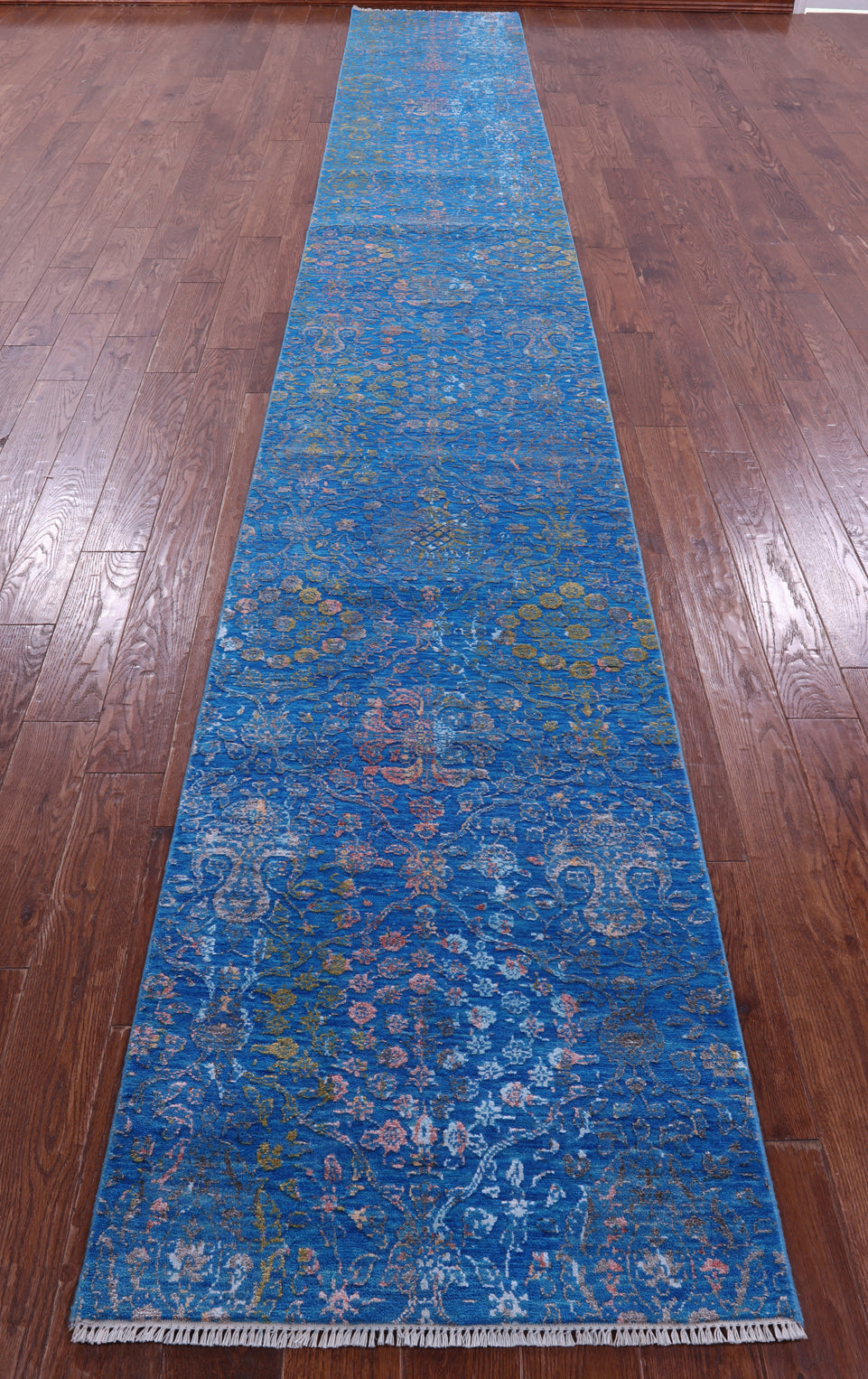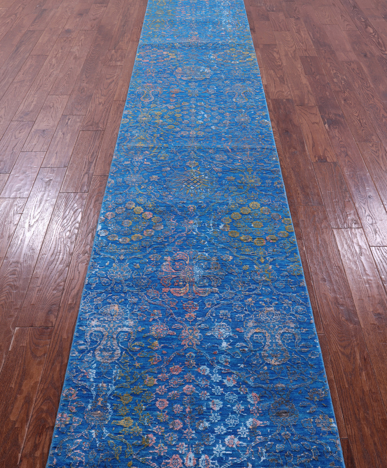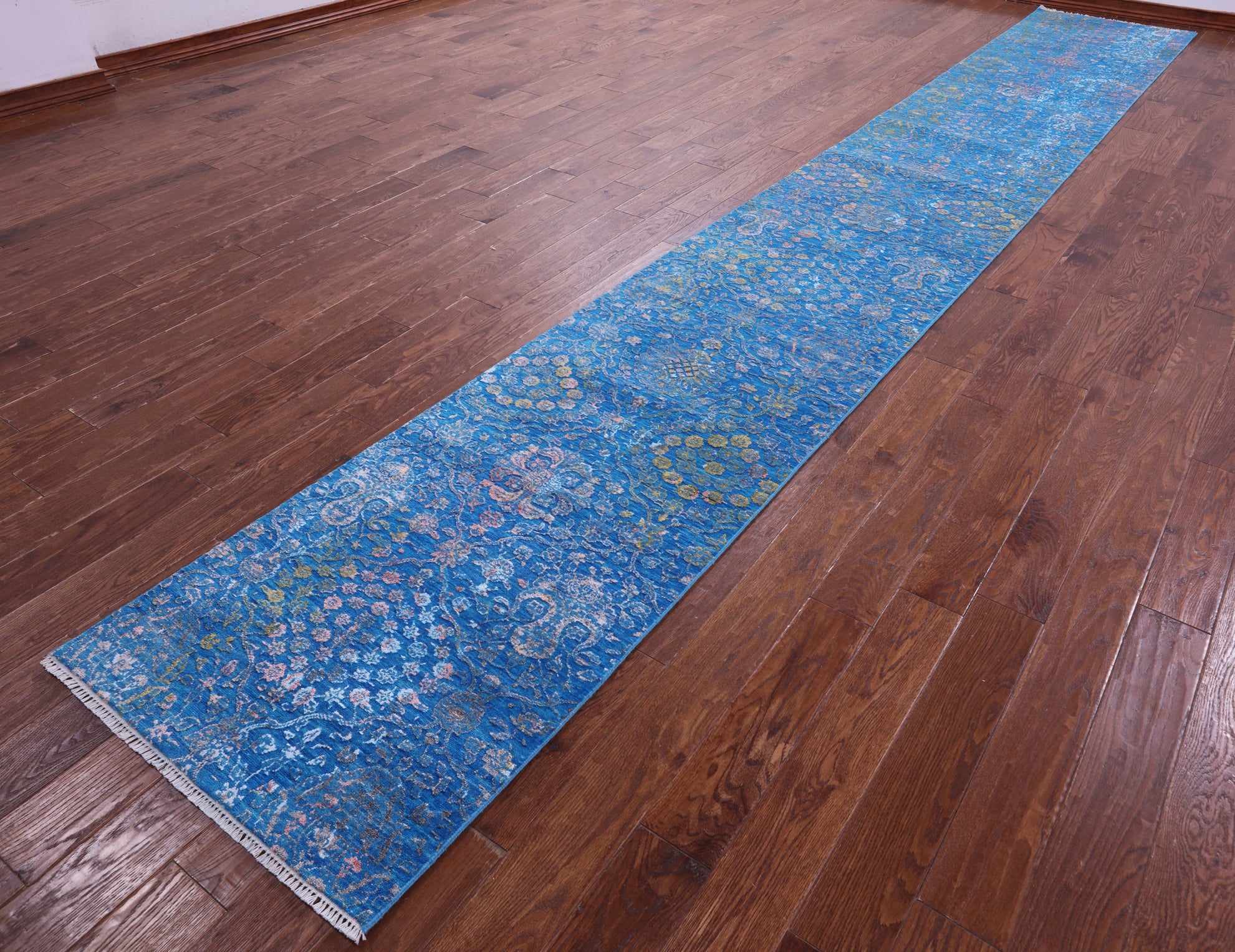 Blue 2' 7" X 18' 1" Runner Persian Tabriz Hand-Knotted Wool & Silk Rug - Q23477 is backordered and will ship as soon as it is back in stock.