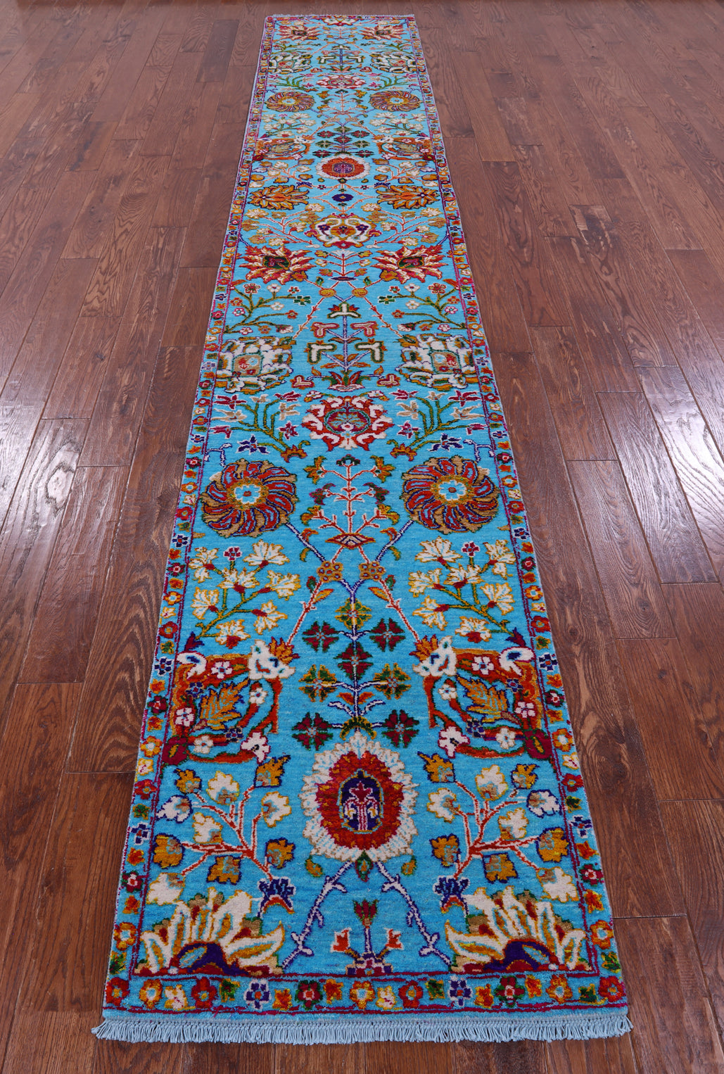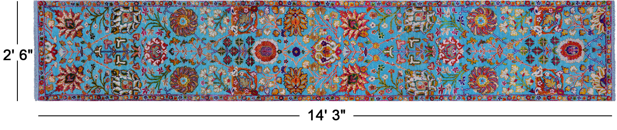 Blue 2' 6" X 14' 3" Runner Persian Tabriz Handmade Wool & Silk Rug - Q22561