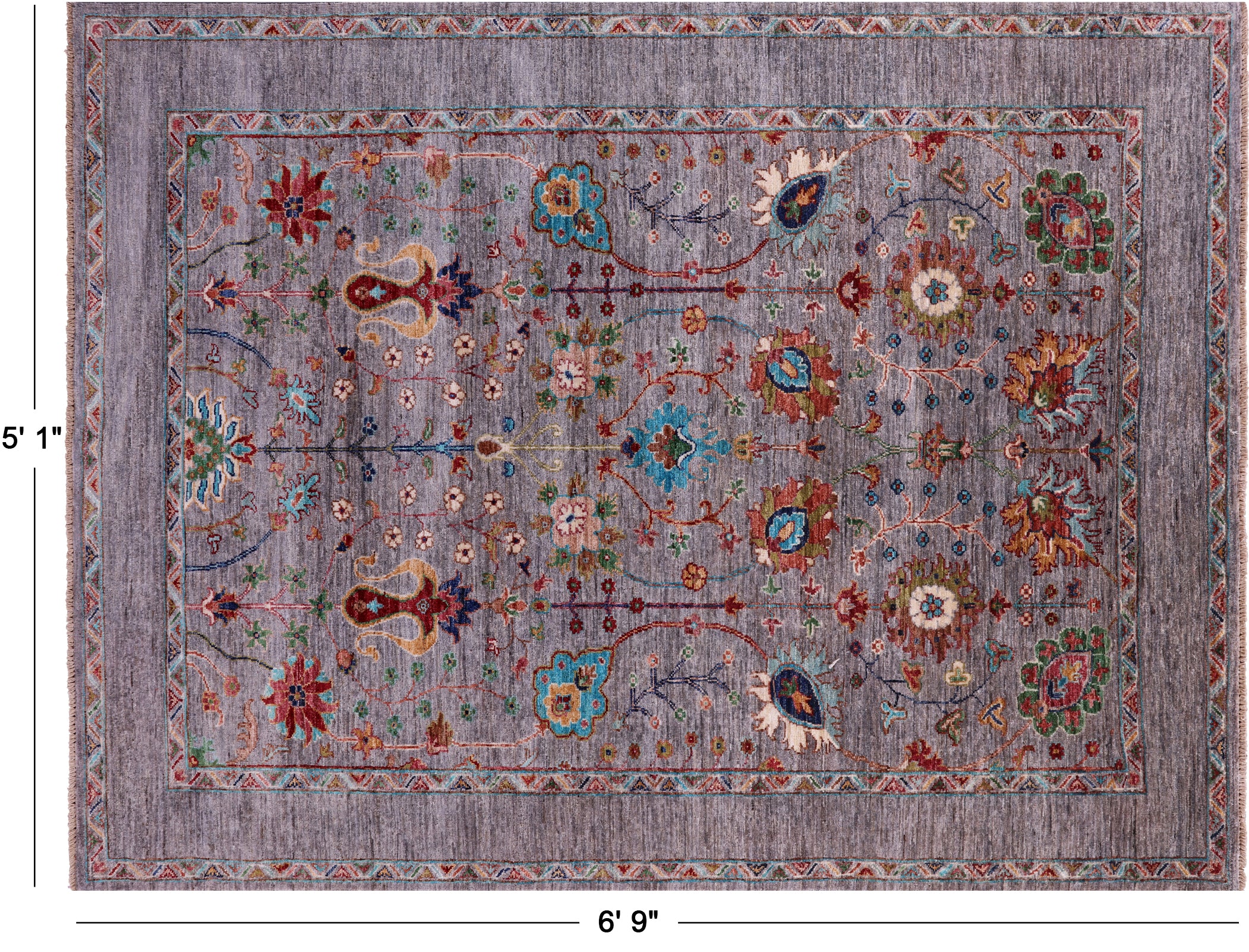 Grey Hand-Knotted Persian Tabriz Wool Rug 5' 1" X 6' 9" - Q16302 is backordered and will ship as soon as it is back in stock.