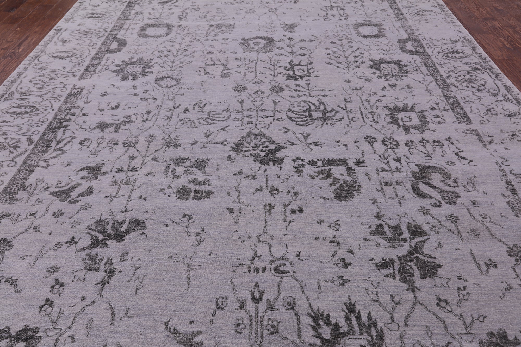 Grey Hand-Knotted Persian Tabriz Wool & Silk Rug 9' 11" X 14' 3" - Q19214