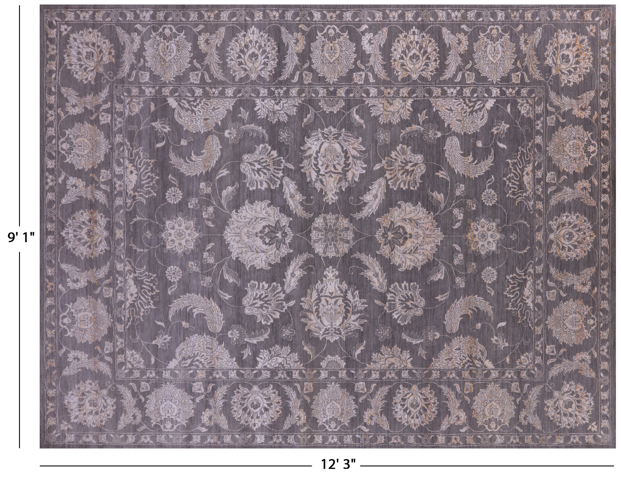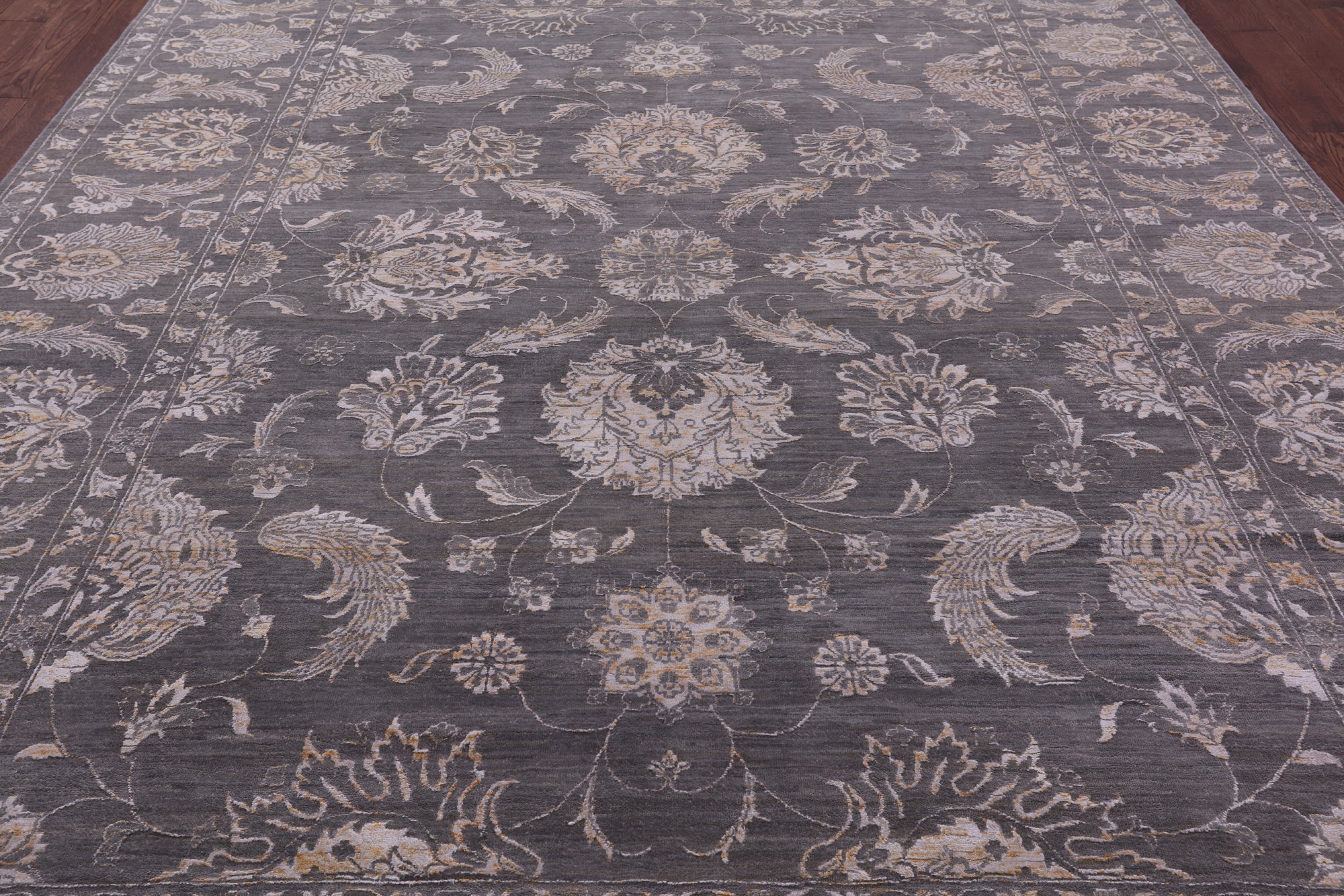 Grey Hand-Knotted Persian Tabriz Wool & Silk Rug 9' 1" X 12' 3" - Q21617