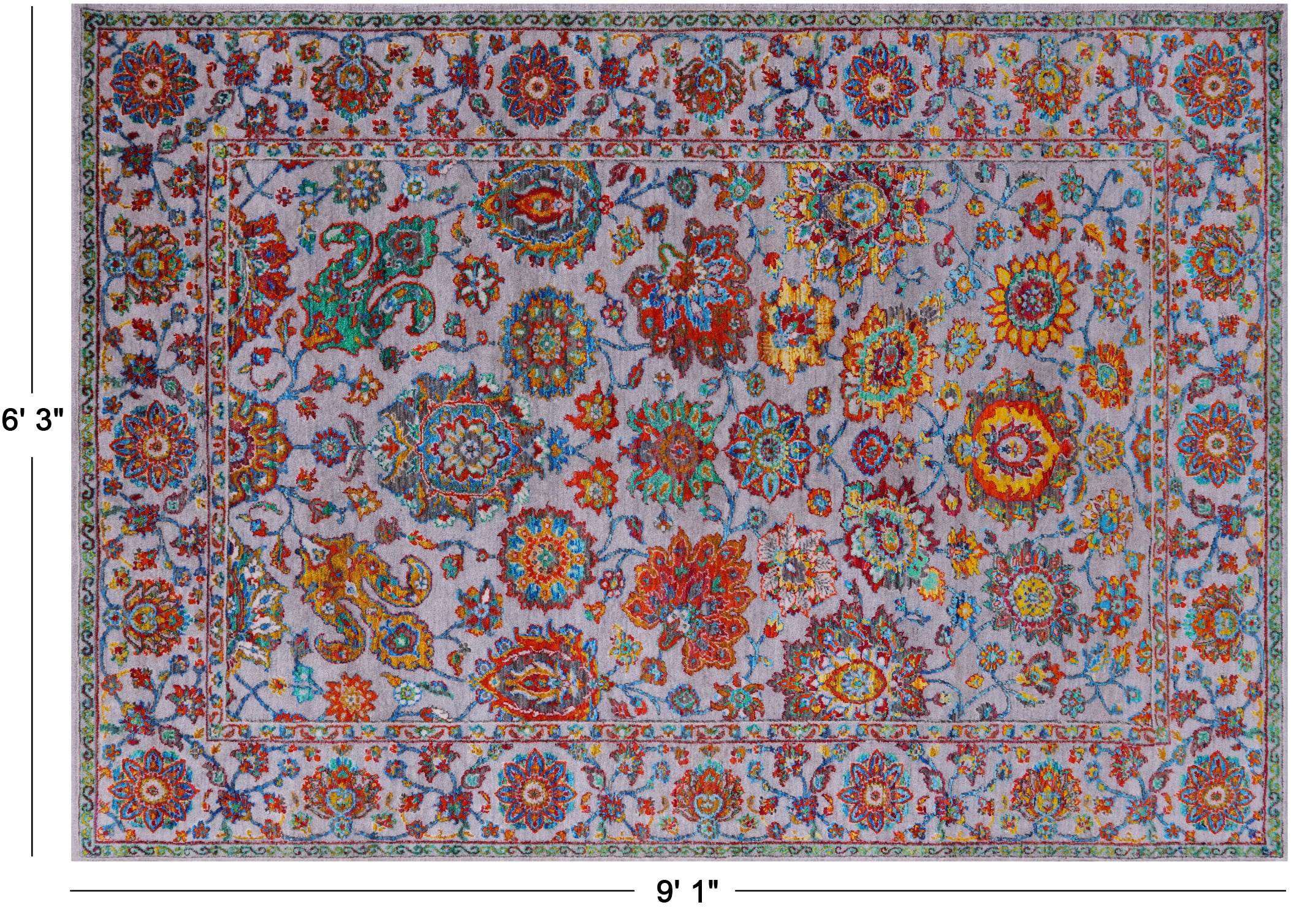Grey Hand Knotted Wool & Silk Persian Tabriz Rug 6' 3" X 9' 1" - Q14930