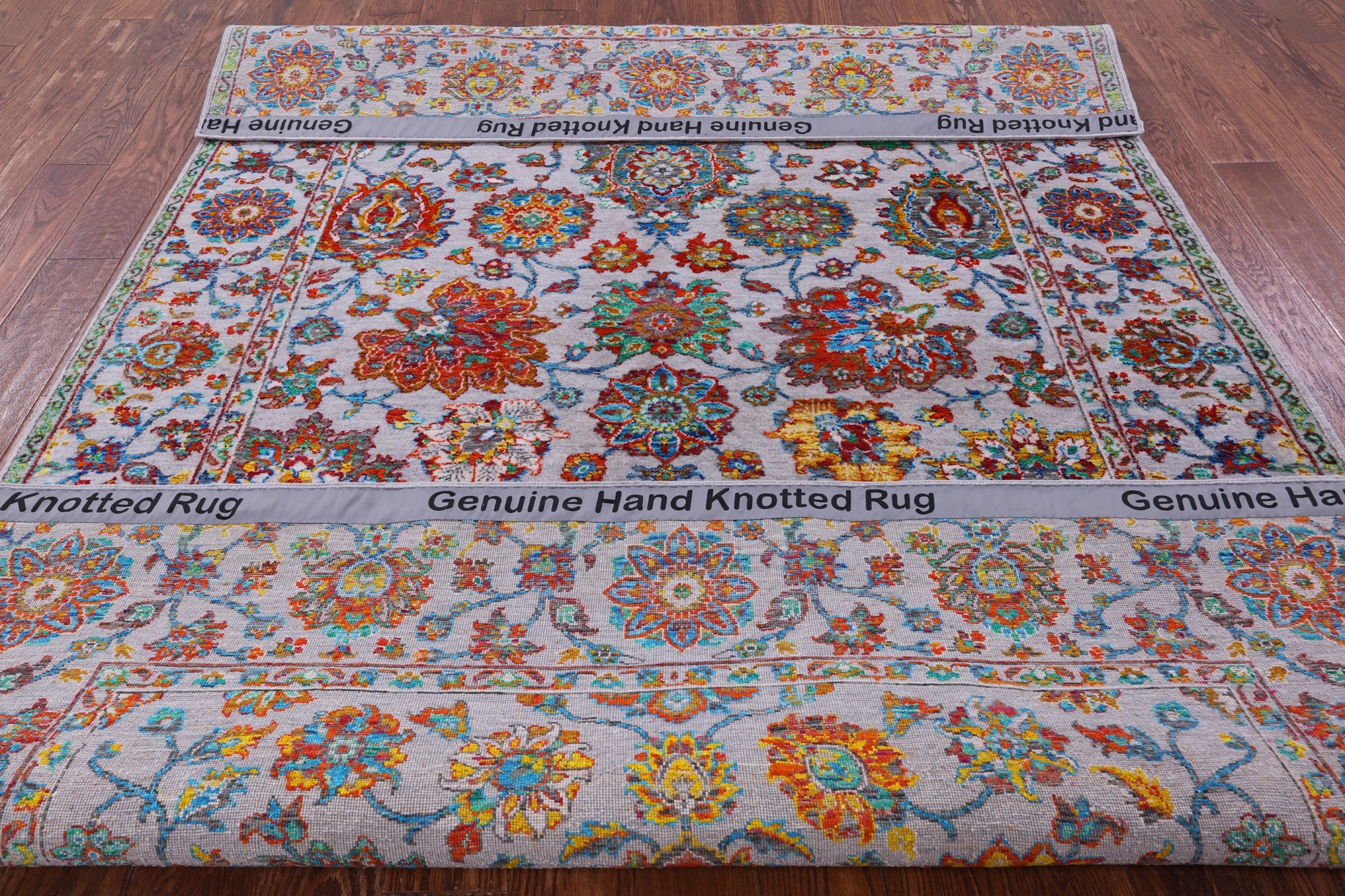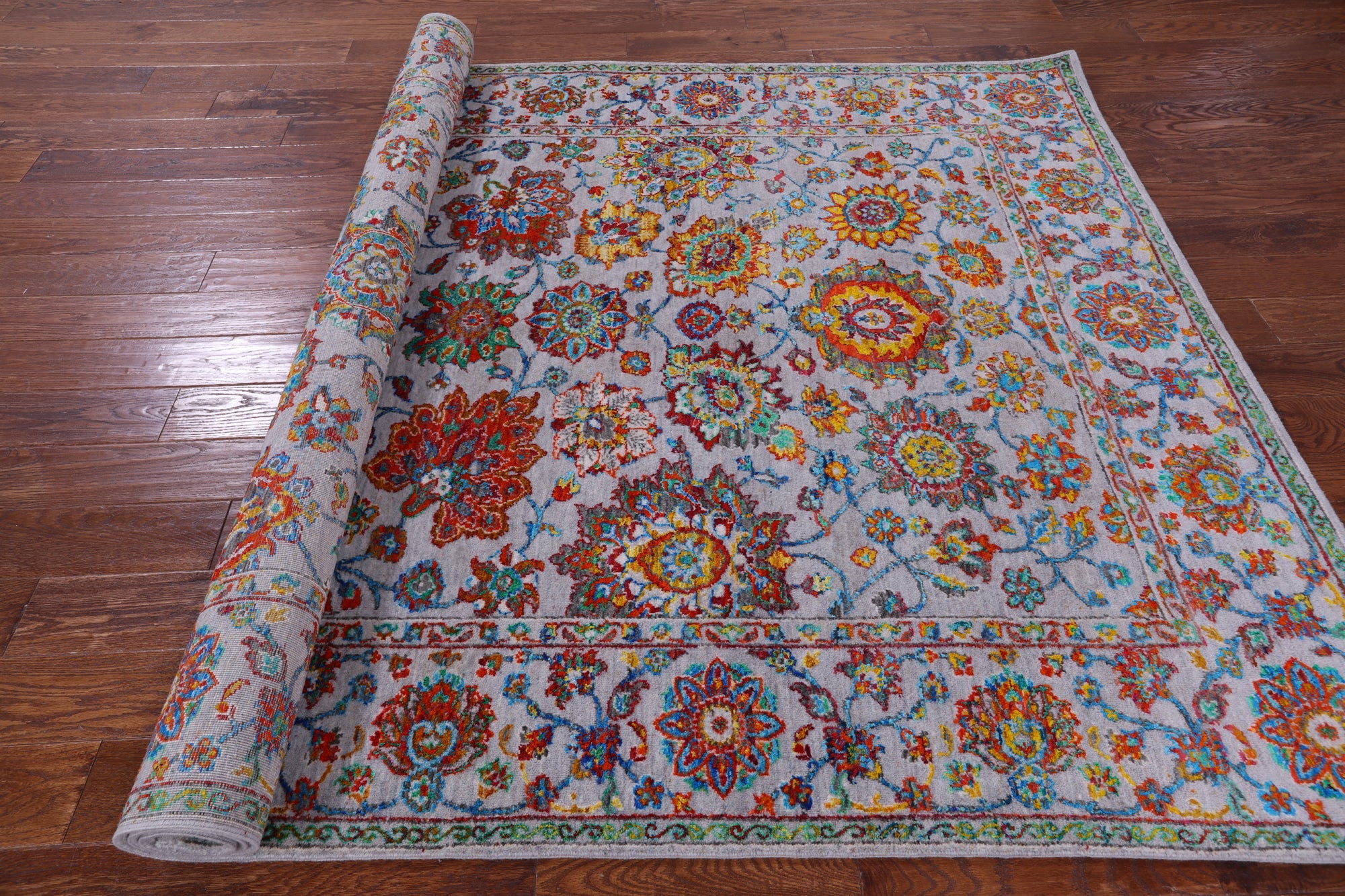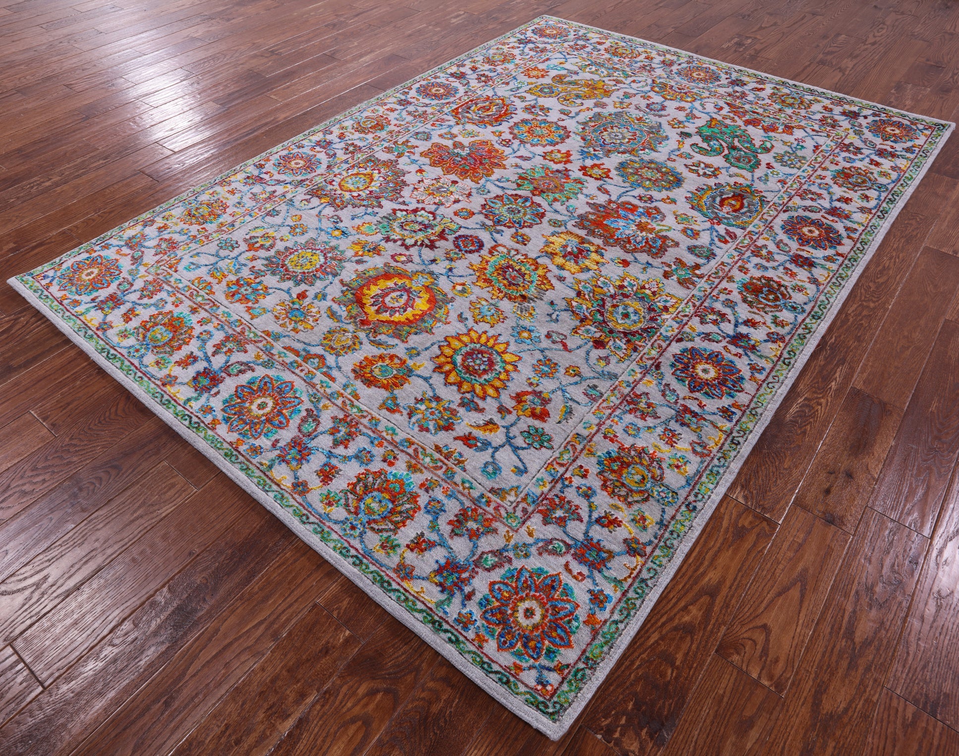 Grey Hand Knotted Wool & Silk Persian Tabriz Rug 6' 3" X 9' 1" - Q14930 is backordered and will ship as soon as it is back in stock.