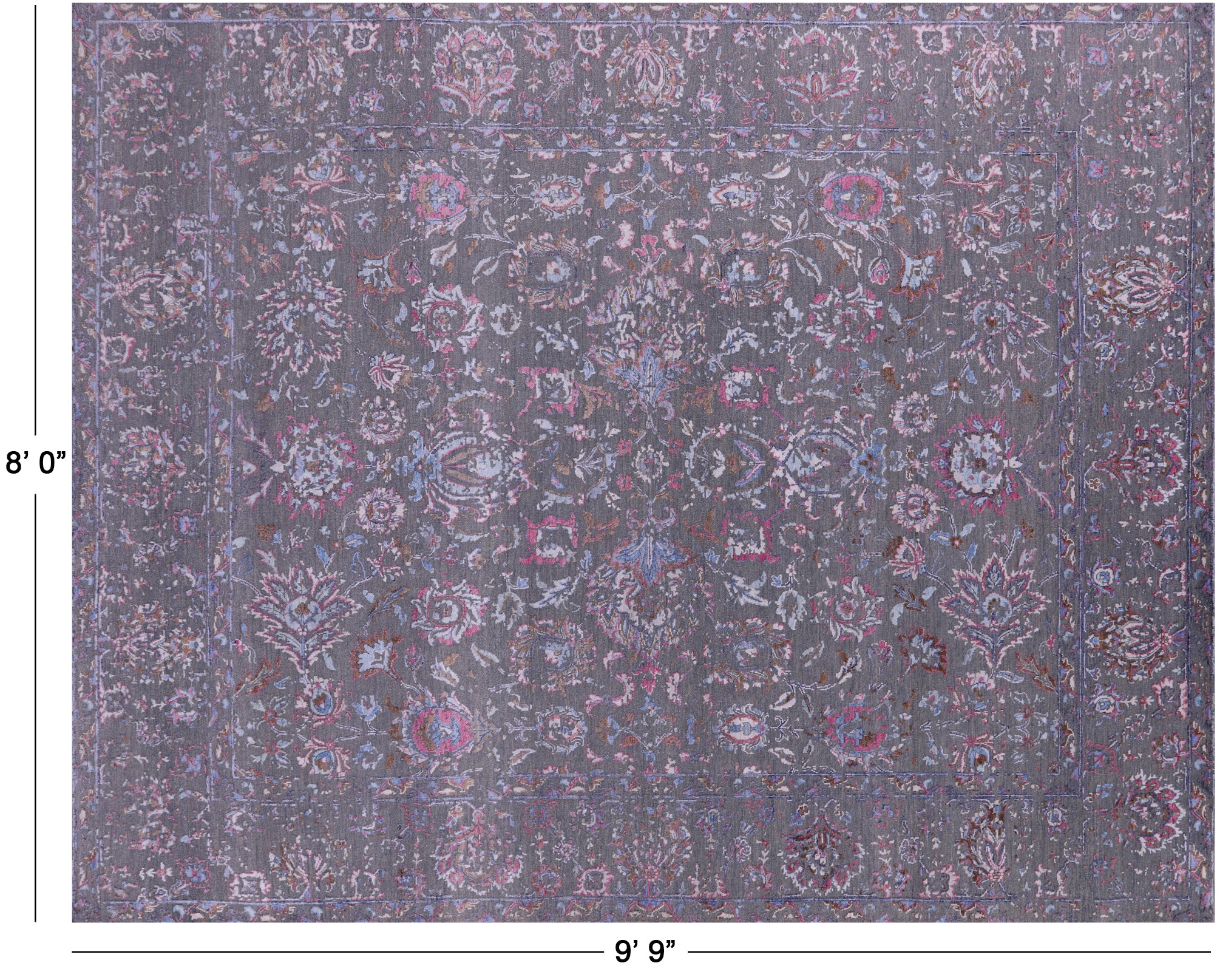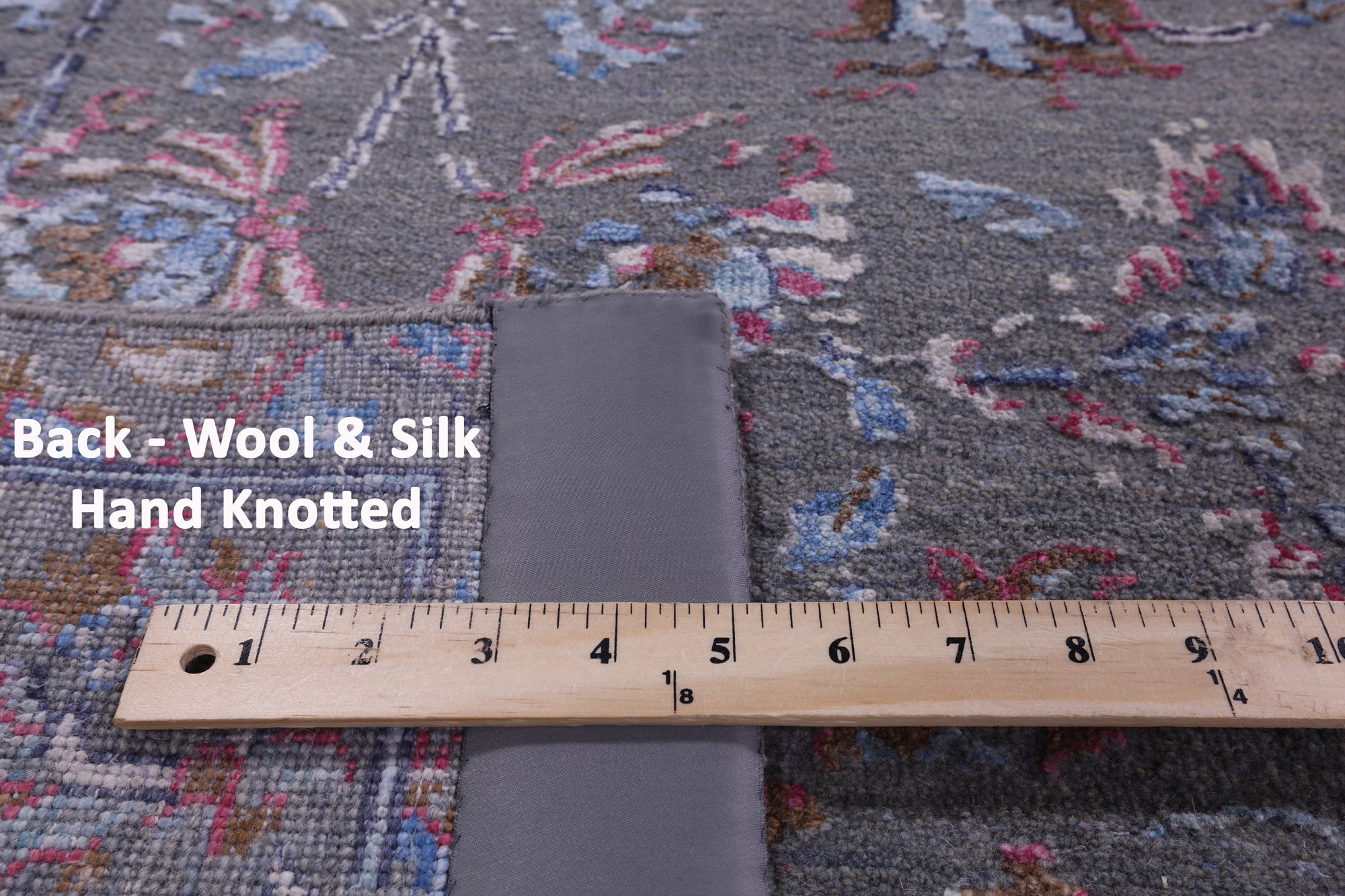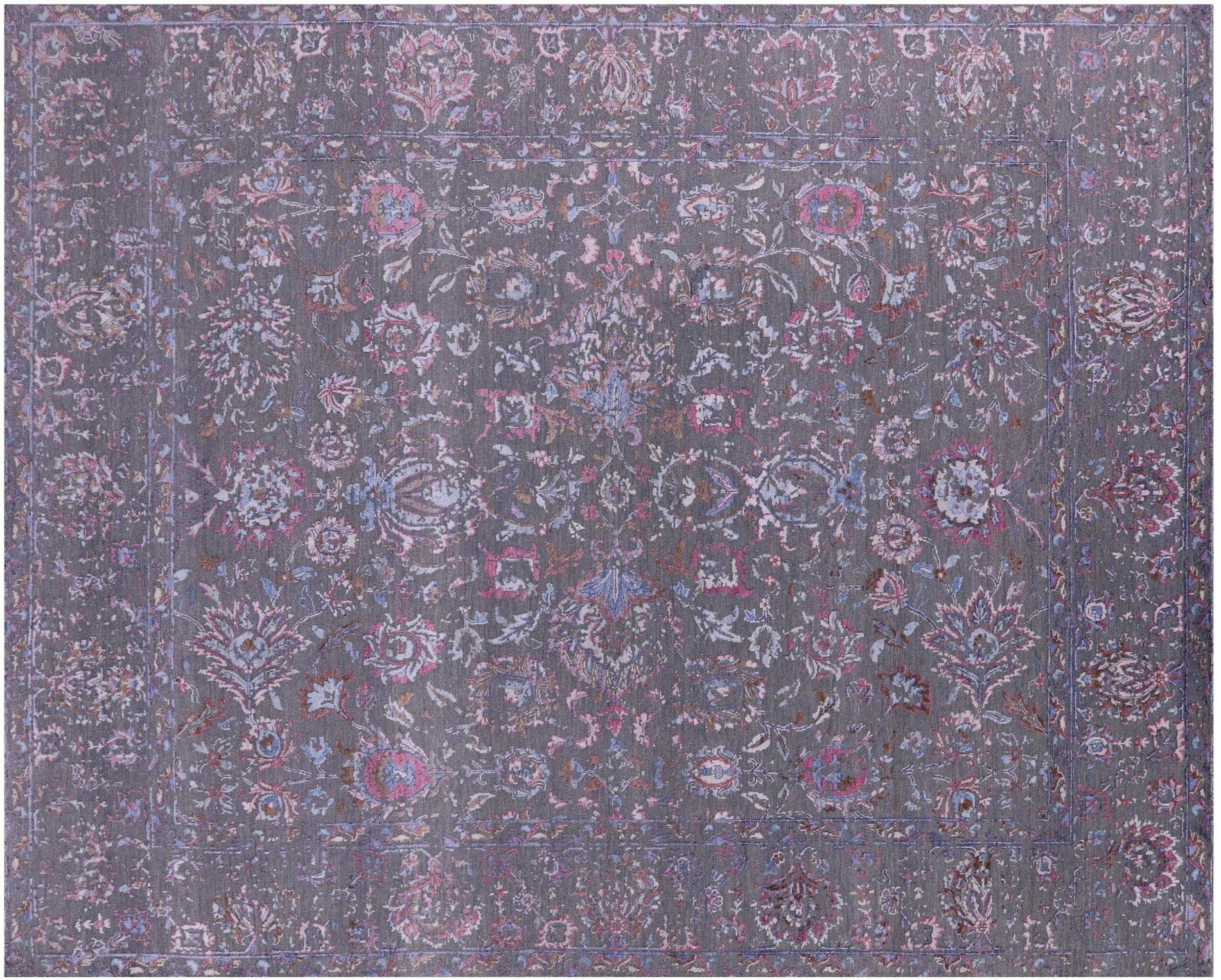 Grey 8' 0" X 9' 9" Hand Knotted Wool & Silk Persian Tabriz Rug - Q19148