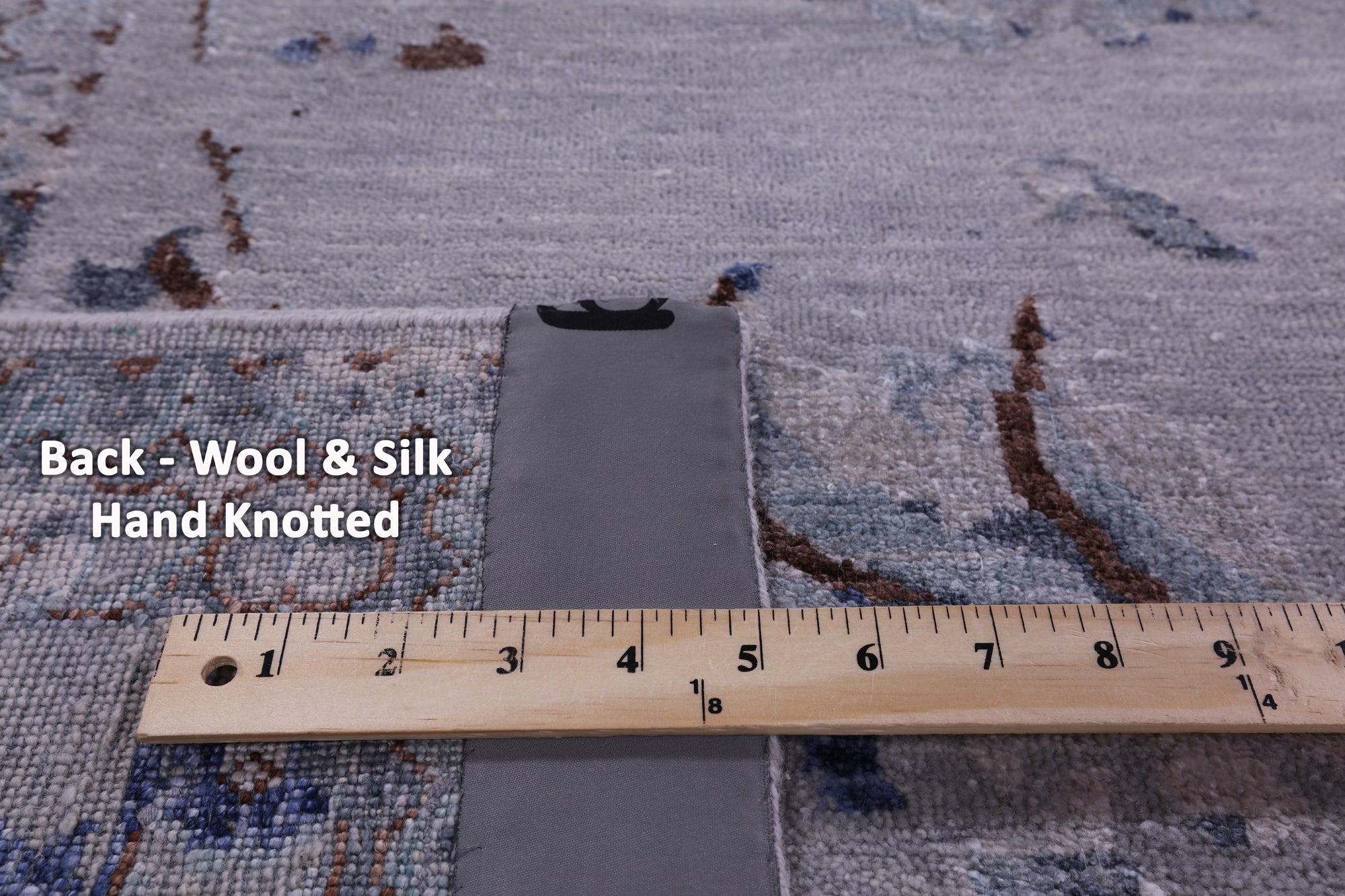 Grey Hand Knotted Wool & Silk Persian Tabriz Rug 8' 8" X 11' 10" - Q19189