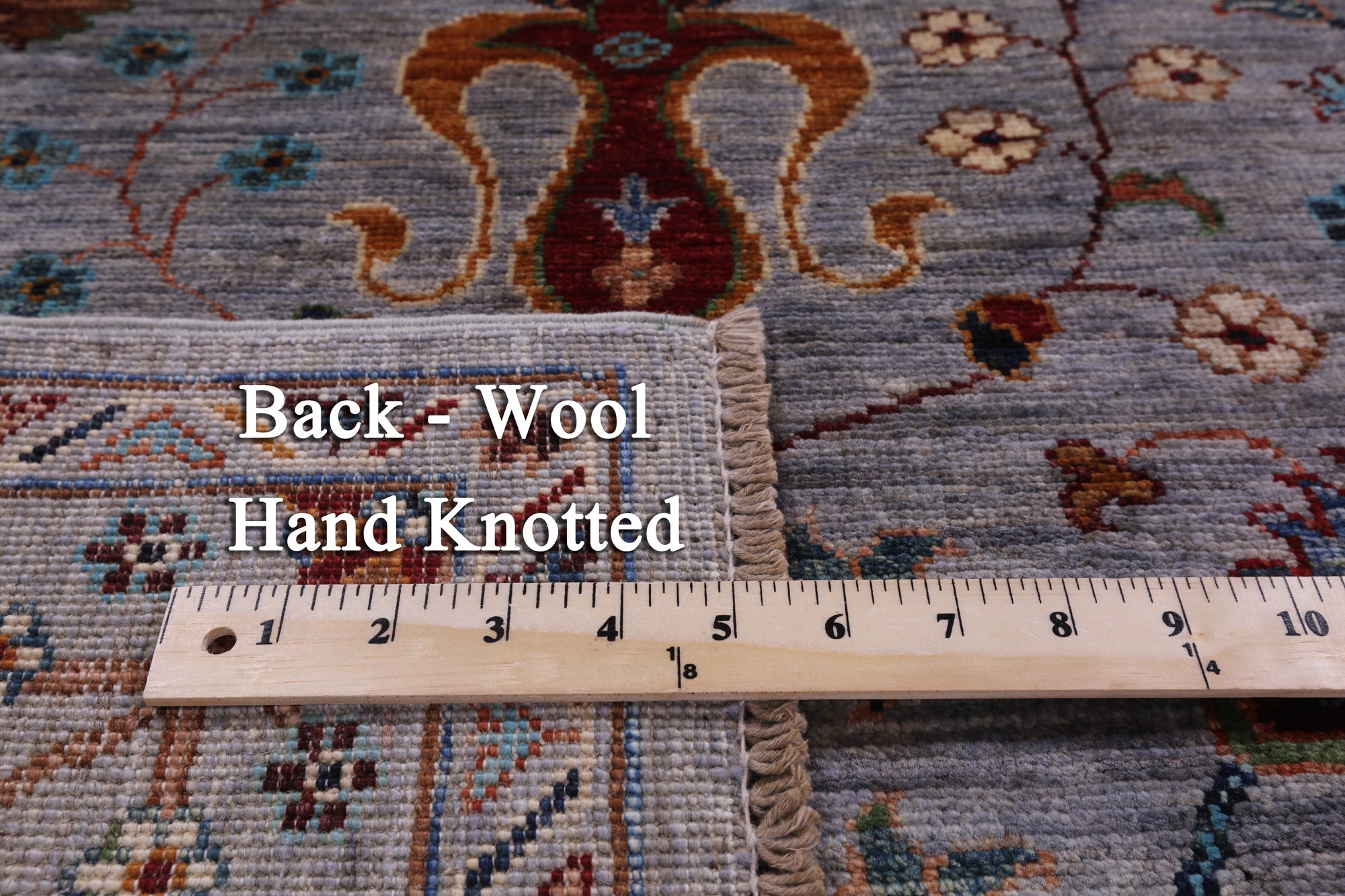 This is a genuine hand knotted cut pile rug, not tufted, hooked, or machine made. All we do is hand knotted.