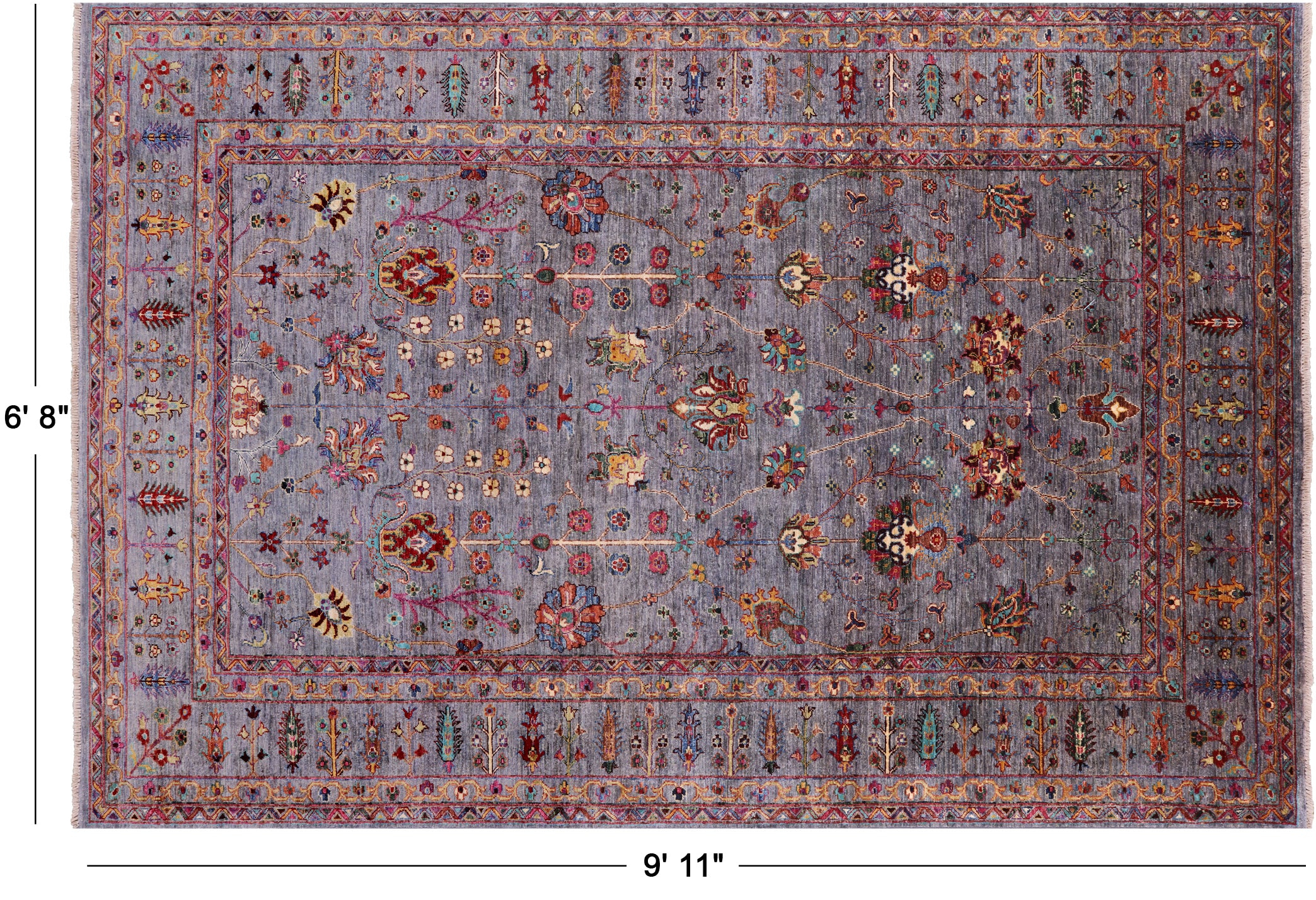 Grey Persian Tabriz Hand-Knotted Wool Rug 6' 8" X 9' 11" - Q14188