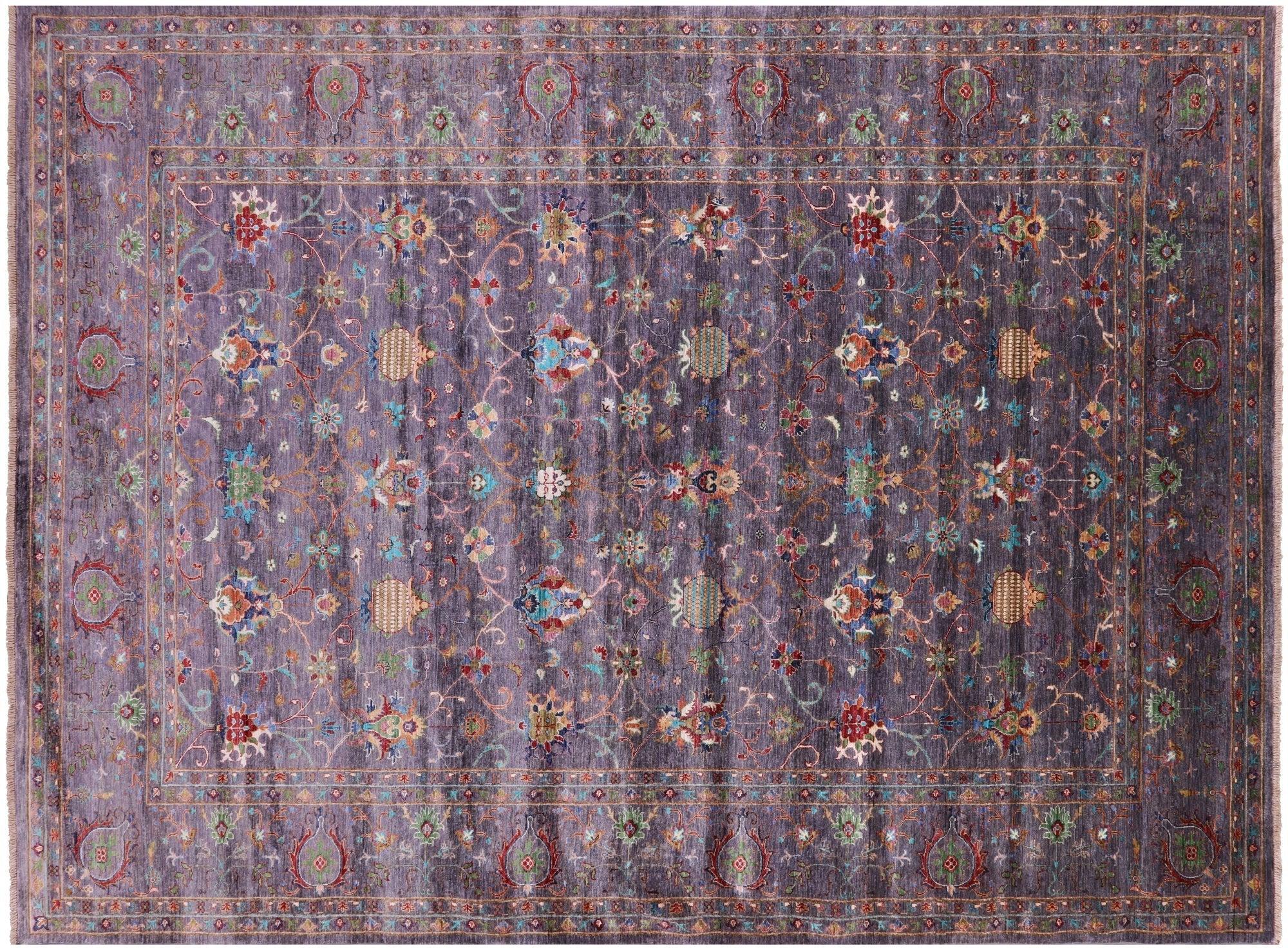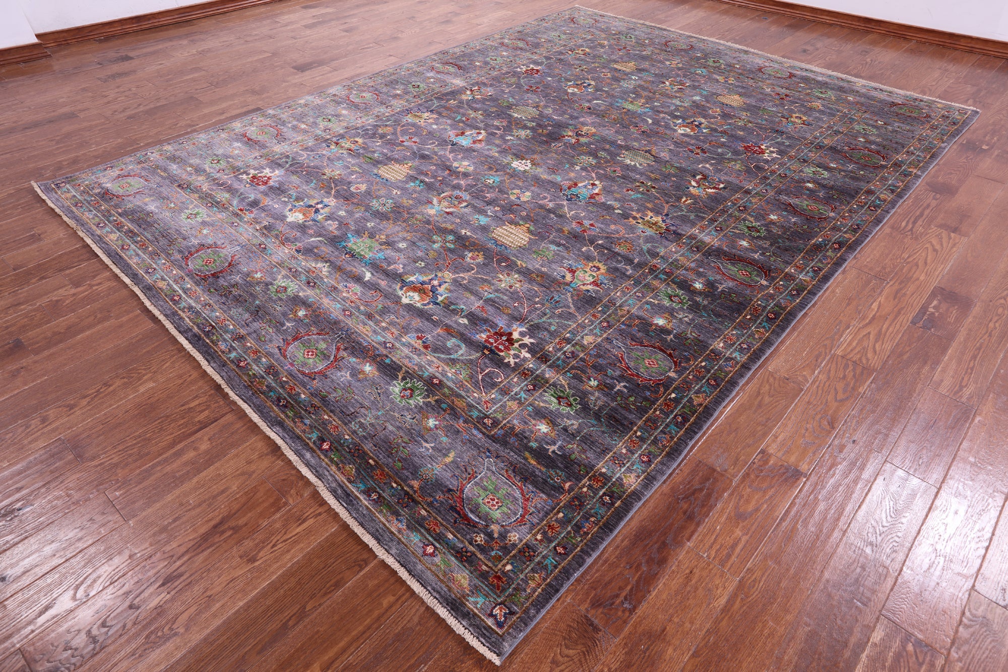 Grey Persian Tabriz Hand Knotted Wool Rug 8' 11" X 12' 2" - Q17197