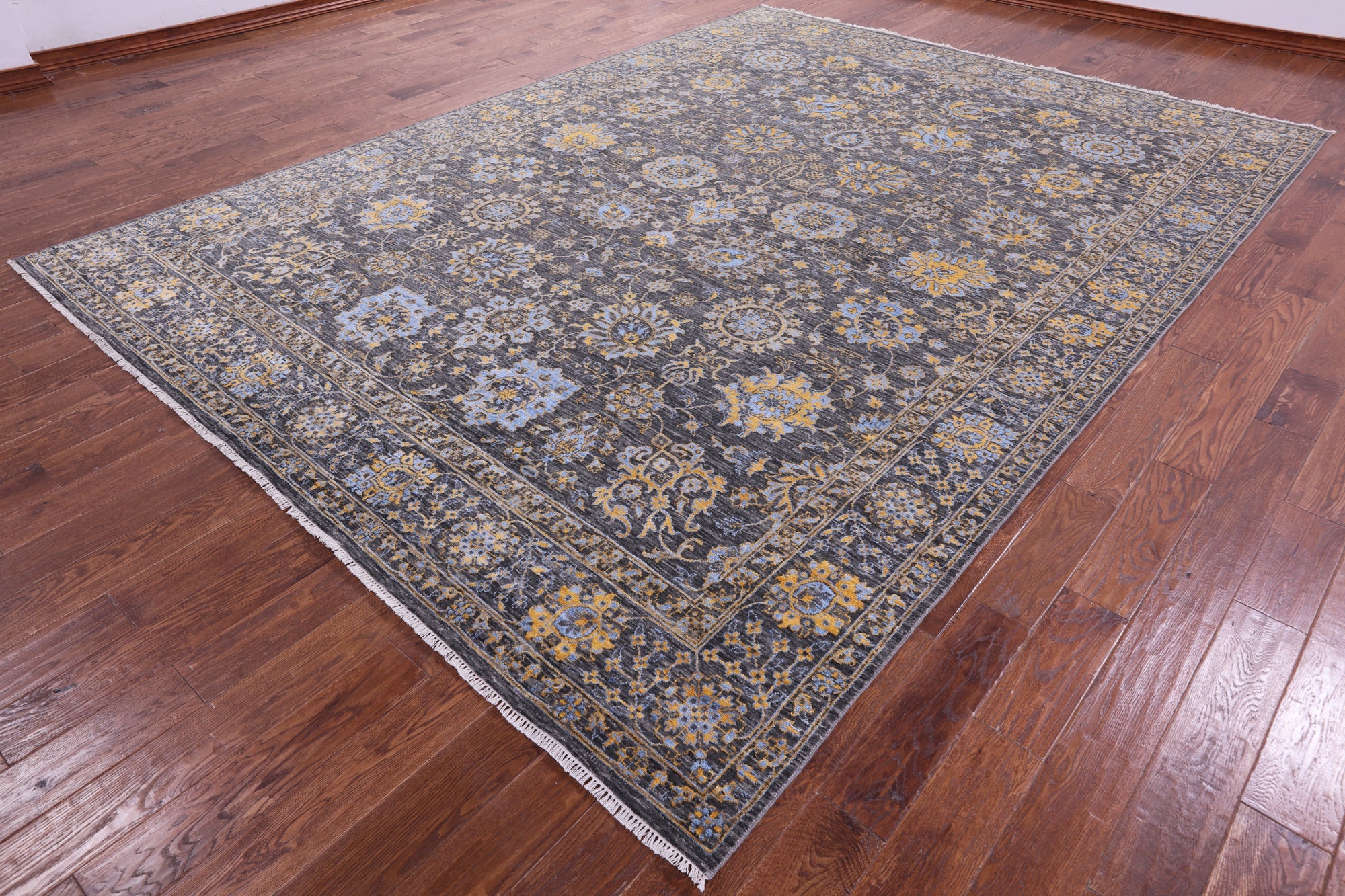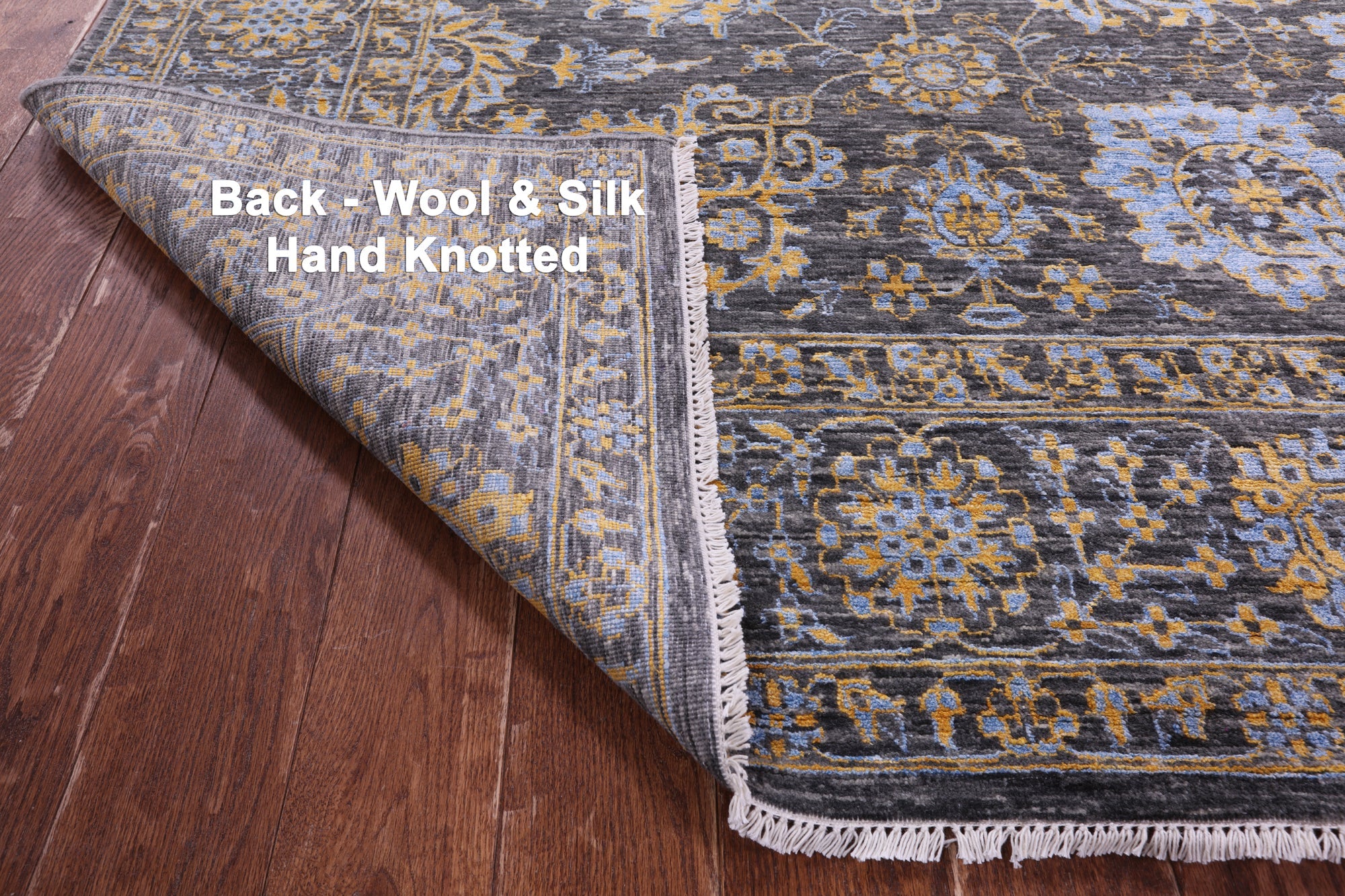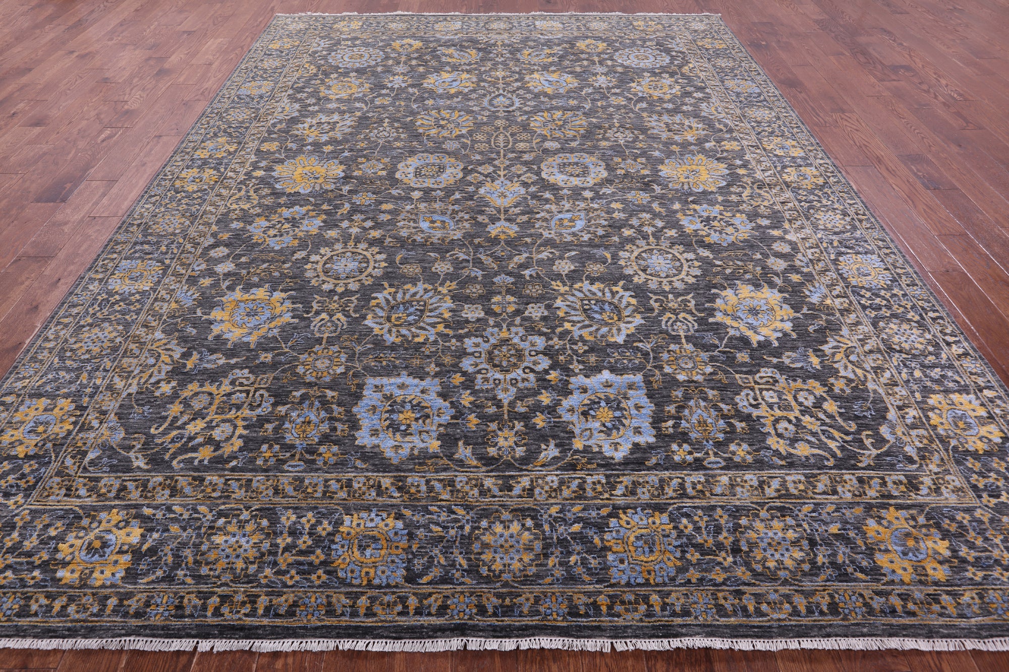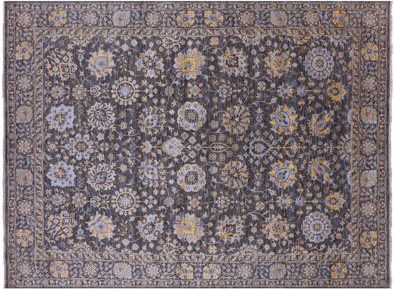 Grey Persian Tabriz Hand-Knotted Wool & Silk Rug 9' 0" X 12' 3" - Q23473