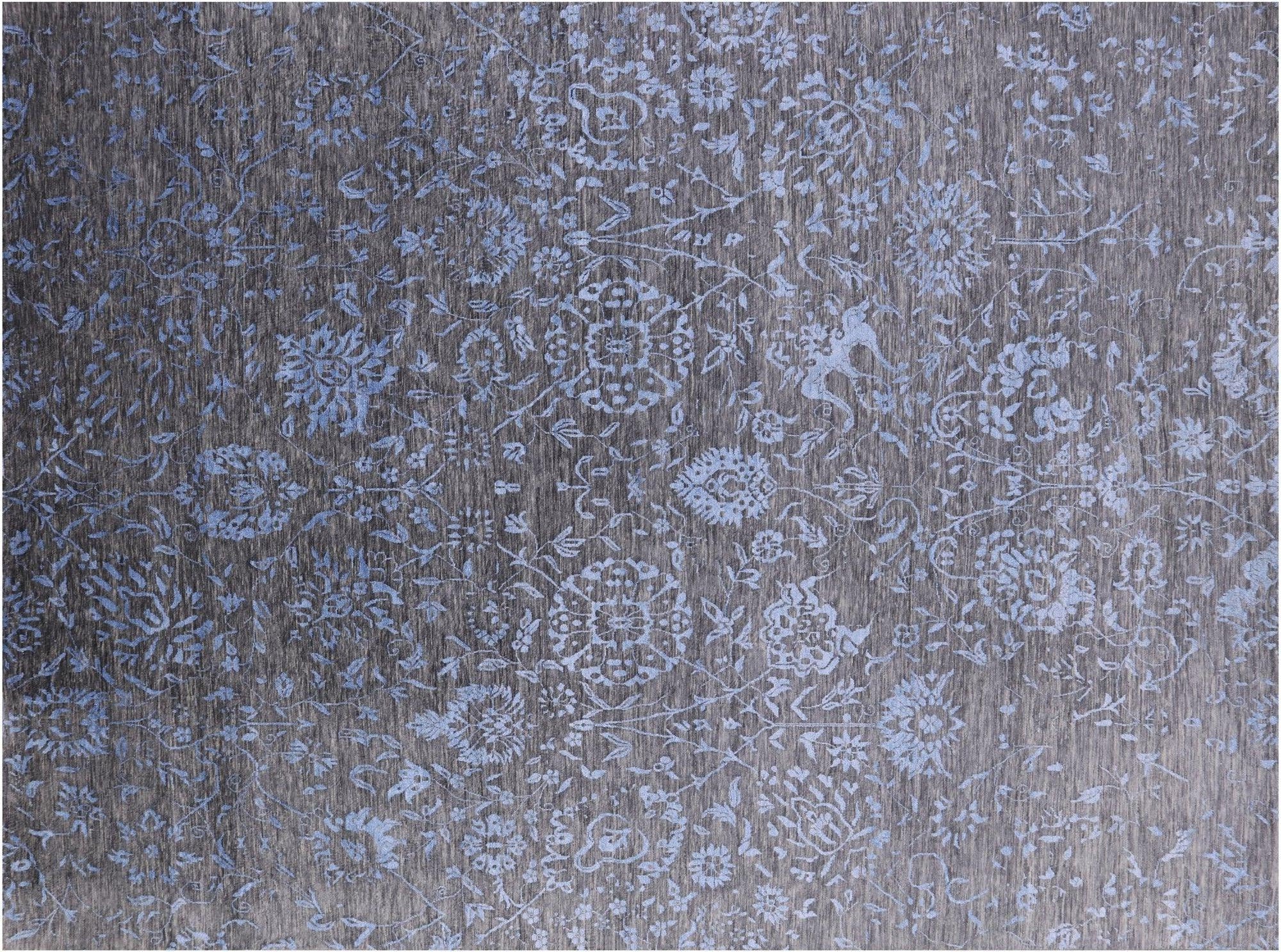 Grey 8' 11" X 12' 0" Persian Tabriz Hand Knotted Wool & Silk Rug - Q6955