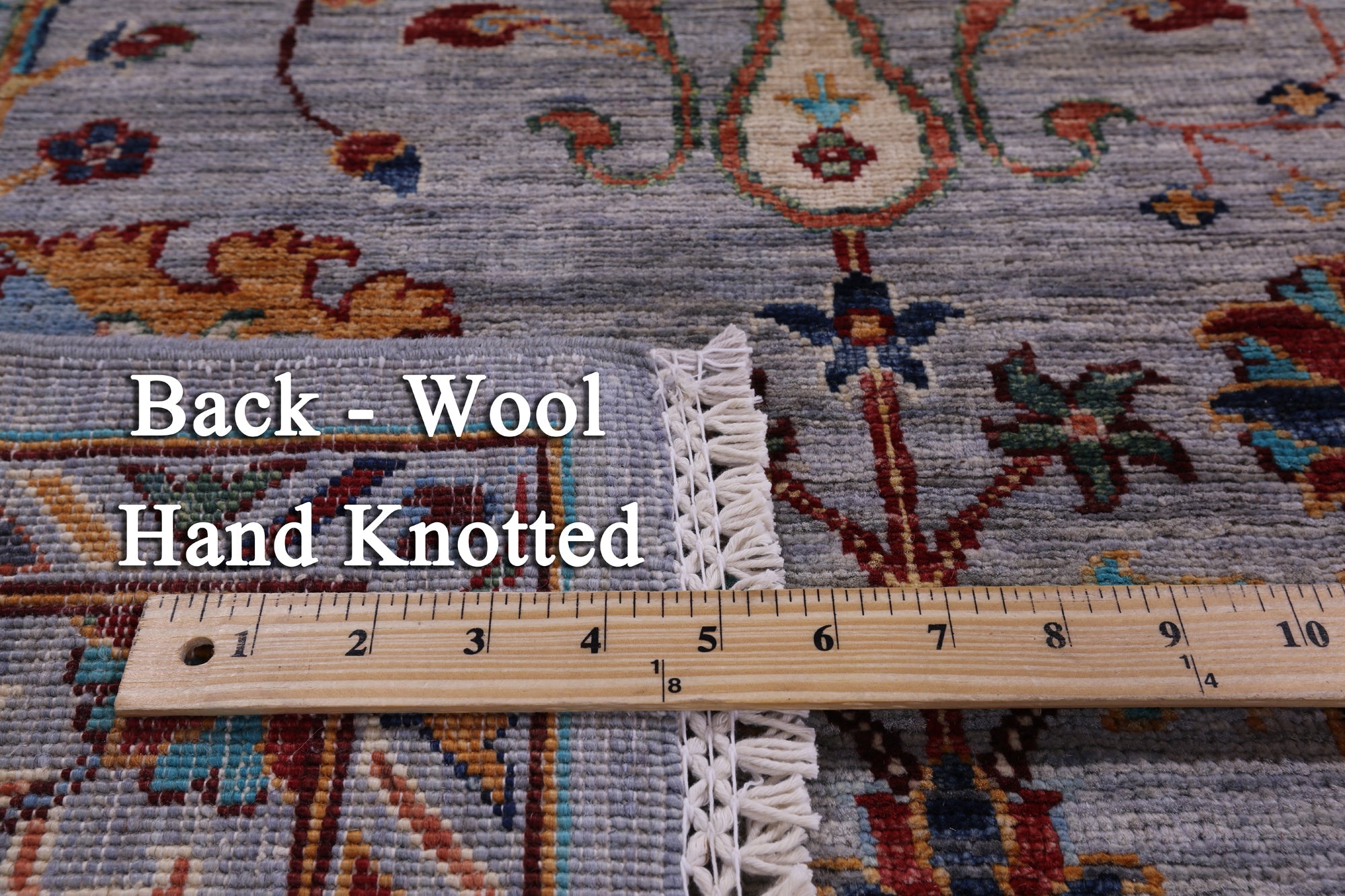 This is a genuine hand knotted cut pile rug, not tufted, hooked, or machine made. All we do is hand knotted.