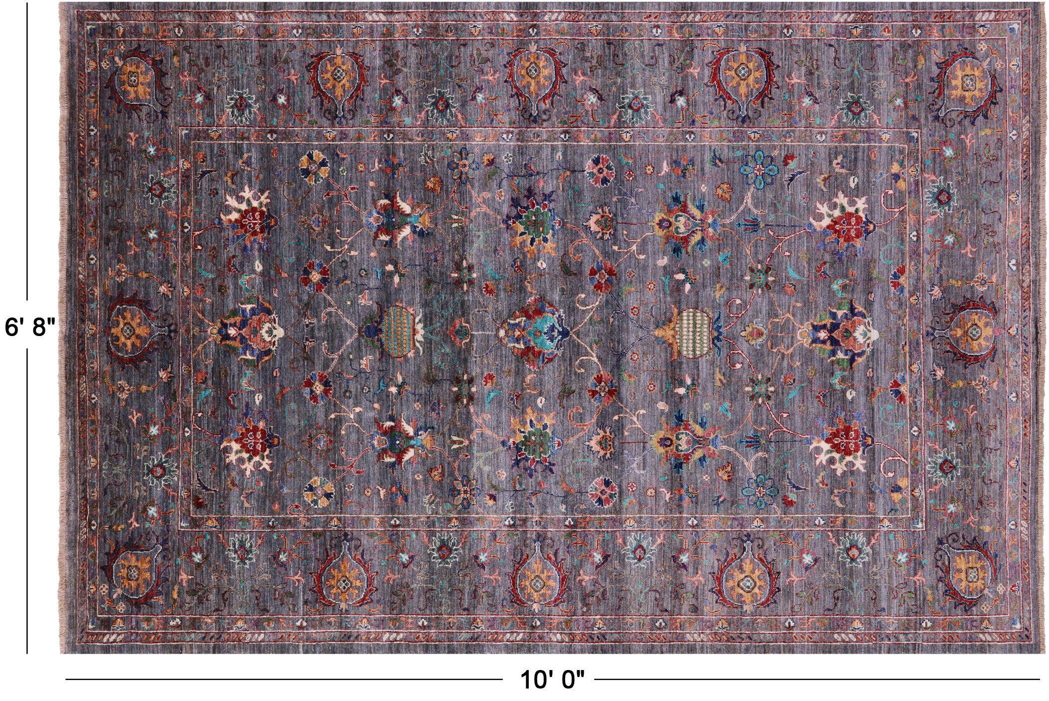 Grey Persian Tabriz Handmade Wool Rug 6' 8" X 10' 0" - Q17256