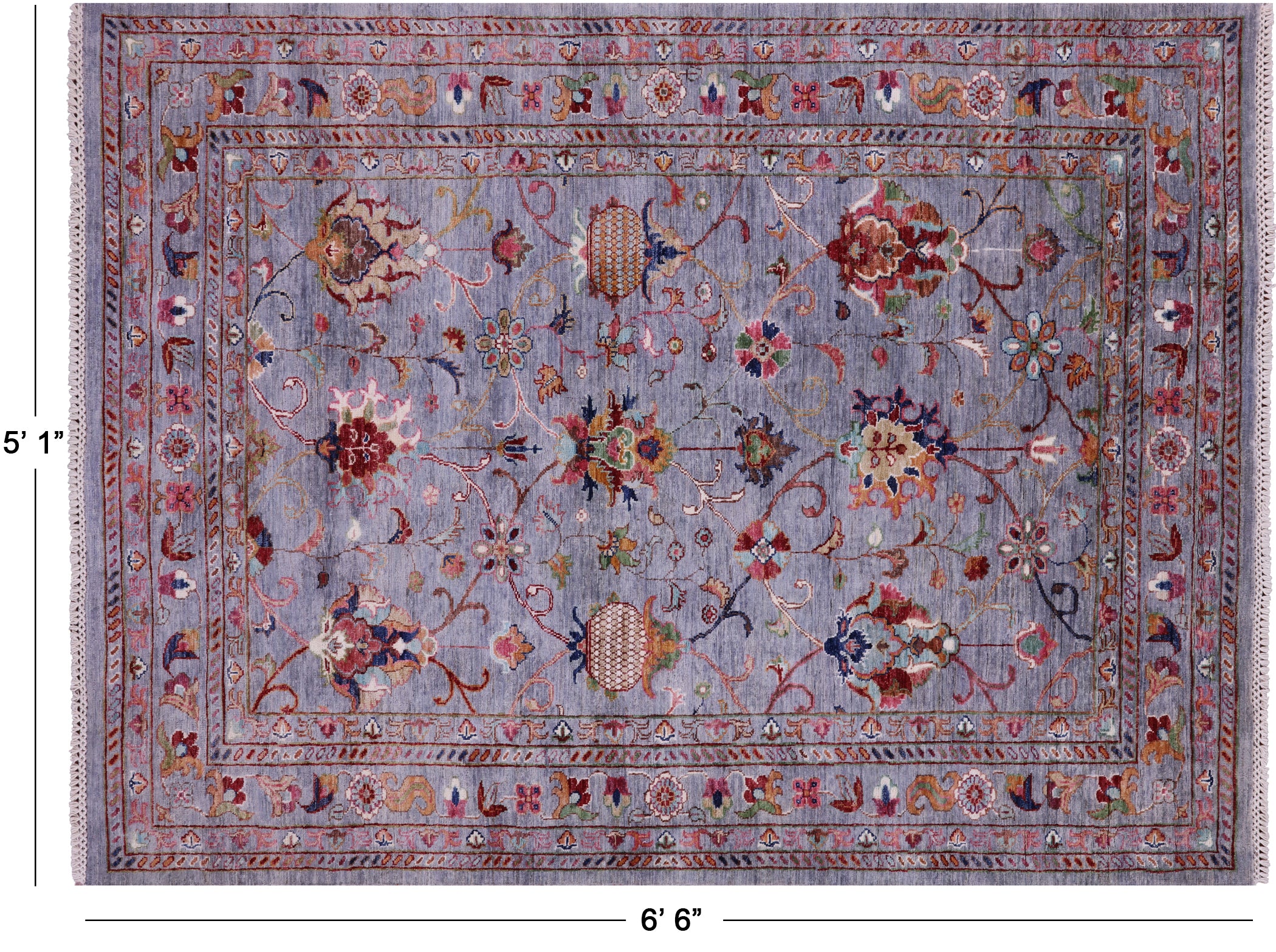 Grey Persian Tabriz Handmade Wool Rug 5' 1" X 6' 6" - Q18426
