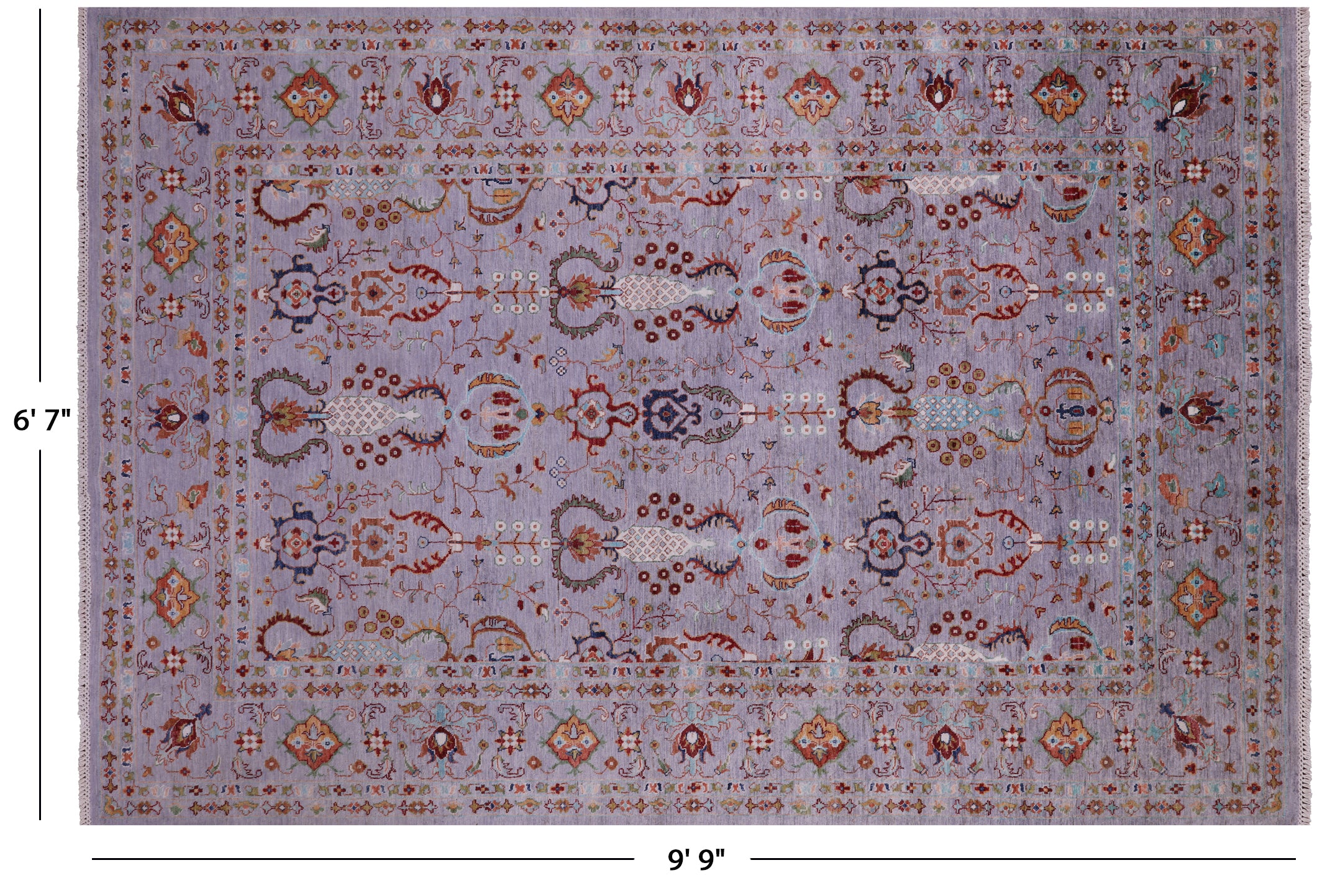 Grey 6' 7" X 9' 9" Persian Tabriz Handmade Wool Rug - Q18615