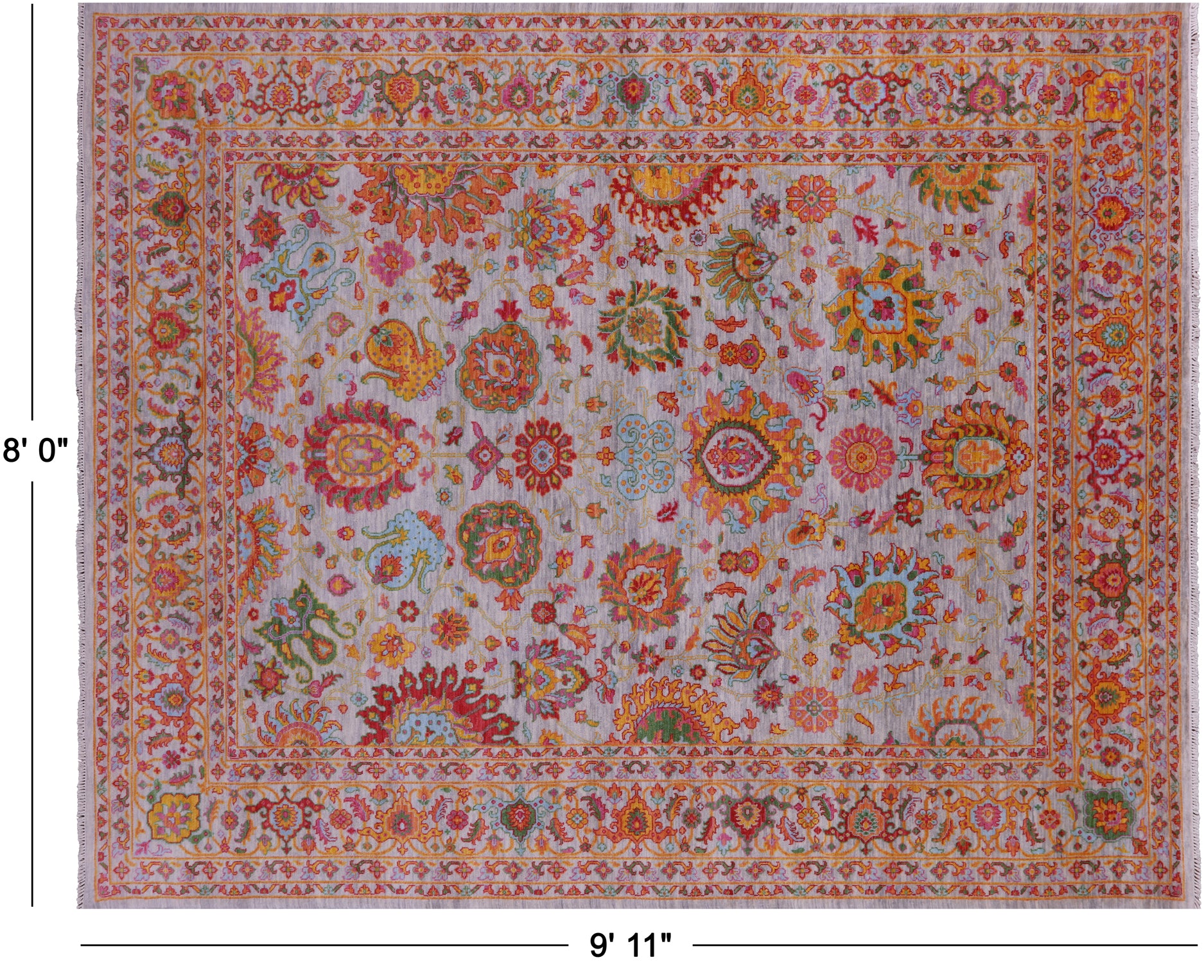 Grey 8' 0" X 9' 11" Persian Tabriz Handmade Wool Rug - Q23463