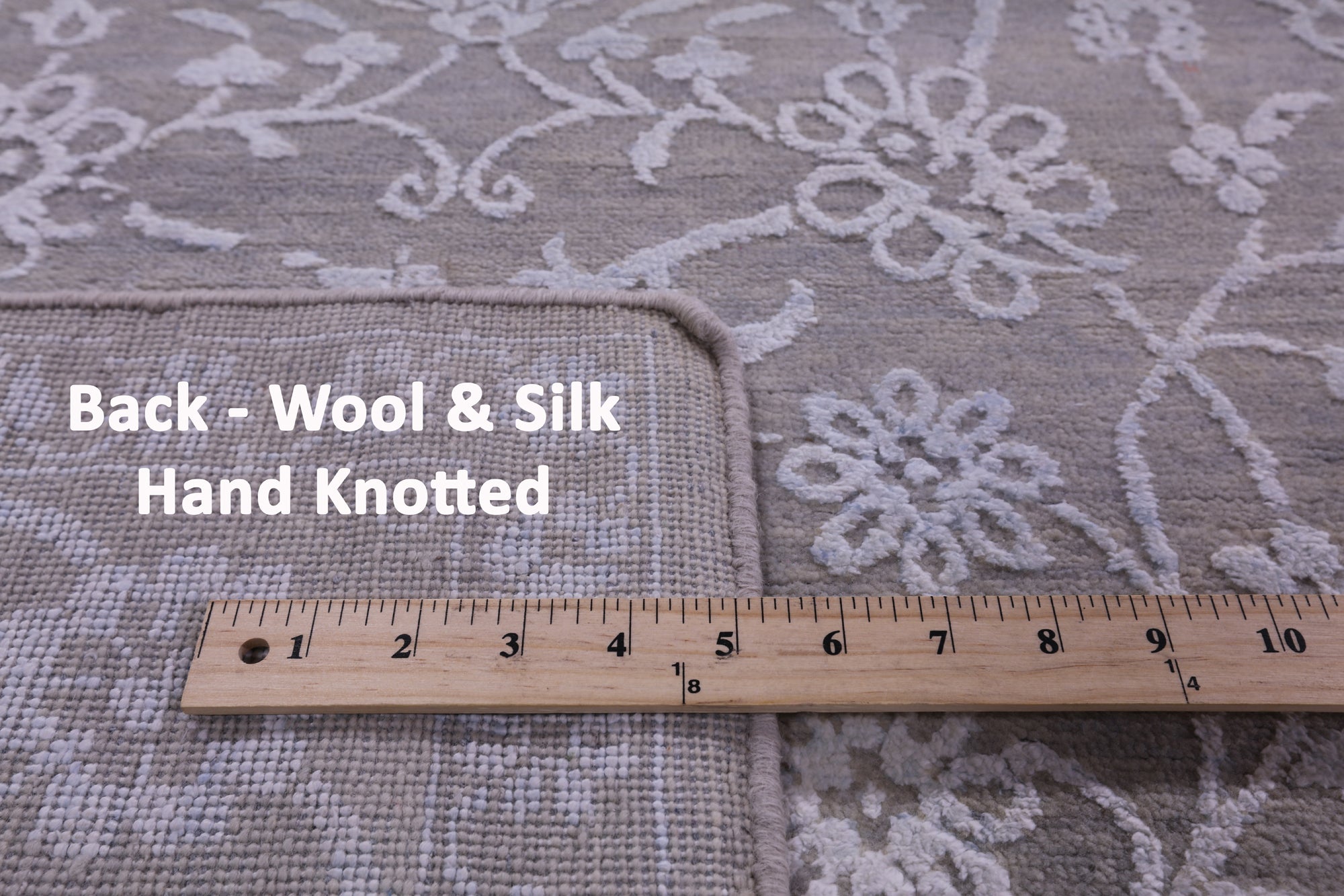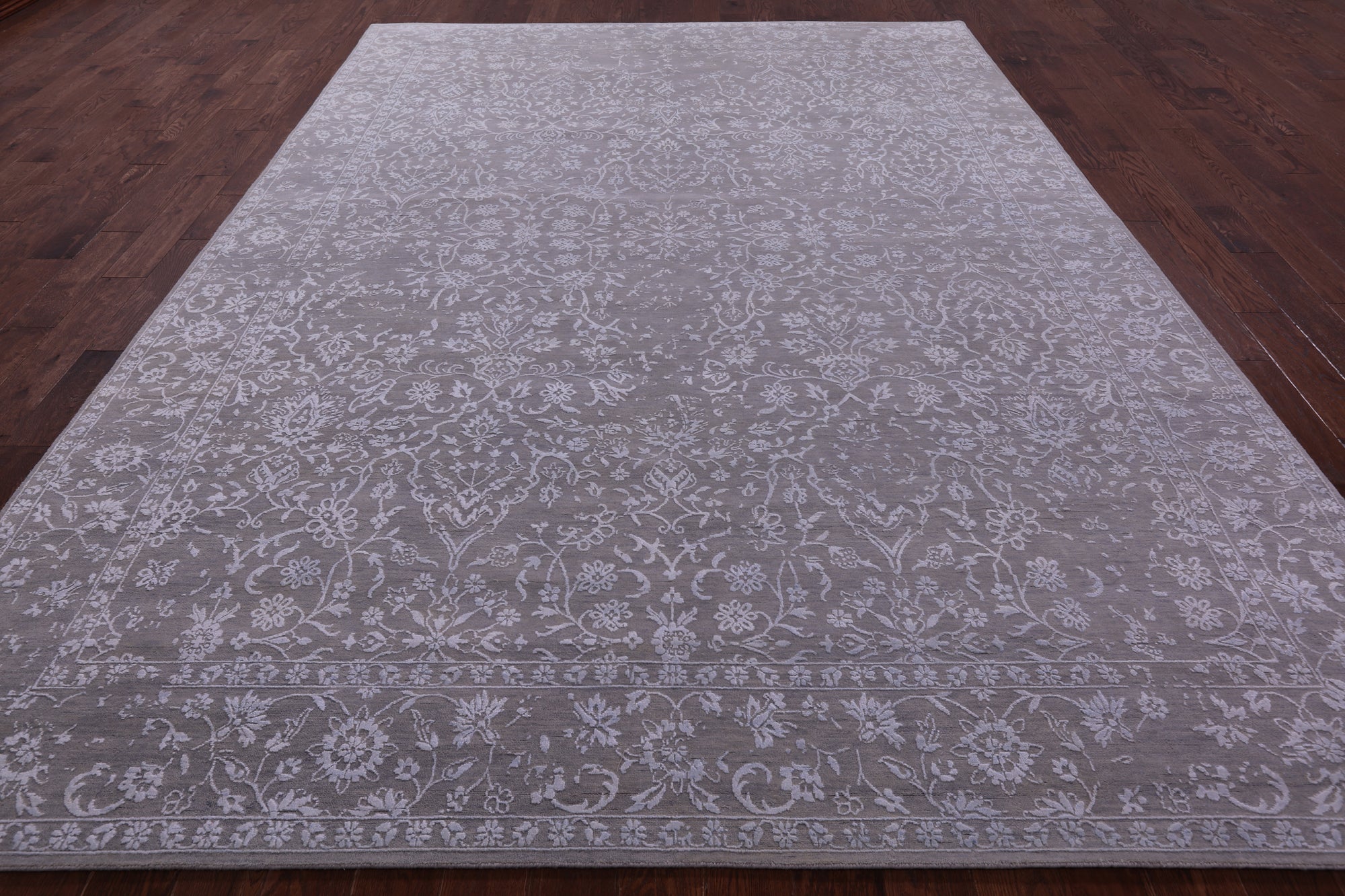 Grey Persian Tabriz Handmade Wool & Silk Rug 8' 11" X 12' 5" - Q21688