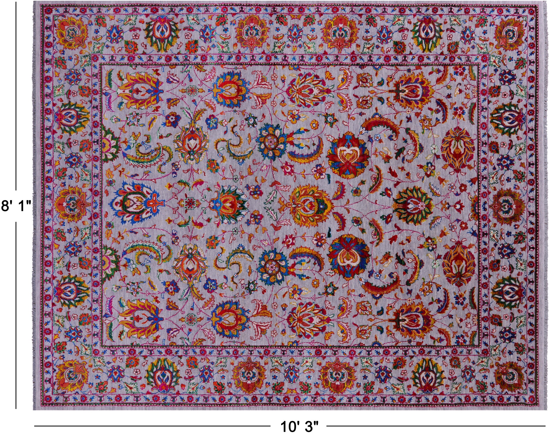 Grey Persian Tabriz Handmade Wool & Silk Rug 8' 1" X 10' 3" - Q23433